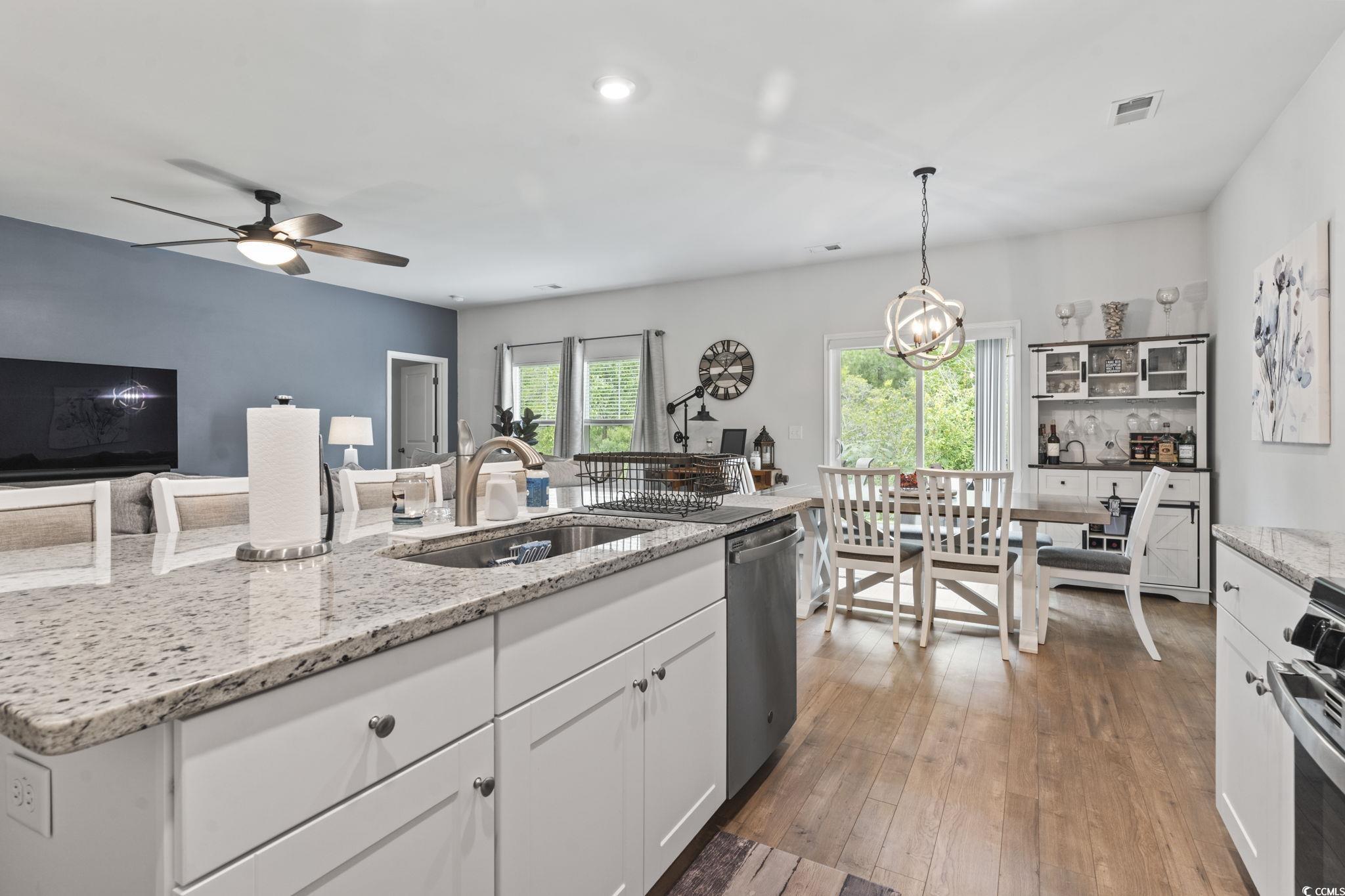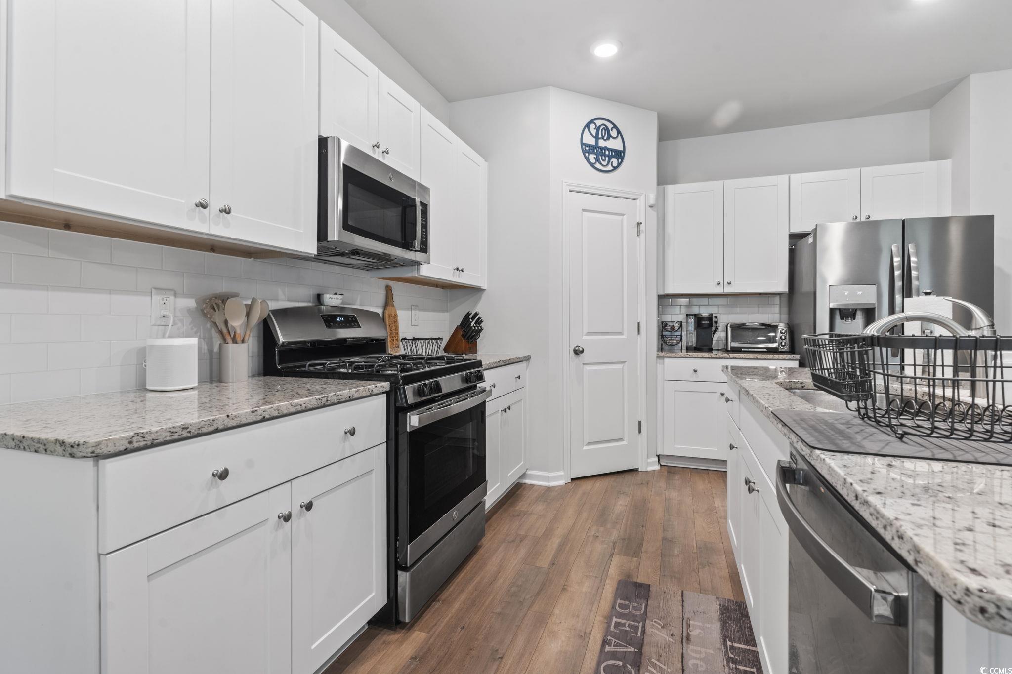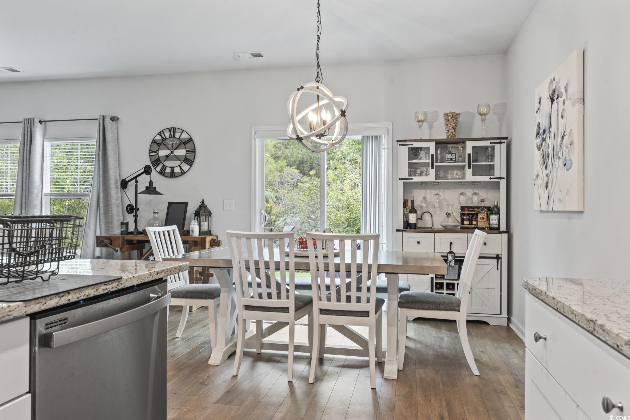 DON'T MISS OUT ON THIS IMMACULATE HOME! Golf Cart ride to the Beach Access! Immaculate 4 Bed 2 Bath Single Story Home only minutes to Surfside Beach! Built in 2021. 1885 Heated Square Feet and 2326 Under Roof. (includes 2 car garage). Beautifully decorated with modern lighting fixtures, fans, blinds, freshly painted, granite counter tops, stainless steel appliances, large corner pantry, sub tile backsplash, Gas Oven, LVP Flooring in the main living area and Primary bedroom! Enjoy the upgrades that have been done so you don't have to: Gutters installed, Irrigation system with Rain sensor, Sherwin Williams Paint, modern light fixtures and fans, blinds, closet wire shelving, river rocks and curbing-landscaping, AND a Shed ! This neighborhood is a GREAT LOCATION close to Walmart, Lowes Hardware, SO many restaurants, Hospital, and of course....THE BEACH is only a GOLF CART RIDE AWAY!! Schedule a Showing TODAY! Do NOT miss out on this one!