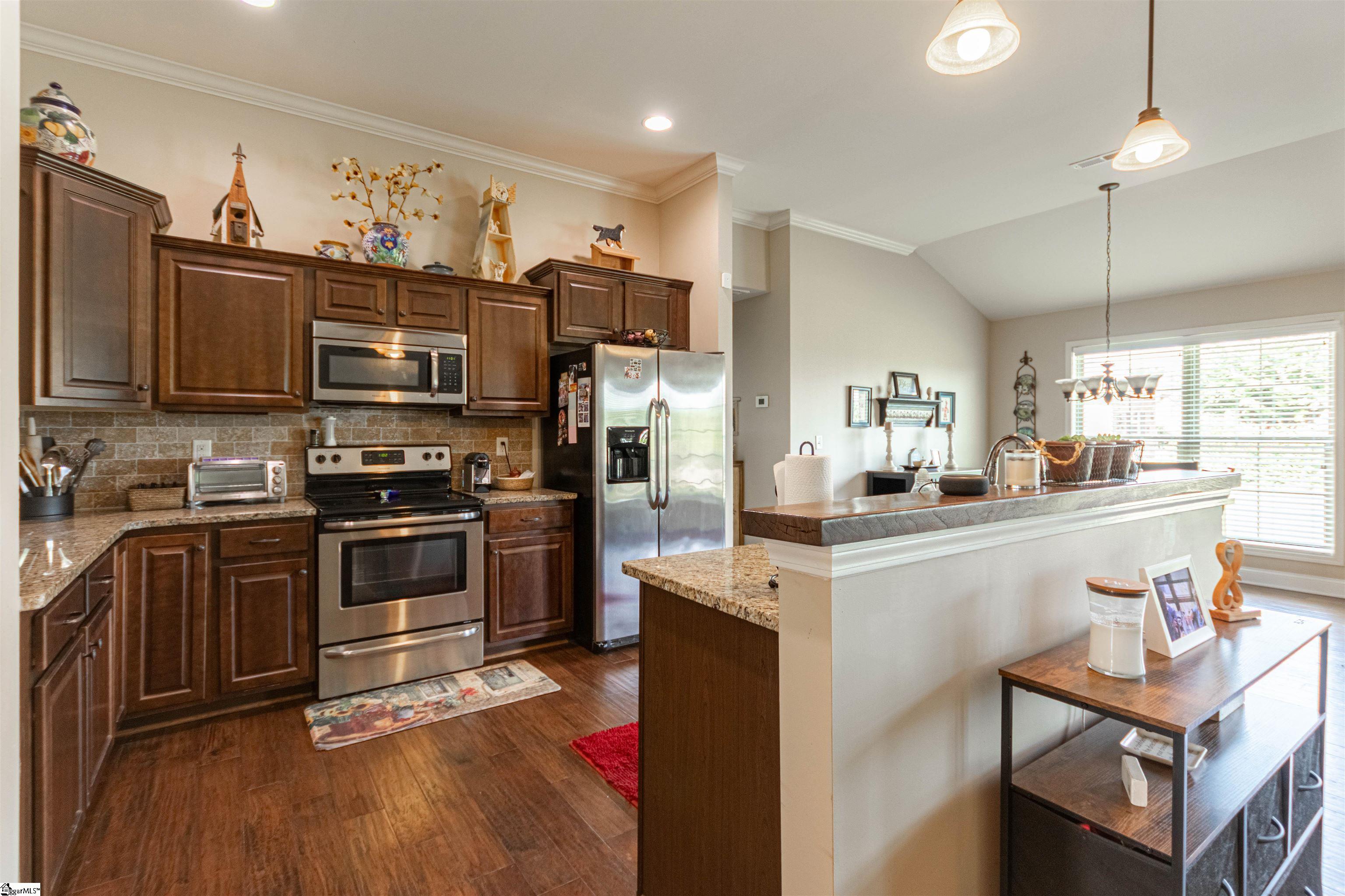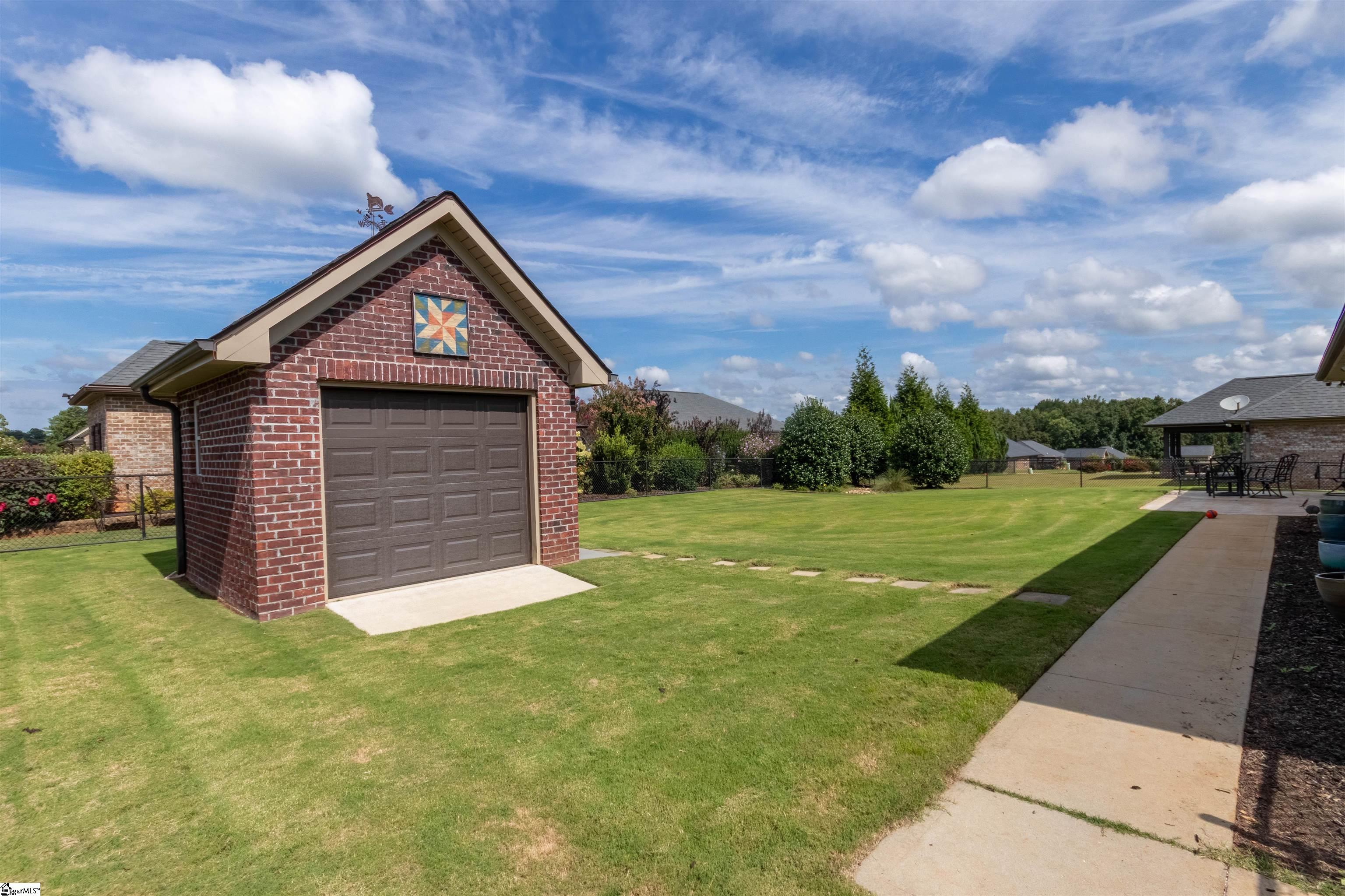 PRICED BELOW APPRAISAL PRICE!!!! Welcome to 315 E Story Bush Lane in Inman’s all-brick Bush Fork community! This 3 bedroom, 2 bath home offers timeless curb appeal and a spacious open floorplan designed for both comfort and style. Hardwood flooring flows throughout the main level living areas, leading into a beautiful kitchen with granite countertops, stainless steel appliances, a closet pantry, and a light-filled breakfast area. The split floorplan provides privacy for the primary suite, featuring a trey ceiling, multiple walk-in closets, dual sink vanity, garden tub, and separate shower. Two additional bedrooms and a full hall bath complete the main level. Upstairs, a versatile flex room with carpet and convenient attic storage with full-size entry adds even more living space. Enjoy outdoor living on the covered rear patio overlooking the fenced backyard. An attached garage and outbuilding with electricity provide extra storage and workspace. Ideally located just minutes from I-26, downtown Inman’s restaurants and shopping, and zoned for award-winning District 1 schools, this home truly has it all!