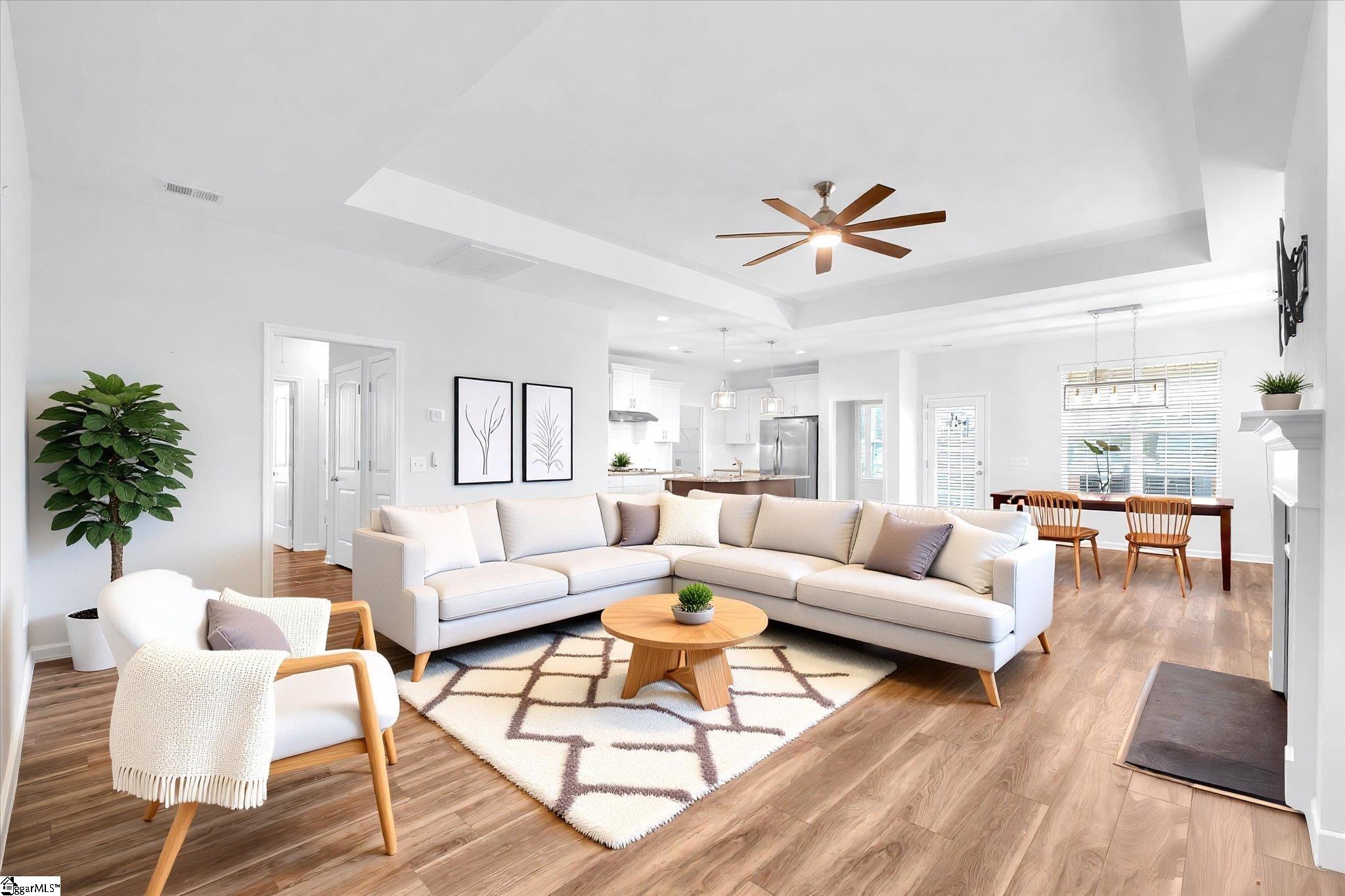 Welcome home to **315 Valley Oak Drive**, where comfort, style, and thoughtful design come together beautifully. This exceptional four-bedroom, three-bath home offers an inviting single-level layout that feels both open and intimate—perfect for everyday living and effortless entertaining. From the moment you walk in, you’ll notice the easy flow, generous space, and the feeling that this is a home meant to be lived in and loved. The main living area is the heart of the home, featuring a spacious open floor plan that invites connection. Picture quiet evenings by the gas log fireplace, casual dinners with family, or hosting friends for celebrations that spill easily from the dining area into the kitchen. Designed with both beauty and function in mind, the chef’s kitchen truly shines—anchored by a large island ideal for gathering, complemented by granite countertops, under-cabinet lighting, double wall ovens, a gas cooktop, and a walk-in pantry that keeps everything organized and within reach. Your owner’s suite is a private retreat, offering a peaceful escape at the end of the day. The spa-inspired bathroom features a soaking tub, walk-in shower, dual vanities, and an impressively large walk-in closet. A direct connection from the closet to the laundry room adds a level of everyday convenience you’ll quickly appreciate. The layout is thoughtfully designed for privacy and flexibility. Two secondary bedrooms share a stylish hall bath, while the fourth bedroom enjoys its own full bathroom—ideal for guests, extended family, or a dedicated home office. Step outside to discover a backyard that’s ready for memories. Fully fenced and generously sized, it offers plenty of room to relax, play, and entertain. Enjoy evenings on the covered patio, weekend cookouts, or quiet mornings in your own outdoor sanctuary. The level area in the backyard has been prepped for a fire pit (virtually staged to show the potential), creating the perfect spot for gathering under the stars. A full-yard irrigation system keeps the landscaping lush with ease. Additional features elevate the experience even further, including a side-entry garage for enhanced curb appeal and added sound insulation in key areas of the home—thoughtfully placed to increase privacy and comfort throughout. With its high-end finishes, smart single-level design, and outdoor space that truly completes the package, **315 Valley Oak Drive** offers the perfect balance of luxury and livability. Whether you’re growing, downsizing, or simply ready for a home that feels just right, this one is special—and it’s ready to welcome you.