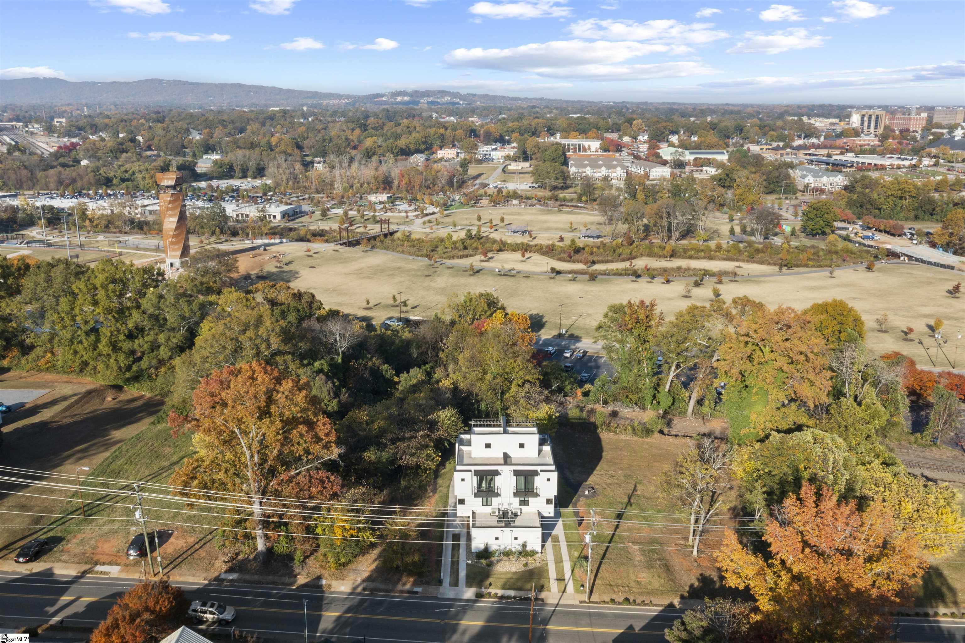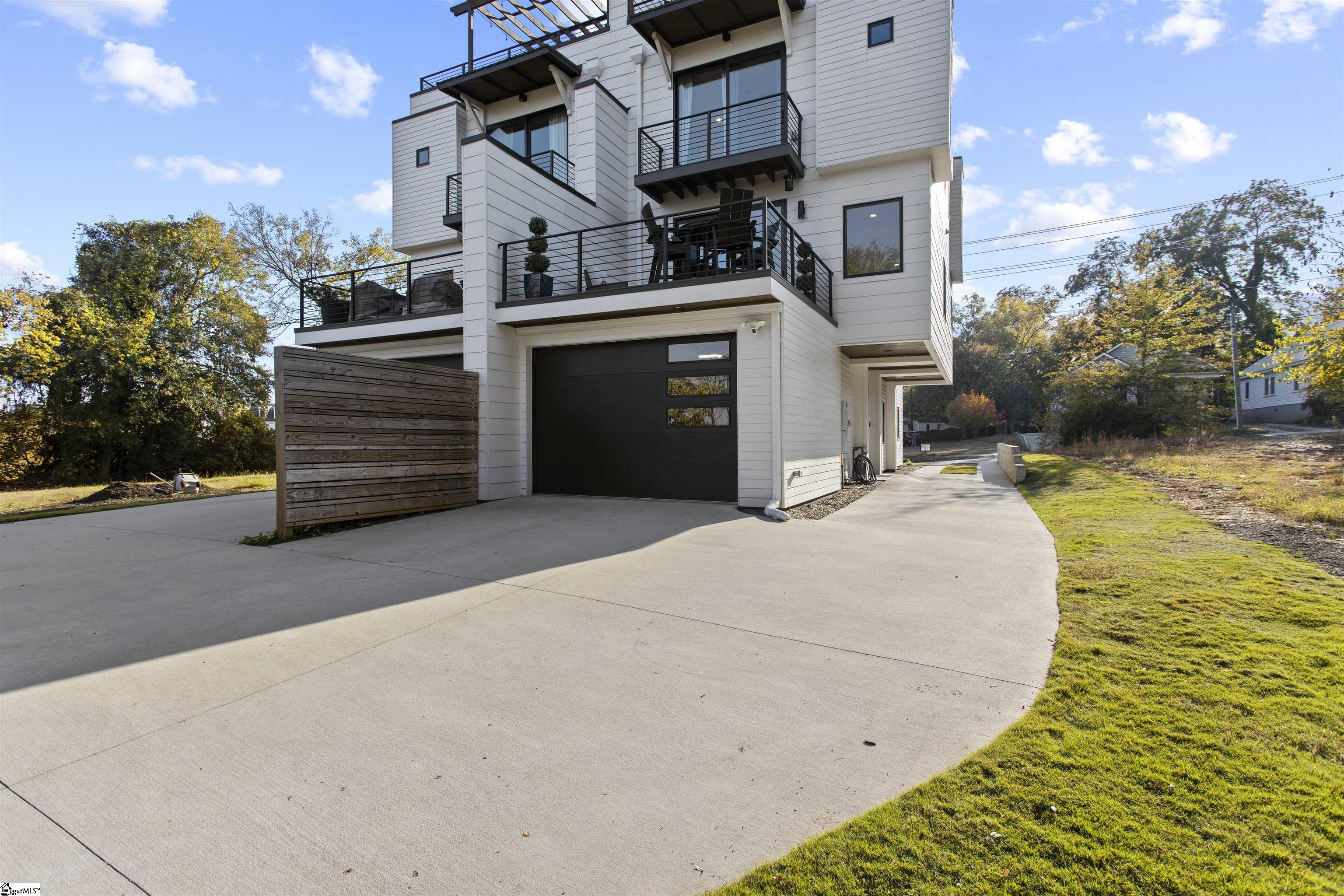 Modern living in the heart of Greenville. This striking newer-construction townhome offers clean lines, quality finishes, and a smart multi-level layout designed for everyday comfort and easy entertaining. The private ground-level entry leads to a primary suite complete with a full bath. The main floor is the living area, featuring a bright open plan, smooth ceilings, wide-plank wood floors, and gorgeous fireplace. The kitchen stands out with quartz countertops, gas range, modern cabinetry, walk-in pantry, and a center island that makes meal prep a breeze. A balcony off the living room adds ample outdoor living space. Contemporary finishes throughout add a touch of luxury. Two guest bedrooms are located on the third level, each with their own private bath, walk-in closet, and balcony. Laundry is also on this floor for convenience. Relaxing or entertaining? The rooftop terrace provides more outdoor living space with room to relax and enjoy stunning mountain views. The attached garage, large back patio, and low-maintenance exterior keep life simple. Walk or bike to Unity Park, The Commons, the Swamp Rabbit Trail, Fluor Field, and everything Downtown Greenville has to offer. A unique property for those who want downtown living without giving up privacy or style. NO HOA