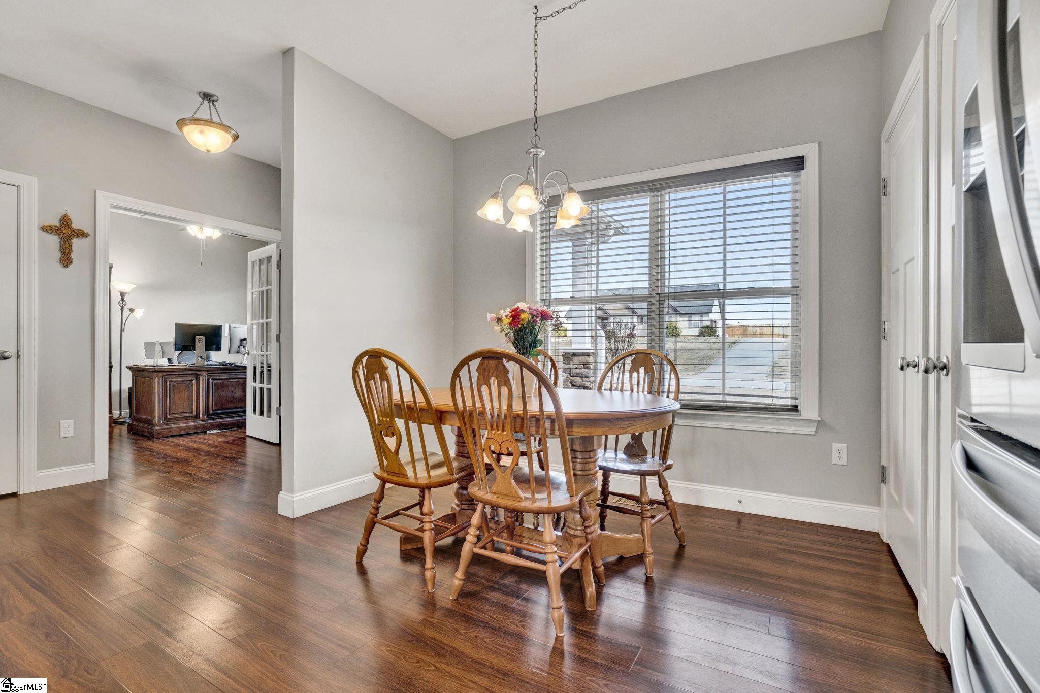 Welcome to 316 Terra Plains Drive, where space, comfort, and exceptional outdoor living come together on a beautifully maintained ¾-acre lot. Ideally located just minutes from Five Forks, Woodruff Road, Interstate 85, and BMW Manufacturing, this home offers both peaceful surroundings and everyday convenience. Inside, you’ll find over 2,000 square feet of thoughtfully designed living space with a bright, open floor plan that easily adapts to your lifestyle. The spacious kitchen is the heart of the home, featuring abundant counter space, extensive cabinetry, double pantries, and a sunny breakfast area, while the formal dining room provides the perfect setting for gatherings both large and small. The generous great room invites you to relax, entertain, and create lasting memories. The main-level primary suite serves as a private retreat, complete with double sinks, a custom tile shower, soaking tub, and a large walk-in closet. A second main-level bedroom offers flexibility as a guest room, home office, or hobby space. Upstairs, two additional bedrooms share a full hall bath, creating comfortable accommodations for family or visitors. Storage is abundant, with two floored walk-in attic spaces offering incredible room for organization and seasonal items. Step outside and discover your personal backyard oasis. Enjoy warm summer days in the 36x16 in-ground saltwater pool, unwind on the screened porch, or entertain in the large fenced backyard designed for relaxation and fun. Garden enthusiasts will appreciate the raised garden beds, and the 16x10 storage shed provides convenient space for tools and equipment. This exceptional property offers the perfect blend of space, functionality, and lifestyle amenities—all in a prime location. Come experience everything this home has to offer and make it yours. Preferred lender offering closing cost assistance—making your move even more attainable!