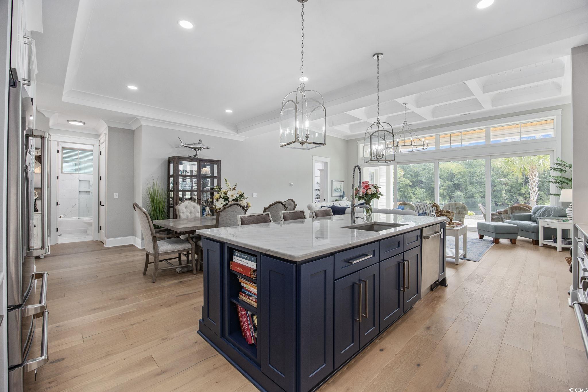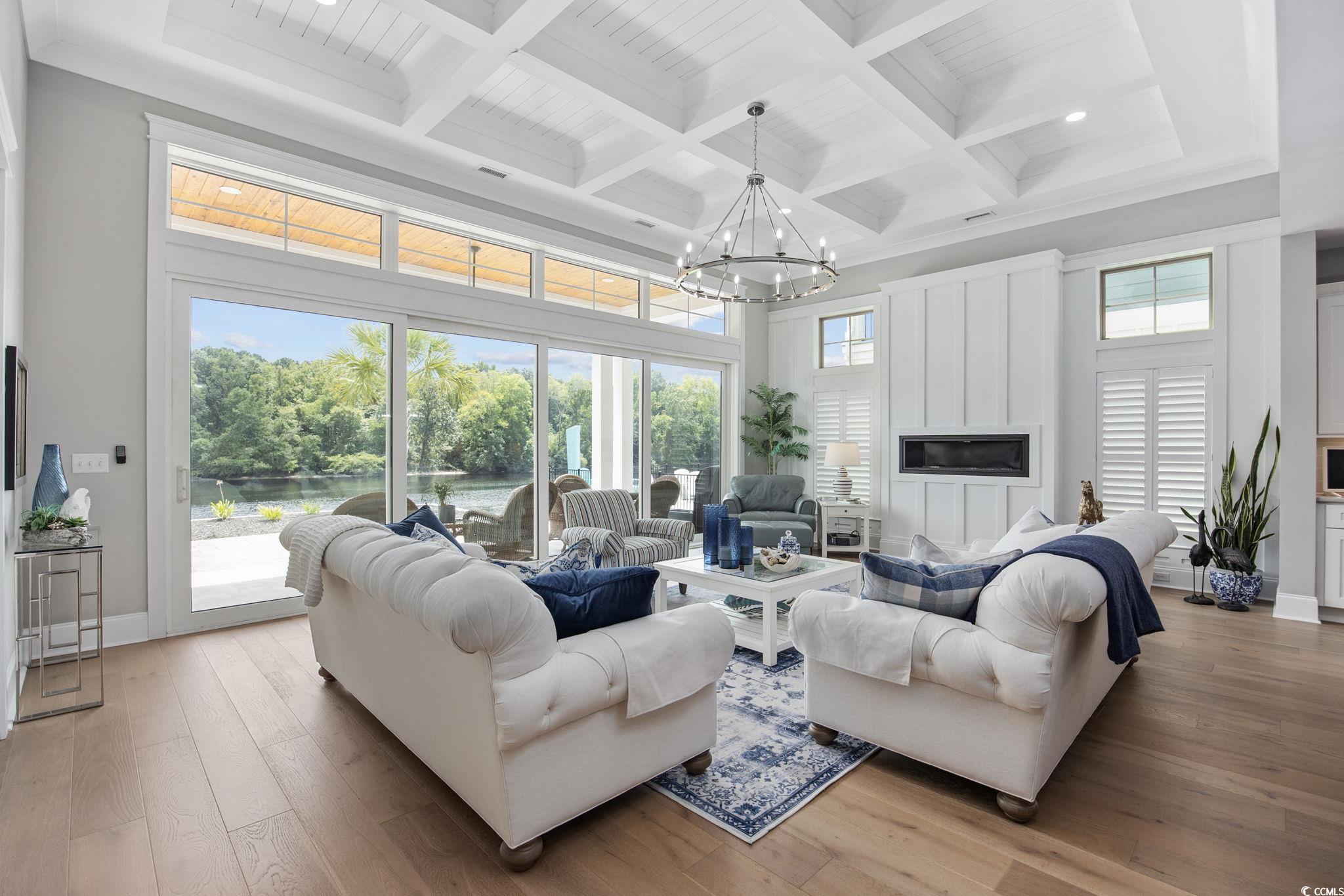 Welcome to 317 Harbour View Drive—a beautifully crafted custom home set directly on the Intracoastal Waterway, complete with a private boat dock and lift in the highly desirable Boardwalk on the Waterway community. From the moment you step through the double doors, you’re greeted with breathtaking water views that set the tone for the home’s elegance and comfort. To the left of the foyer, a custom library awaits, complete with built-ins, a rolling ladder, and abundant natural light. The spacious living room features a 20’x8’ collapsible sliding glass door that opens to sweeping waterway views, as well as a natural gas fireplace surrounded by custom cabinetry. The chef’s kitchen is equally impressive, showcasing a 36" commercial-grade gas range, quartz countertops, tile backsplash, under-cabinet lighting, high-quality cabinetry, and a breakfast bar—perfect for both entertaining and everyday living. The owners' suite is located on the first floor, offering serene water views and direct access to the back patio. The spa-like bathroom includes a walk-in shower with multiple shower heads and niches, a separate soaking tub, dual vanities, and double doors leading to a spacious walk-in closet. A full guest bath and laundry room with custom cabinetry and sink are also conveniently located on the main level. Upstairs, you’ll find a large bonus room ideal for a billiards table or media space, two bedrooms with a shared full bath, plus an additional private suite with its own full bath, tile shower, large closet, and cozy coffee nook—perfect for guests seeking their own retreat. This home offers abundant storage, including three walk-in attics with full standing room. The two-car garage features an epoxy floor, tankless hot water heater, and convenient access points to both the exterior and the home’s interior. Hardwood and tile flooring run throughout, complemented by custom-built cabinetry with granite and quartz surfaces in the kitchen and bathrooms. Outside, enjoy paver patios, uplighting on the palms, and full irrigation surrounding the property. As part of the Boardwalk community, residents enjoy a scenic boardwalk, gazebo, private boat ramp, and day dock—all just minutes from the beach, golf, dining, shopping, the airport and entertainment. 317 Harbour View Drive offers the perfect blend of custom luxury and coastal lifestyle. Schedule your private showing today.