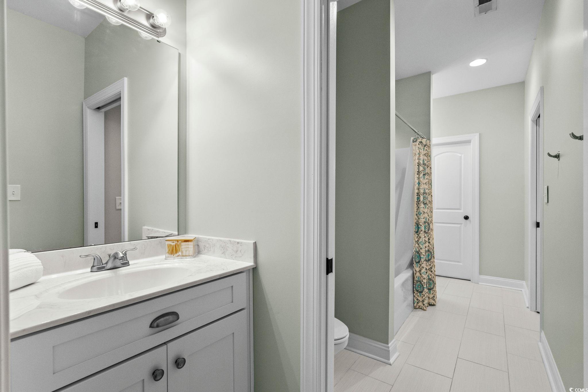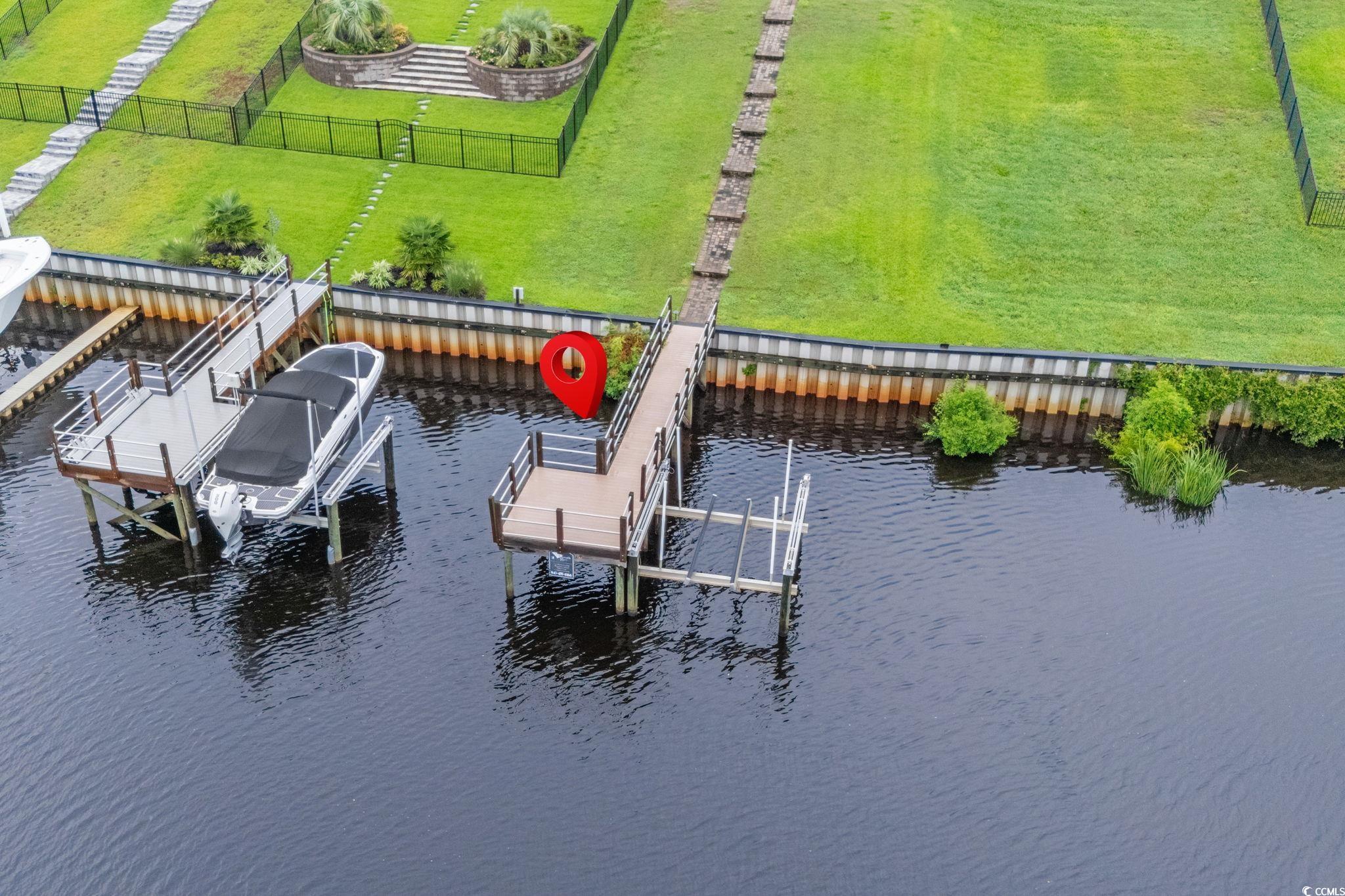 Intracoastal Waterway Living at Its Finest. Located in the sought-after gated community of The Battery on the Waterway, this custom 5-bedroom, 4-bath home delivers big on space, design, and waterfront lifestyle. With three full levels and an elevator, there’s plenty of room to spread out, entertain, and take in the views. Every level has a covered rear porch overlooking the Waterway, perfect for morning coffee, sunset cocktails, or just watching the boats drift by. Step inside to find real hardwood floors, crown molding, and natural light flooding the main living spaces. The second level serves as the main floor and features an open concept kitchen, dining, and living area. The kitchen is well-equipped with stainless steel appliances including a gas range, walk-in pantry, granite counters, custom cabinetry, and a butcher block island with prep sink. Two sets of French doors off the living room open up to the large rear porch. This level also offers a guest bedroom (currently set up as an office) and a full bathroom. Upstairs, you’ll find two spacious guest rooms with a shared jack-and-jill bath, along with the impressive primary suite. The owner’s bedroom includes a private porch, a tray ceiling, and a huge walk-in closet with custom built-ins. The ensuite bath has a whirlpool tub, dual vanities with granite, a water closet, and a tiled walk-in shower with dual shower heads. On the ground level, there’s another bedroom with a full bath, a large rec/media room with a wet bar and fridge, and a two-car garage. Step out back and the real show begins. The fenced backyard is built for entertaining with a custom pool and integrated hot tub, a full outdoor kitchen with built-in grill, fridge, sink, granite counters, and bar seating for six or more. There’s also recessed lighting, wiring for dual TVs, and an upper-level sundeck. A paver path leads to your private dock and boat lift, giving you direct access to the Intracoastal. The Battery on the Waterway also offers residents a private boat ramp, community dock, basketball court, and gazebo. Tucked in Carolina Forest with quick access to International Drive, Hwy 31, and just minutes from shopping, dining, and the beach, this is the ultimate coastal retreat.