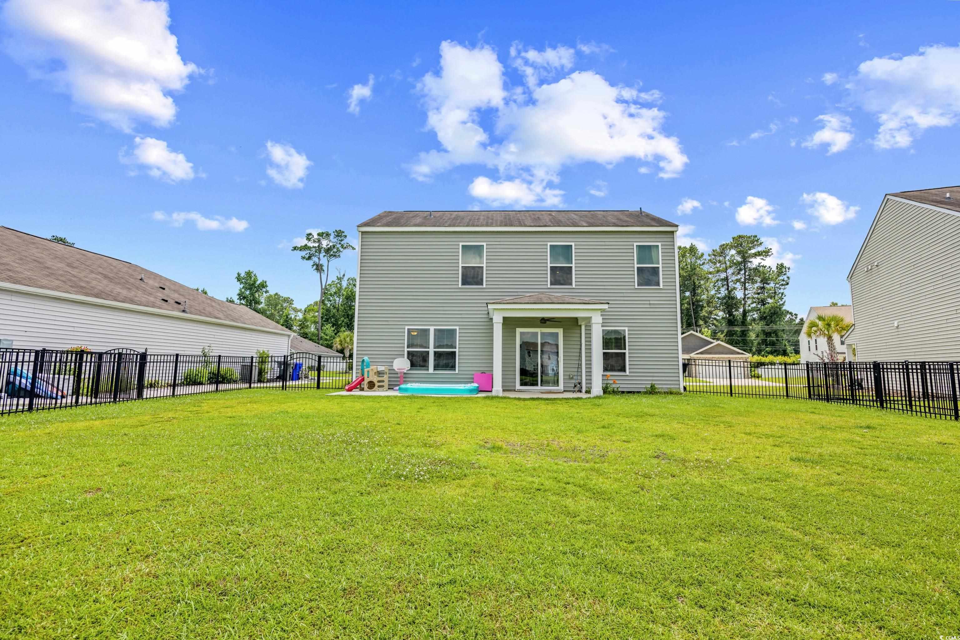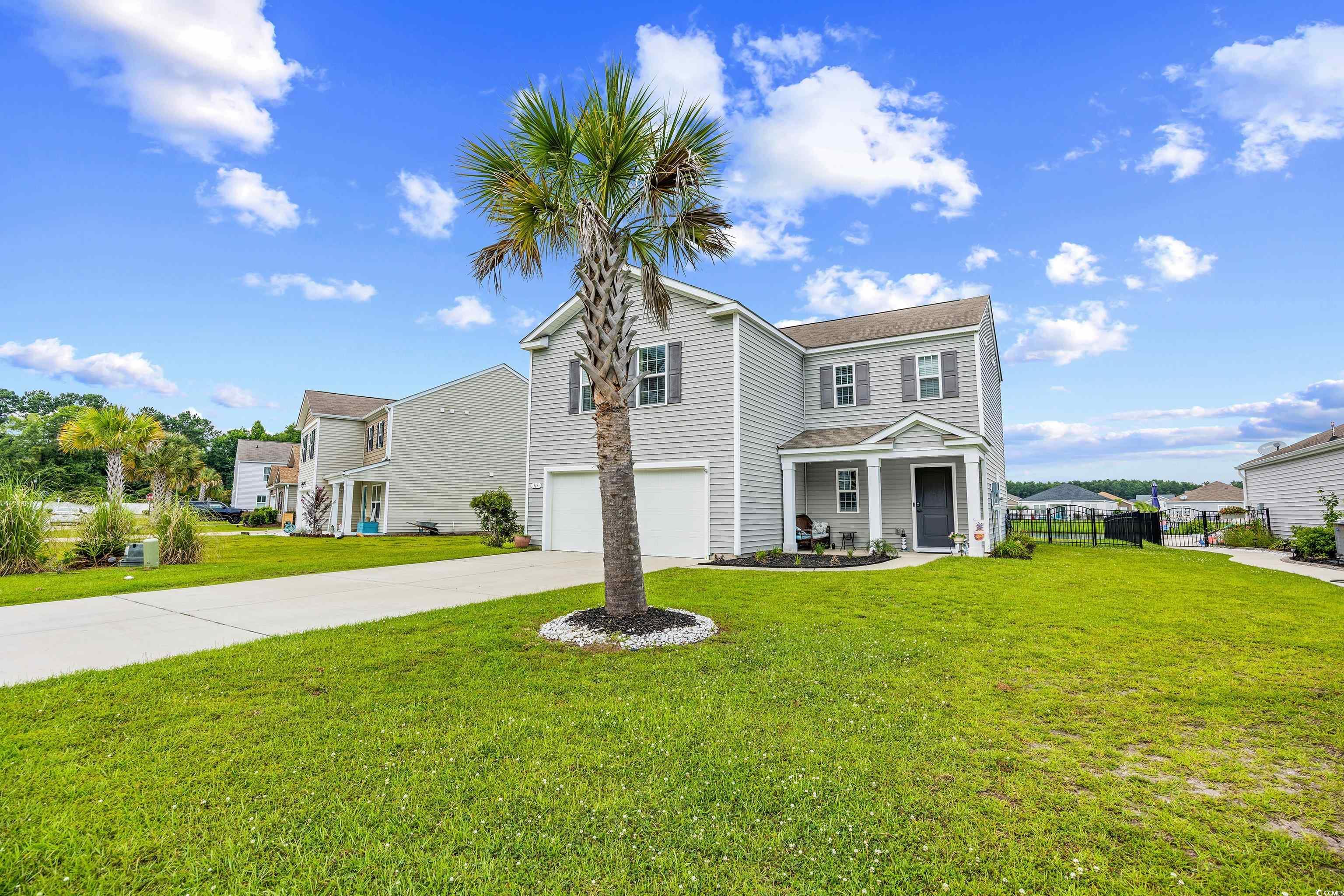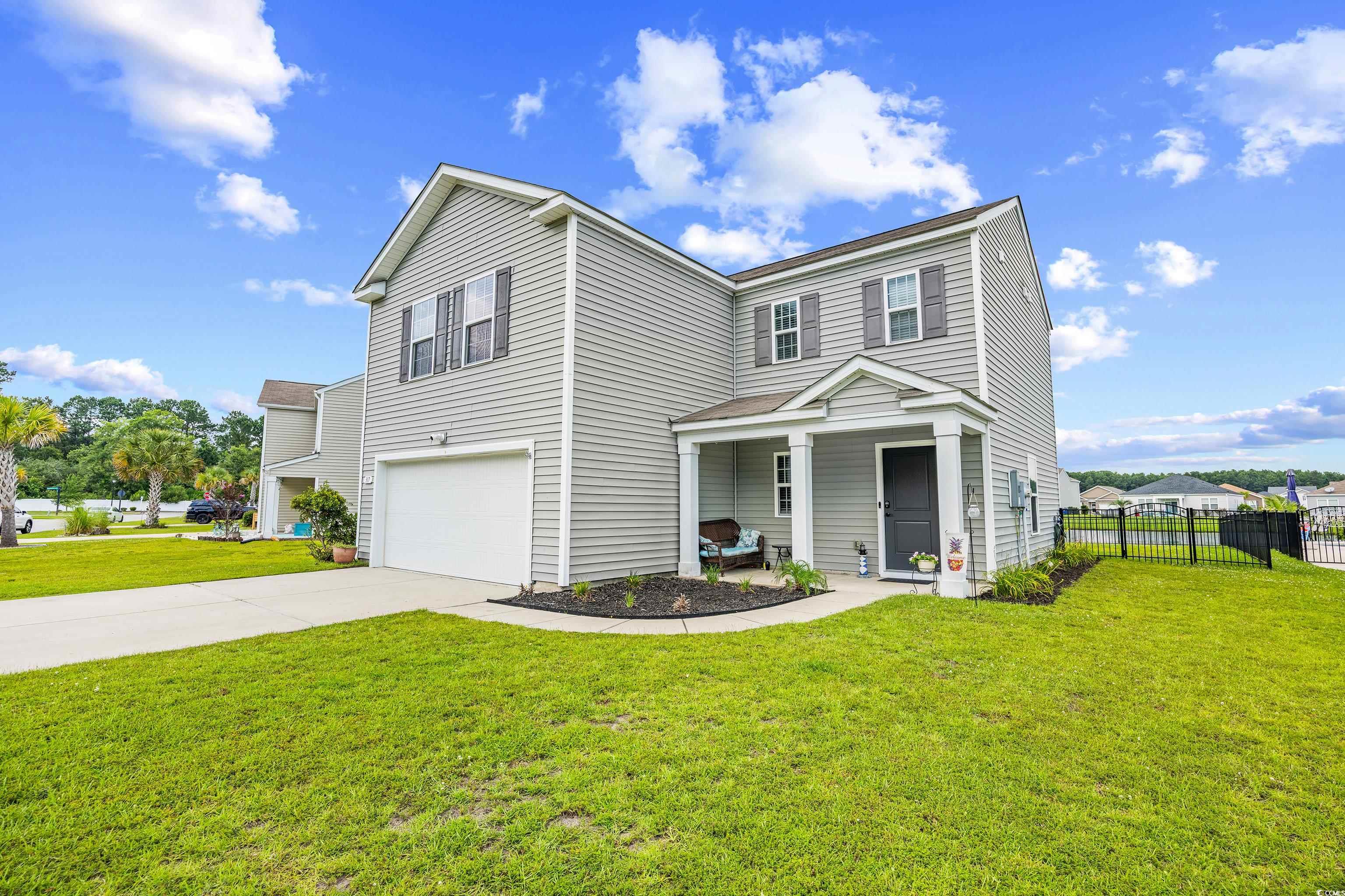 Pond views, premium upgrades, and outdoor living at its best! Welcome to 317 Truce St — a beautifully upgraded 4-bedroom, 2.5-bath home in the desirable Harmony at St. James community. This spacious two-story home sits on one of the largest pond-front lots in the neighborhood and is packed with high-value features you won't find elsewhere. Step inside to an inviting open-concept floor plan, highlighted by a custom shiplap accent wall and electric fireplace in the living room - perfect for cozy evenings or stylish entertaining. The kitchen boasts stainless steel appliances, upgraded fixtures, and direct access to your covered back porch with an extended concrete patio, ideal for grilling or relaxing by the water. Upstairs, you'll find four generously sized bedrooms, including a primary suite with double vanities and a walk-in closet. Enjoy peace of mind with a fully fenced backyard, offering space, privacy, and unbeatable waterfront views. Built in 2017 and meticulously maintained, this home also features LVP flooring, a 2-car garage, and excellent curb appeal. Located just a short walk to St. James High School, and minutes from shopping, dining, and the beach, this home is perfectly situated for convenience and lifestyle. Don't miss your chance to own one of the most upgraded homes in Harmony! Square footage is approximate and not guaranteed. Buyers responsible for verification.