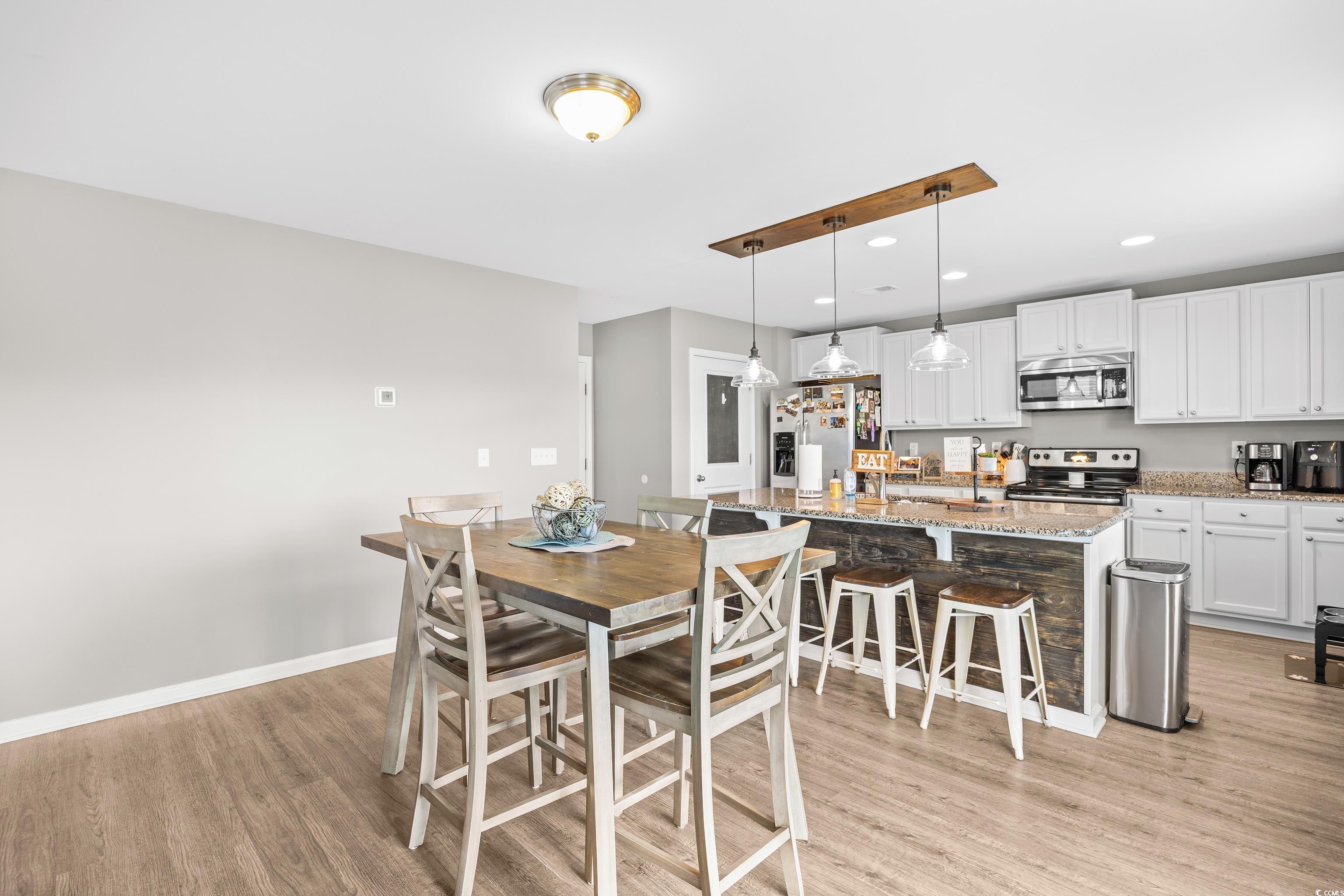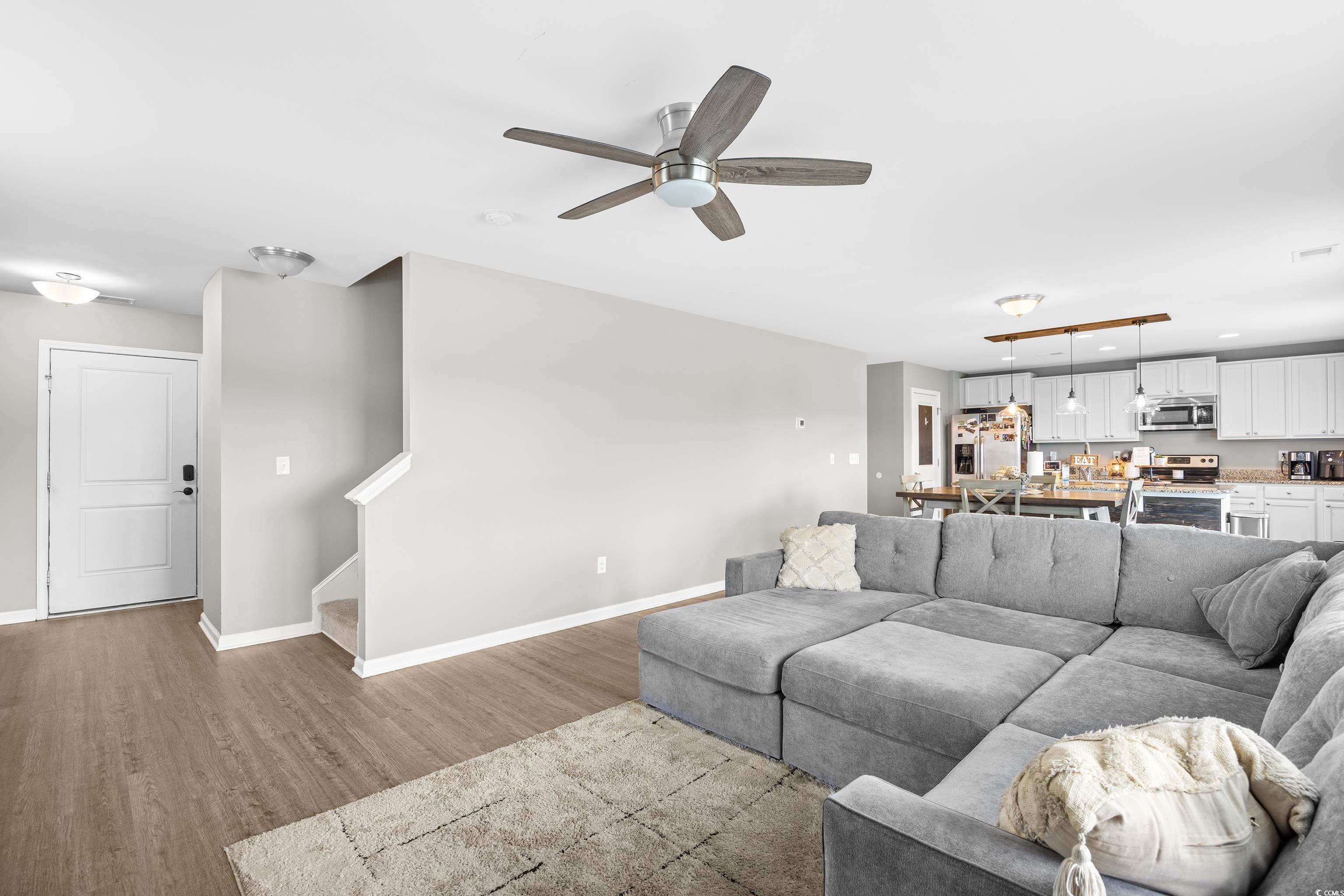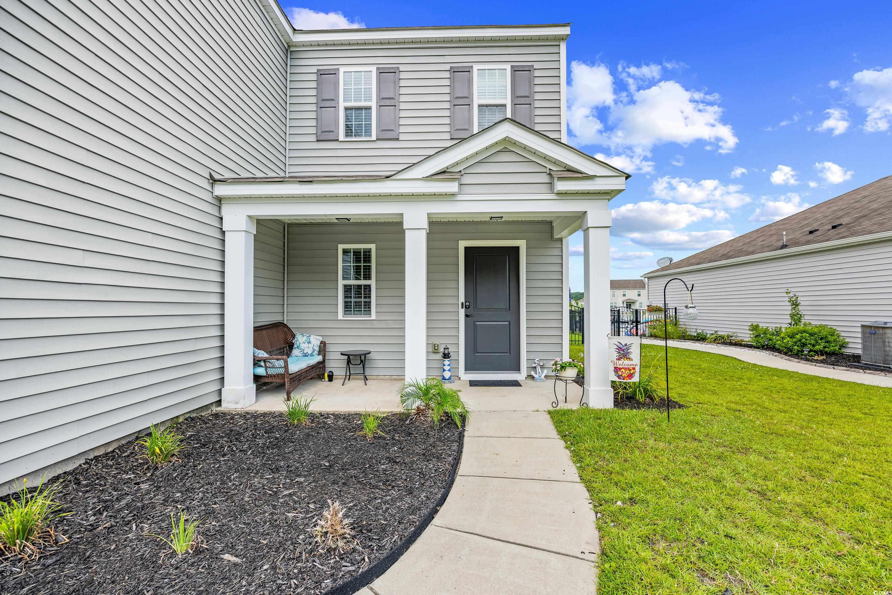 Pond views, premium upgrades, and outdoor living at its best! Welcome to 317 Truce St — a beautifully upgraded 4-bedroom, 2.5-bath home in the desirable Harmony at St. James community. This spacious two-story home sits on one of the largest pond-front lots in the neighborhood and is packed with high-value features you won't find elsewhere. Step inside to an inviting open-concept floor plan, highlighted by a custom shiplap accent wall and electric fireplace in the living room - perfect for cozy evenings or stylish entertaining. The kitchen boasts stainless steel appliances, upgraded fixtures, and direct access to your covered back porch with an extended concrete patio, ideal for grilling or relaxing by the water. Upstairs, you'll find four generously sized bedrooms, including a primary suite with double vanities and a walk-in closet. Enjoy peace of mind with a fully fenced backyard, offering space, privacy, and unbeatable waterfront views. Built in 2017 and meticulously maintained, this home also features LVP flooring, a 2-car garage, and excellent curb appeal. Located just a short walk to St. James High School, and minutes from shopping, dining, and the beach, this home is perfectly situated for convenience and lifestyle. Don't miss your chance to own one of the most upgraded homes in Harmony! Square footage is approximate and not guaranteed. Buyers responsible for verification.