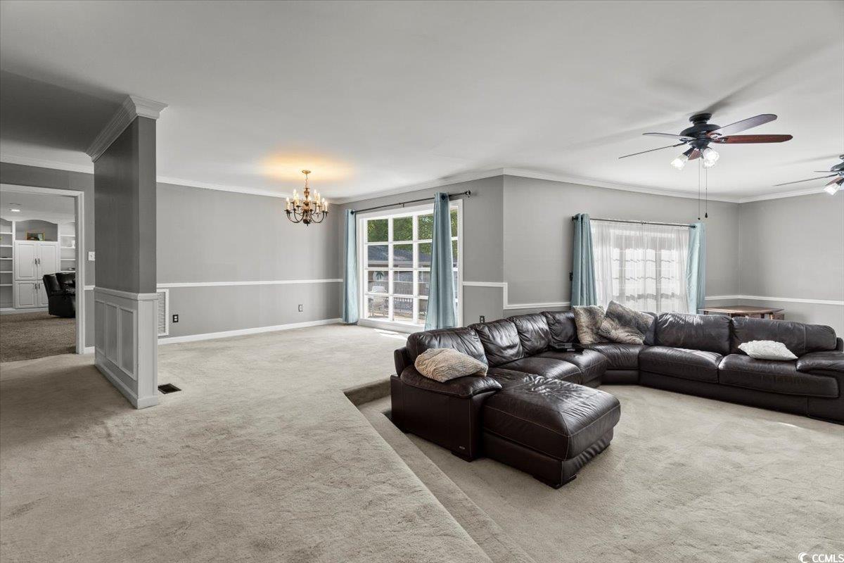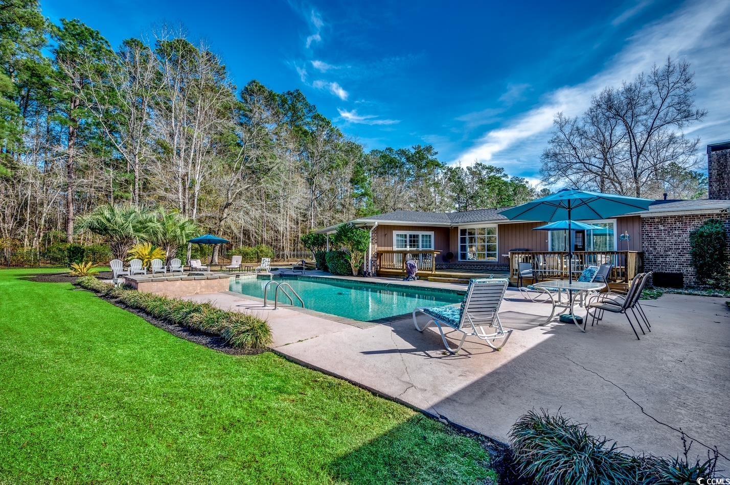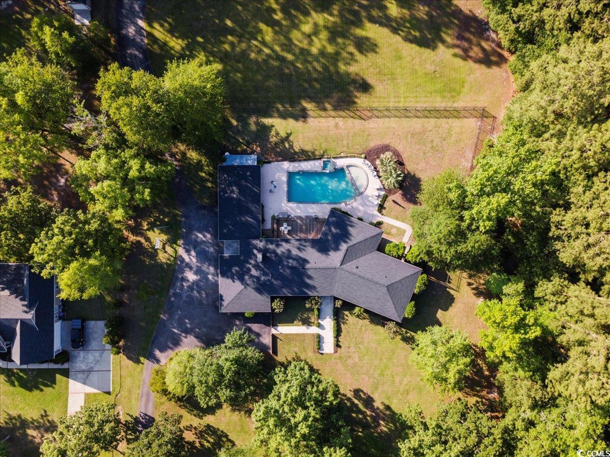 Reduced price! Still encouraging showings & considering offers while under an extended contingent contract. Fantastic home on a 3.25 acre compound within the city limits of Conway, SC, close to historic downtown, accessible to CCU, & zoned for desirable Conway schools, is solidly built, with a new roof. This one level rancher boasts two living rooms, multiple exits to a secluded backyard and plenty of room for storage and parking. Inside: Updated kitchen with new quartz countertops, solid wood cabinets, new microwave, and oven. Remodeled full bathrooms with taller toilets, modern custom tile, high end fixtures, and rain shower style heads. Energy efficient LED recessed lighting and new bedroom ceiling fans as well as fresh paint in most spaces. *Listing pictures show examples of flooring updates that could be done by buyer in the hallway, foyer, sunken den, dining room, living room, and kitchen areas. Outside: covered parking pads, two newly built expansive decks, outdoor shower, beautiful mature landscaping, french drain system, and is adjacent to undeveloped land. The very private backyard is an insulated oasis the property has NEVER FLOODED. Storage and other spaces: With 3200 square-foot under roof the 4 bedrooms have large closets with customizations. An additional 500 sq feet of attached 2 car garage space that was recently updated as a multi purpose room and has a functioning gas cooktop and sink. There is also a roughed in pool house with cedar storage and a brick smoker adjacent to the in-ground concrete pool & hot tub with tanning ledge. This adds up to over 4000 sq feet approximately for this magnificent home. Pull down attic steps lead to more storage options and a there is a transferable roof warranty. Additional roughed in and detached 2 car garage with hobby shop and a detached storage shed located on the back part of the acreage allow for covered and protected parking for several vehicles, toys, lawn equipment etc. If you have a business vehicle or vehicles…No HOA here to harass you! Schedule your showing TODAY!