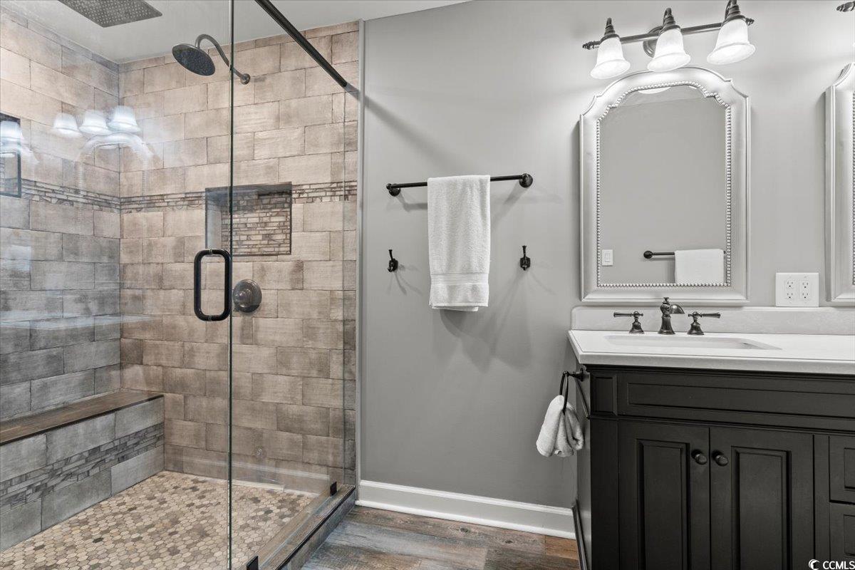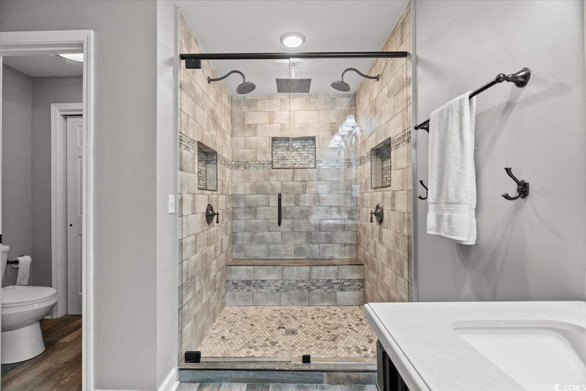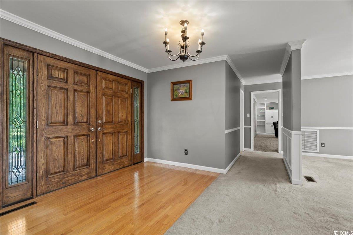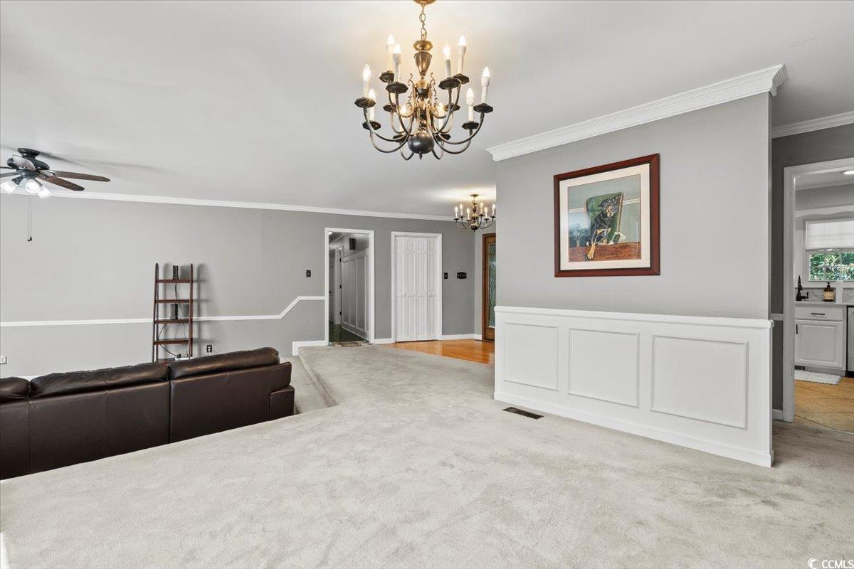 Reduced price! Still encouraging showings & considering offers while under an extended contingent contract. Fantastic home on a 3.25 acre compound within the city limits of Conway, SC, close to historic downtown, accessible to CCU, & zoned for desirable Conway schools, is solidly built, with a new roof. This one level rancher boasts two living rooms, multiple exits to a secluded backyard and plenty of room for storage and parking. Inside: Updated kitchen with new quartz countertops, solid wood cabinets, new microwave, and oven. Remodeled full bathrooms with taller toilets, modern custom tile, high end fixtures, and rain shower style heads. Energy efficient LED recessed lighting and new bedroom ceiling fans as well as fresh paint in most spaces. *Listing pictures show examples of flooring updates that could be done by buyer in the hallway, foyer, sunken den, dining room, living room, and kitchen areas. Outside: covered parking pads, two newly built expansive decks, outdoor shower, beautiful mature landscaping, french drain system, and is adjacent to undeveloped land. The very private backyard is an insulated oasis the property has NEVER FLOODED. Storage and other spaces: With 3200 square-foot under roof the 4 bedrooms have large closets with customizations. An additional 500 sq feet of attached 2 car garage space that was recently updated as a multi purpose room and has a functioning gas cooktop and sink. There is also a roughed in pool house with cedar storage and a brick smoker adjacent to the in-ground concrete pool & hot tub with tanning ledge. This adds up to over 4000 sq feet approximately for this magnificent home. Pull down attic steps lead to more storage options and a there is a transferable roof warranty. Additional roughed in and detached 2 car garage with hobby shop and a detached storage shed located on the back part of the acreage allow for covered and protected parking for several vehicles, toys, lawn equipment etc. If you have a business vehicle or vehicles…No HOA here to harass you! Schedule your showing TODAY!