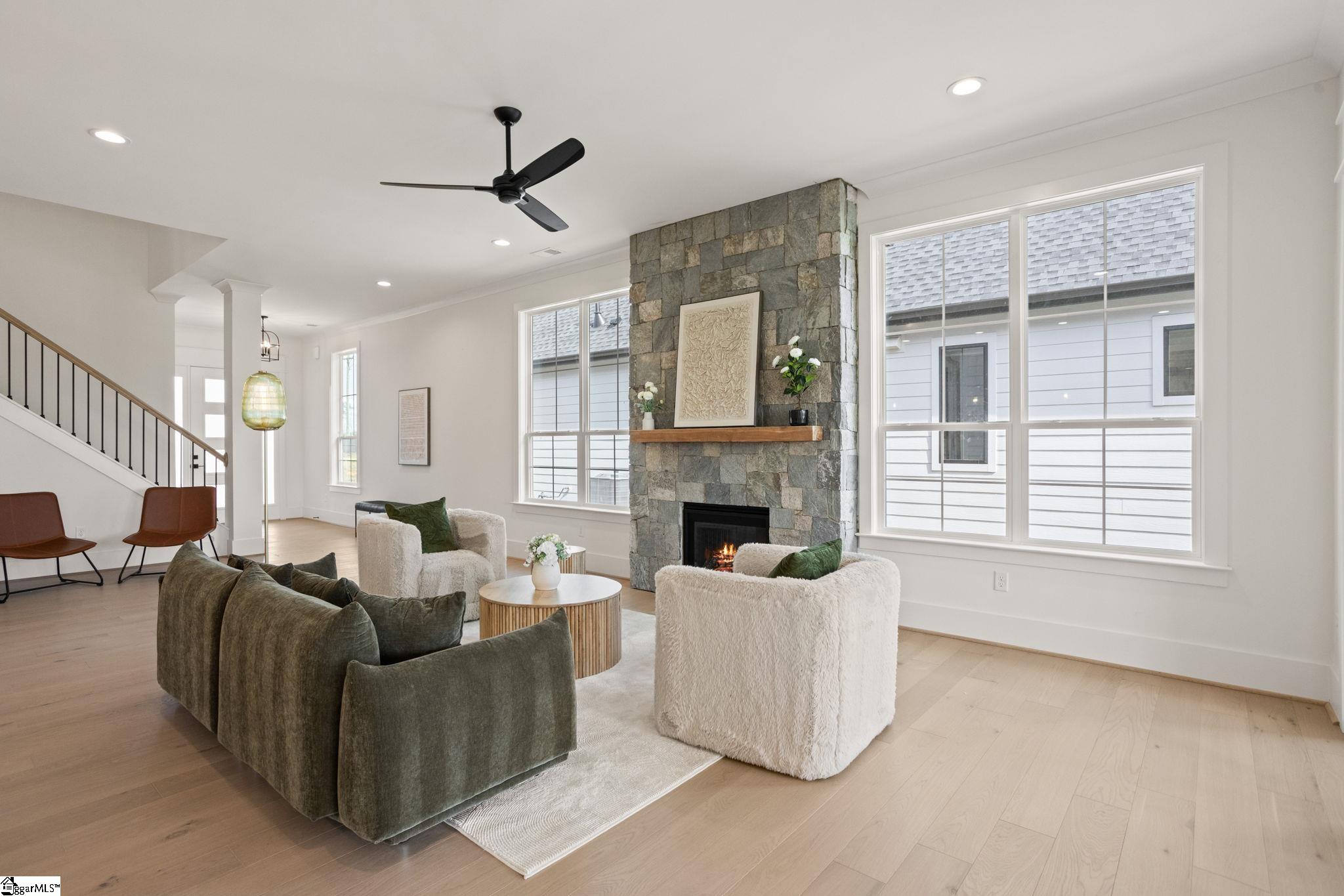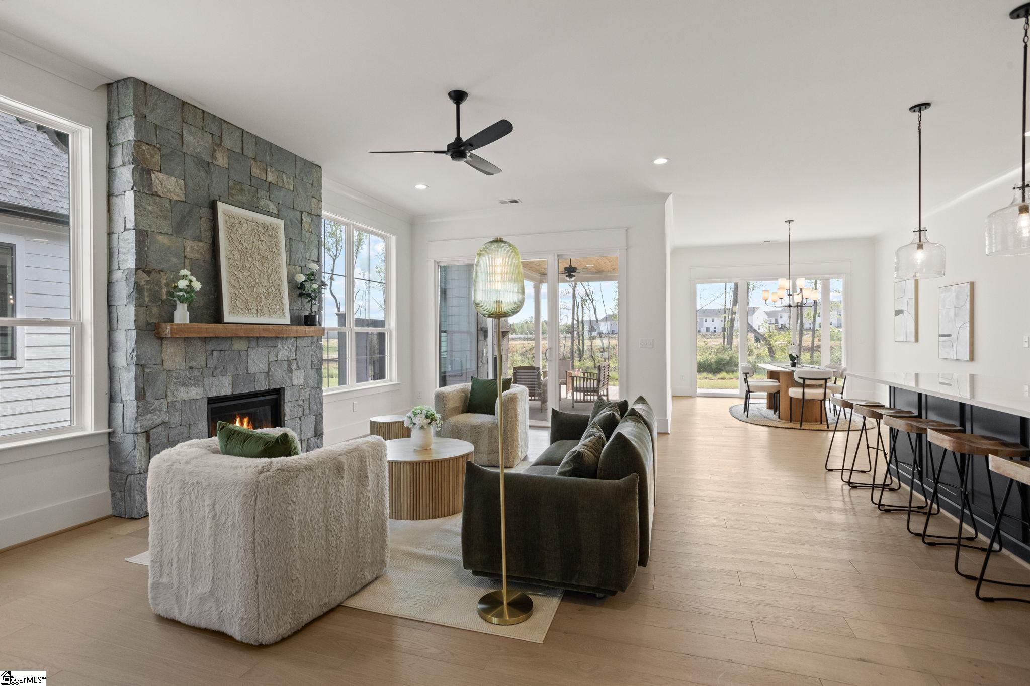 Welcome to Manegate Cottages, Rosewood Communities newest neighborhood in Greer, South Carolina! Spanning 2773 square feet, the Baltic showcases 10' ceilings and an open and airy floor plan with exceptional functionality. The main level primary suite provides a spa-like, private retreat with a gorgeous, separate tiled shower, garden tub and large double vanity with custom cabinetry in Mystic. The expansive kitchen features a 13 foot quartz island with Poolhouse Blue custom cabinets and Mystic White custom cabinetry around the perimeter. The large, walk-in pantry is ideal for entertaining and everyday living. The floor to ceiling natural stone gas fireplace in the living room creates a stunning focal point! Exit either the living or dining area through a triple slider to the expanded covered patio complete with a stone surround gas fireplace for more living space suitable for any season. The dedicated study on the main floor is a perfect work at home solution or den. Hardwood flooring extends through the living areas into the office AND primary bedroom. Upstairs are two spacious bedrooms, a full bath with a tile surround tub, tile flooring and large loft area with skylights with remote controlled blinds that add even more natural light to this open home. Don't miss the easy access, ample storage! Located in Greer, between Greenville and Spartanburg, this beautiful new community features stylish, modern homes with open floor plans, top-tier finishes, and low maintenance living at it's finest! All homes in Manegate Cottages will have lawn and landscape maintenance included in the monthly HOA fee. Conveniently located between Greenville and Spartanburg and only a short drive to shopping and restaurants in the Five Forks area of Simpsonville or the Greenville - Spartanburg International Airport!