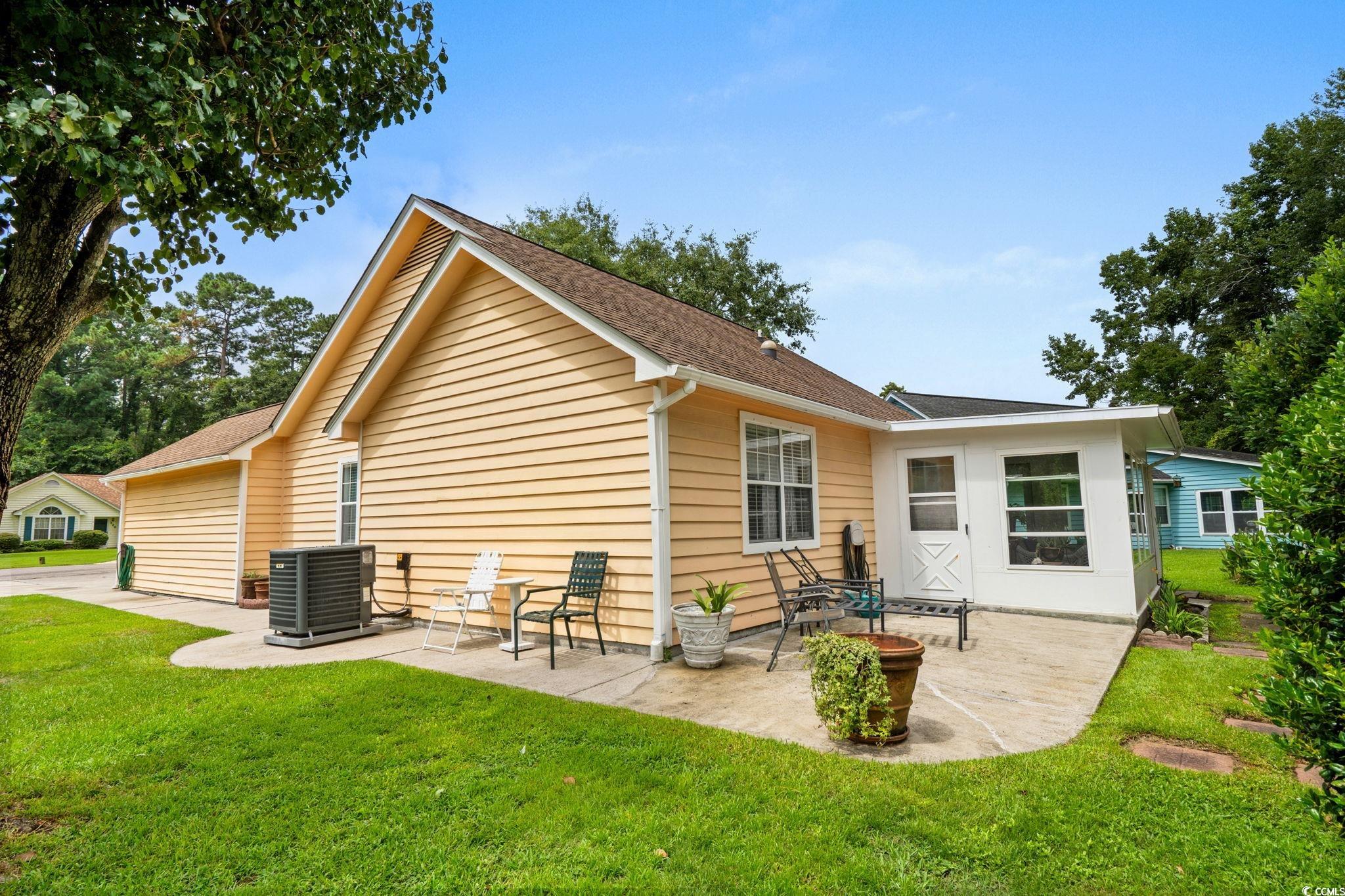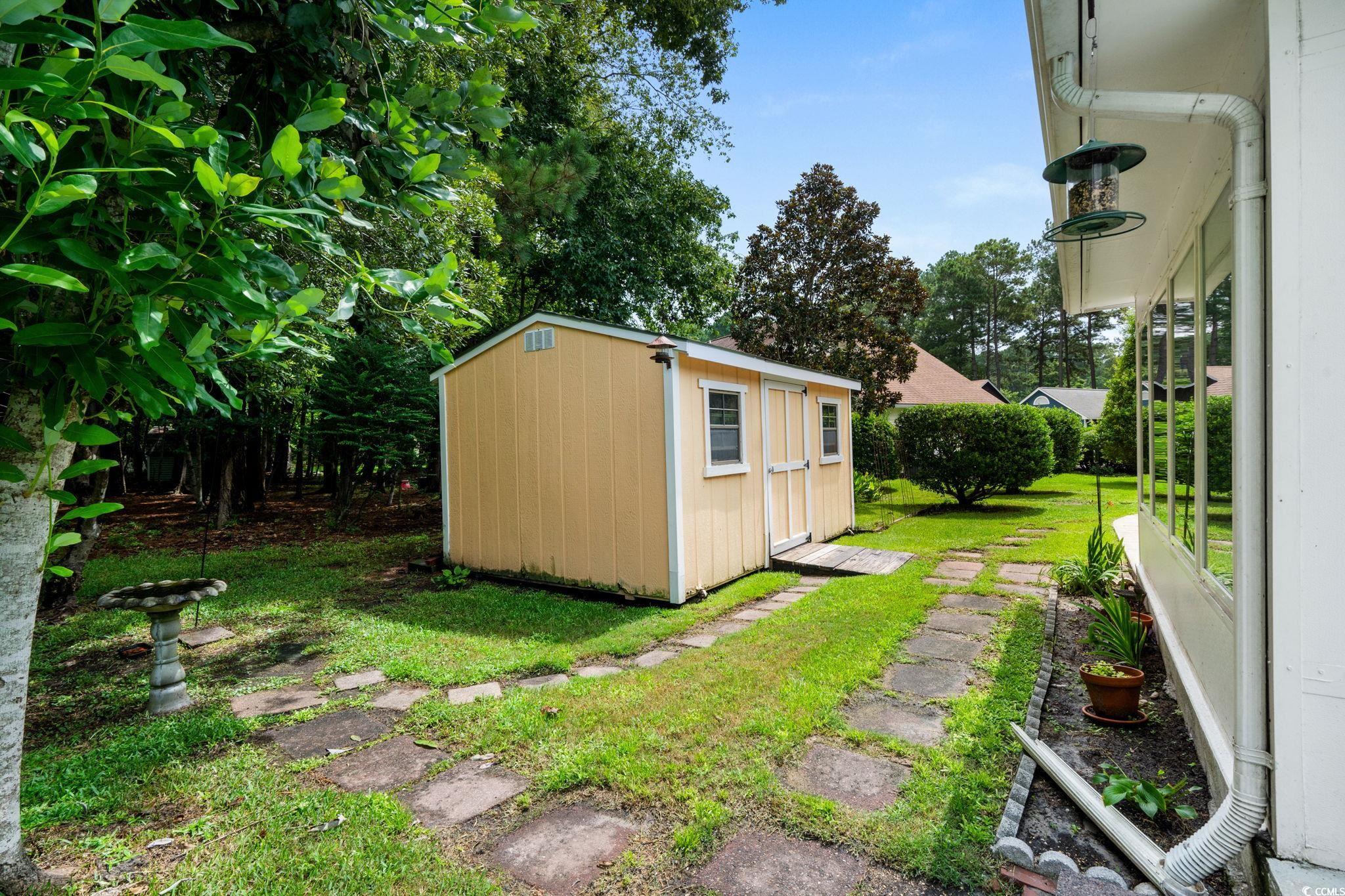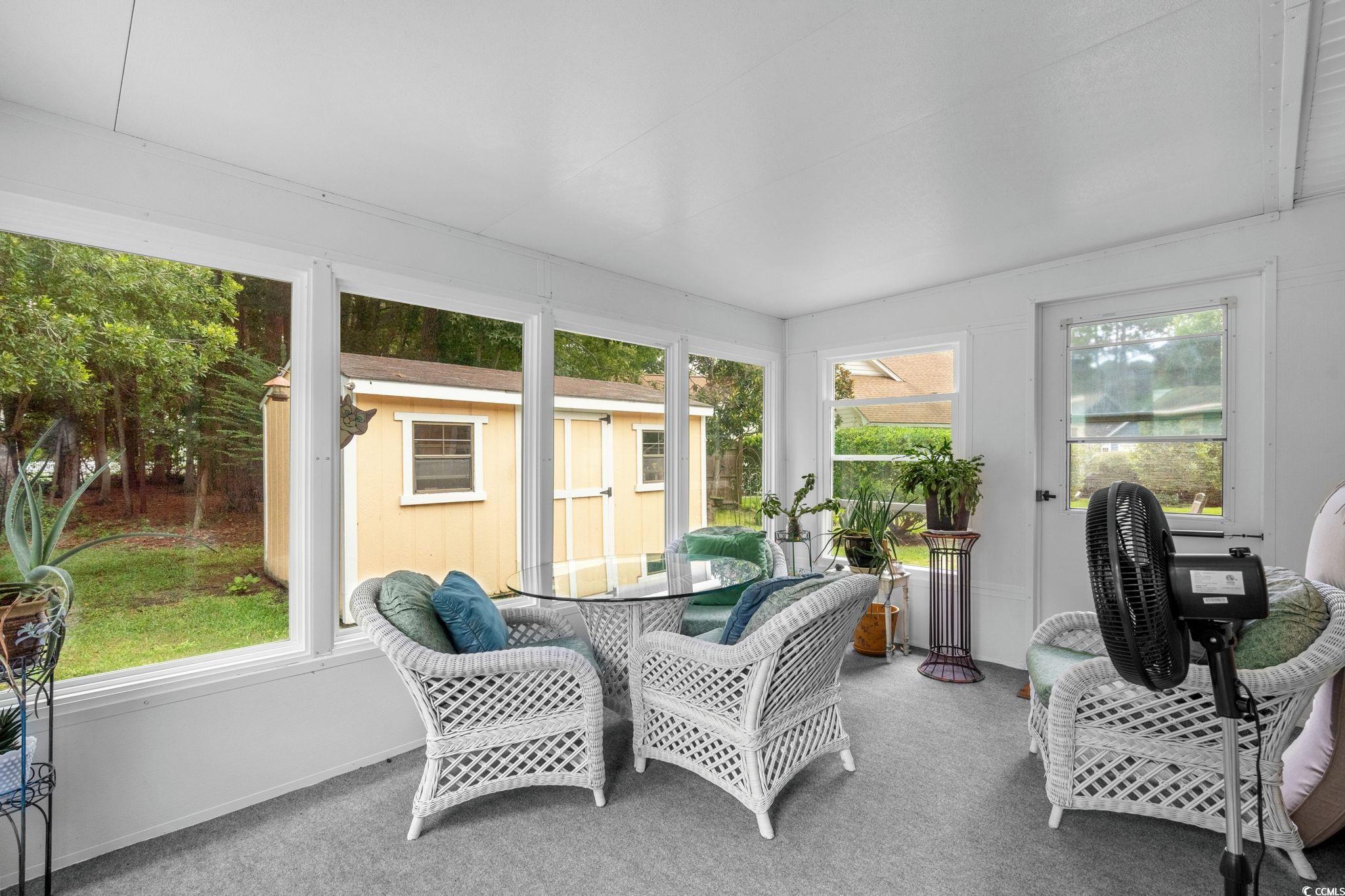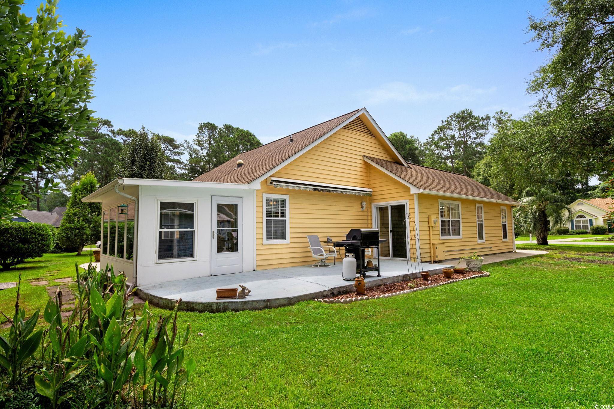 Charming coastal cottage in The Preserve, Little River! This cheerful 3BR/2BA home has a versatile third room that’s perfect as a guest bedroom, home office, or den. A wide driveway and single-car garage welcome you home, while mature trees and a large, green yard create a peaceful setting. Inside, vaulted ceilings and an arched picture window flood the living area with natural light. Easy-care wood flooring carries through the open living/dining space to an efficient kitchen with granite counters, breakfast bar seating, and crisp white appliances. The primary suite features a roomy walk-in closet; a second bedroom and full bath are nearby, plus the flexible third room for whatever you need. Enjoy year-round living in the bright Carolina room overlooking the backyard, then step out to the extended patio—complete with retractable awning—for effortless outdoor dining and grilling. A generous storage shed keeps tools, beach gear, or hobbies neatly tucked away, and the indoor laundry area offers extra shelving and cabinet space. The home also comes with the added bonus that is includes a whole home propane generator! Never worry about having the rigght power to keep things up and running! Tucked on a large lot in an established, tree-lined neighborhood, this home puts you minutes from marinas, golf, waterfront dining, and the beaches of the Grand Strand. Low-maintenance exterior, comfortable layout, and terrific outdoor spaces—everything you want for relaxed coastal living in Little River.