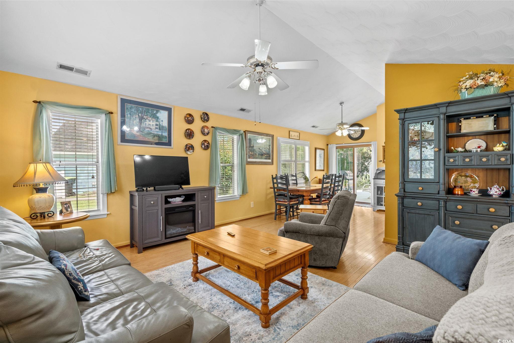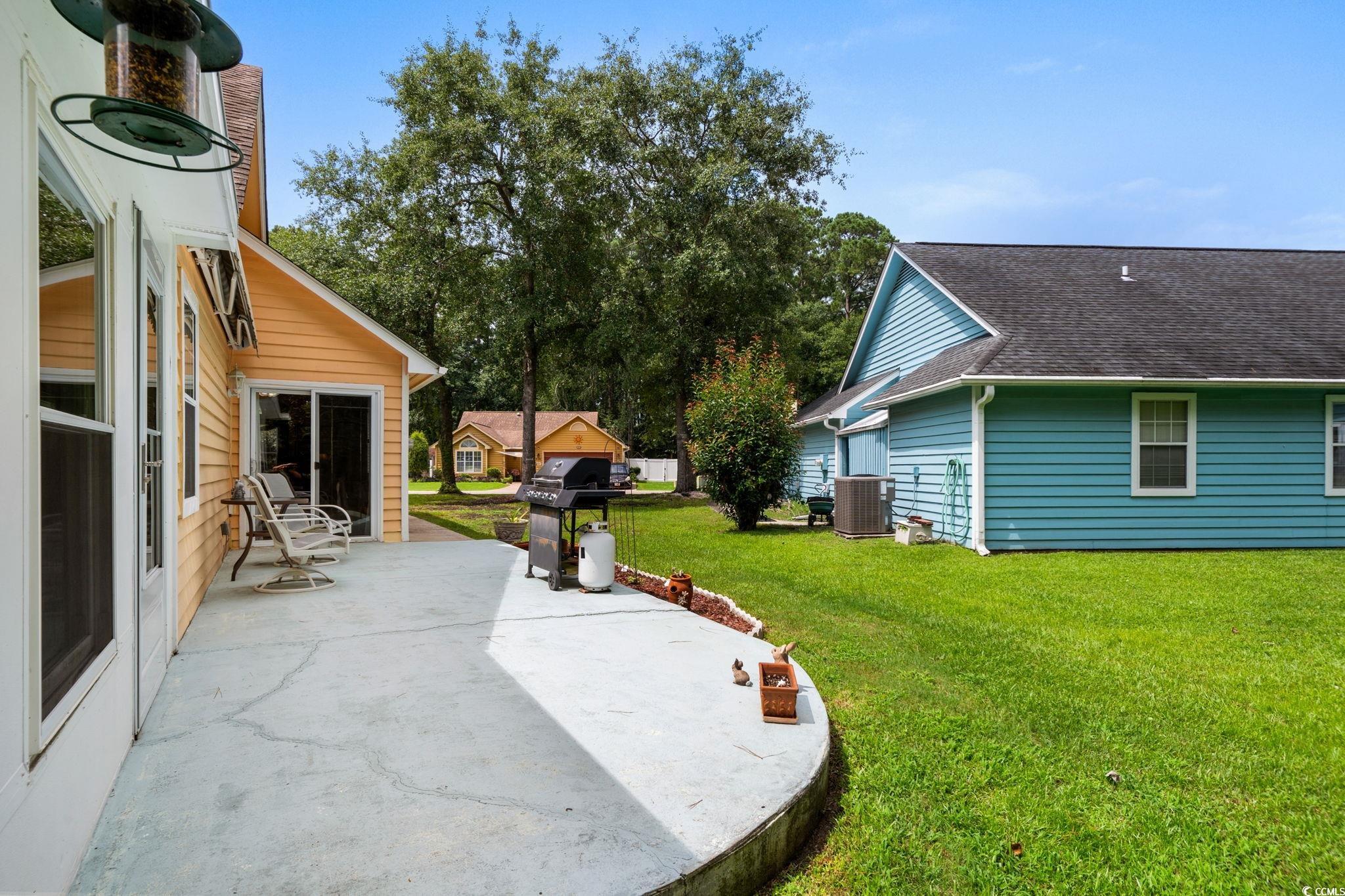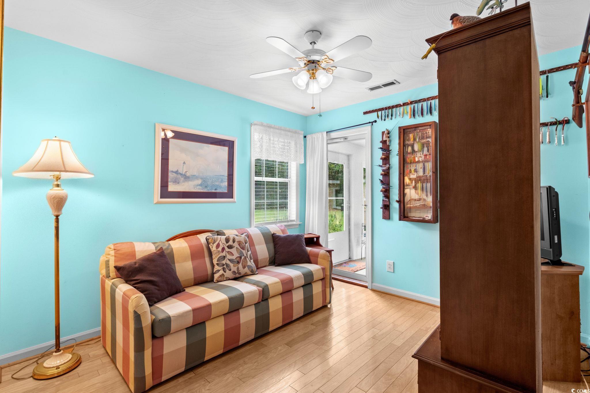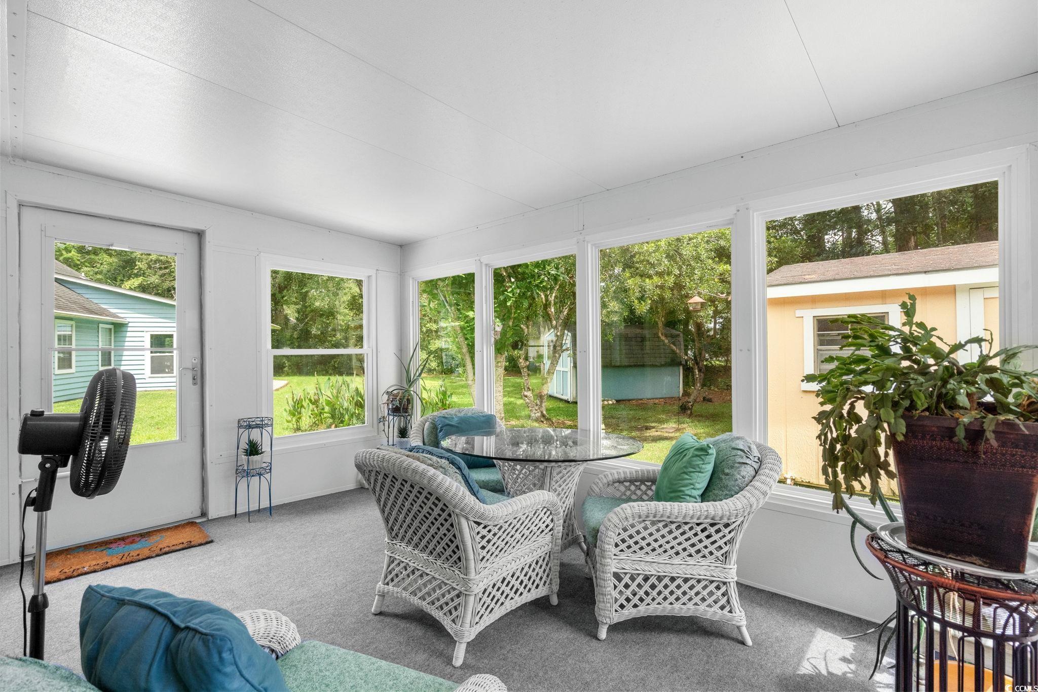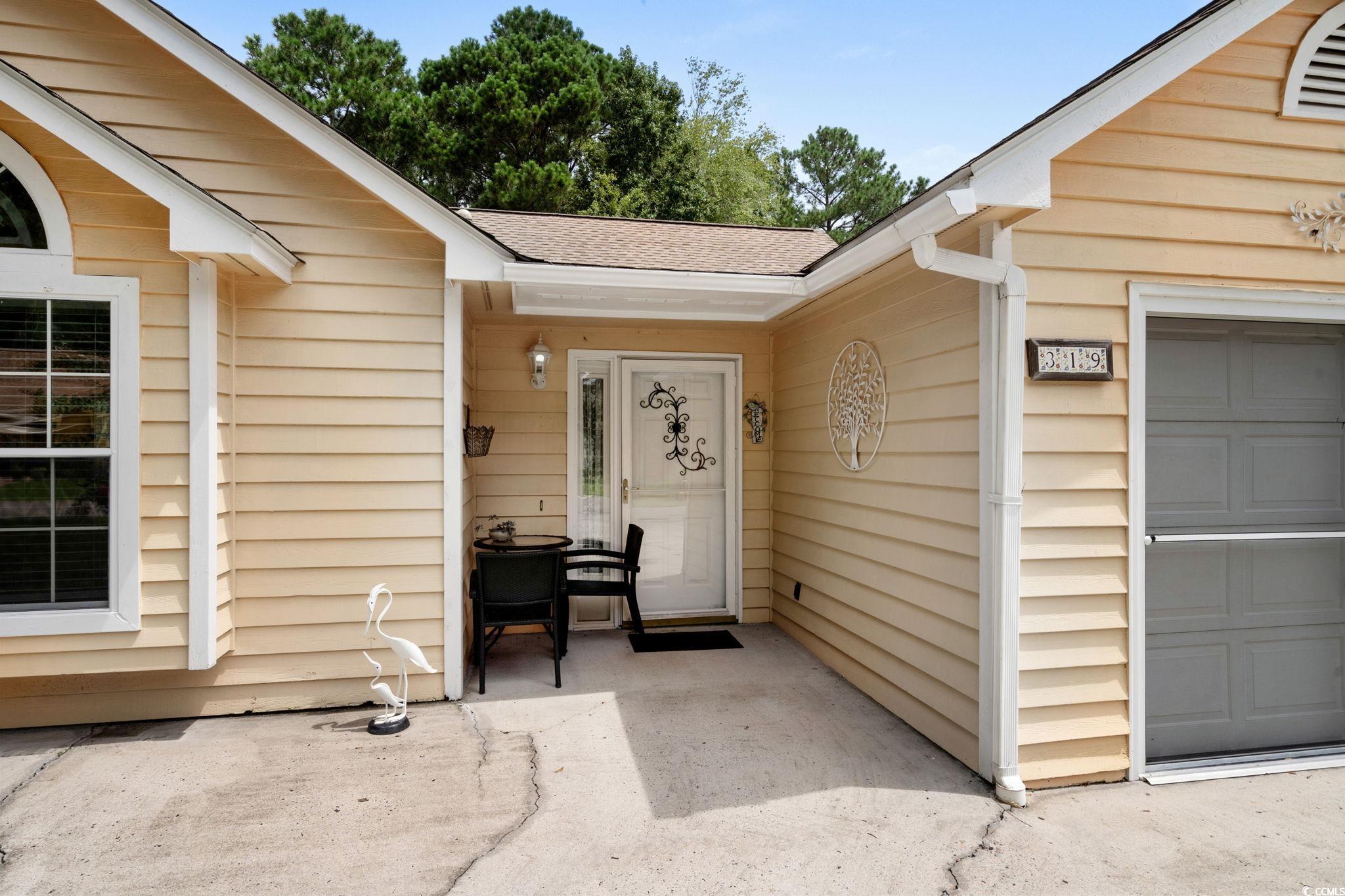 Charming coastal cottage in The Preserve, Little River! This cheerful 3BR/2BA home has a versatile third room that’s perfect as a guest bedroom, home office, or den. A wide driveway and single-car garage welcome you home, while mature trees and a large, green yard create a peaceful setting. Inside, vaulted ceilings and an arched picture window flood the living area with natural light. Easy-care wood flooring carries through the open living/dining space to an efficient kitchen with granite counters, breakfast bar seating, and crisp white appliances. The primary suite features a roomy walk-in closet; a second bedroom and full bath are nearby, plus the flexible third room for whatever you need. Enjoy year-round living in the bright Carolina room overlooking the backyard, then step out to the extended patio—complete with retractable awning—for effortless outdoor dining and grilling. A generous storage shed keeps tools, beach gear, or hobbies neatly tucked away, and the indoor laundry area offers extra shelving and cabinet space. The home also comes with the added bonus that is includes a whole home propane generator! Never worry about having the rigght power to keep things up and running! Tucked on a large lot in an established, tree-lined neighborhood, this home puts you minutes from marinas, golf, waterfront dining, and the beaches of the Grand Strand. Low-maintenance exterior, comfortable layout, and terrific outdoor spaces—everything you want for relaxed coastal living in Little River.