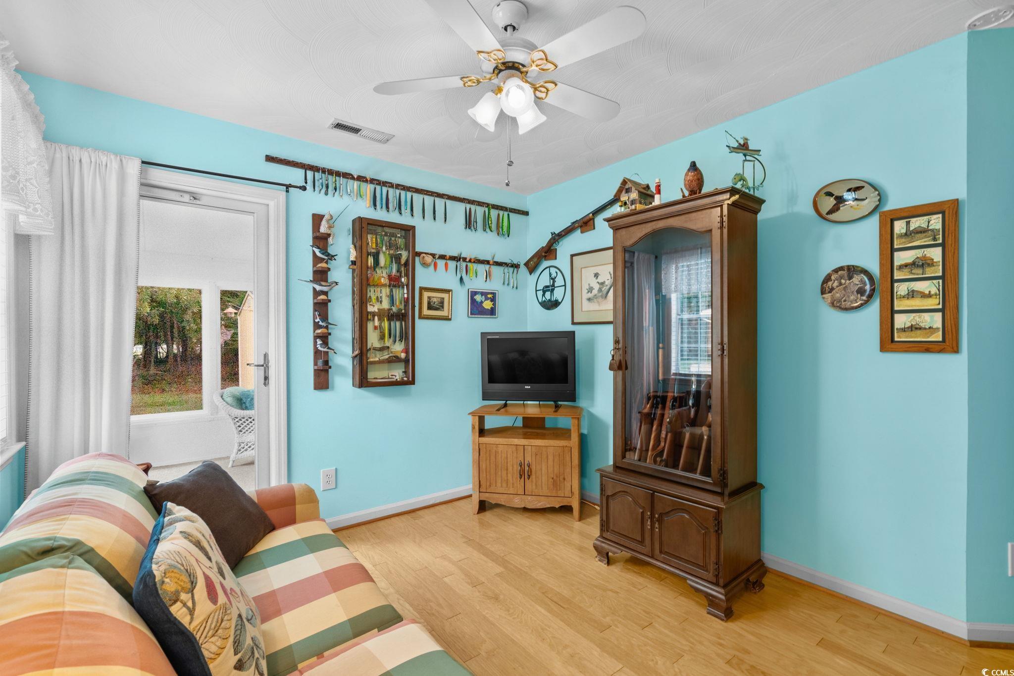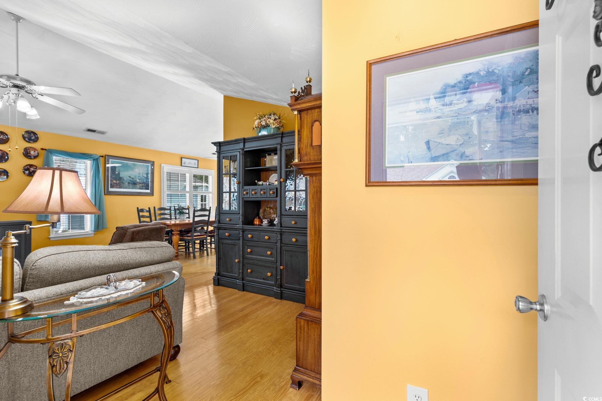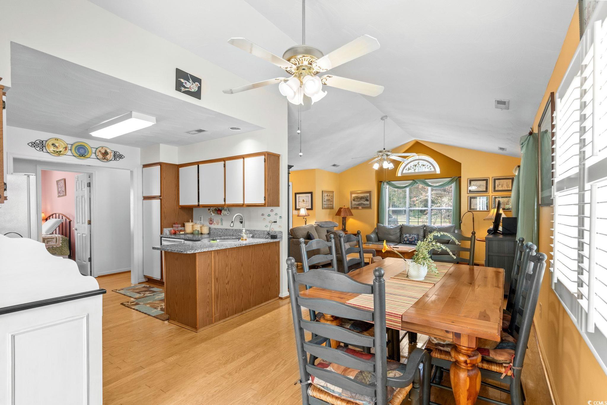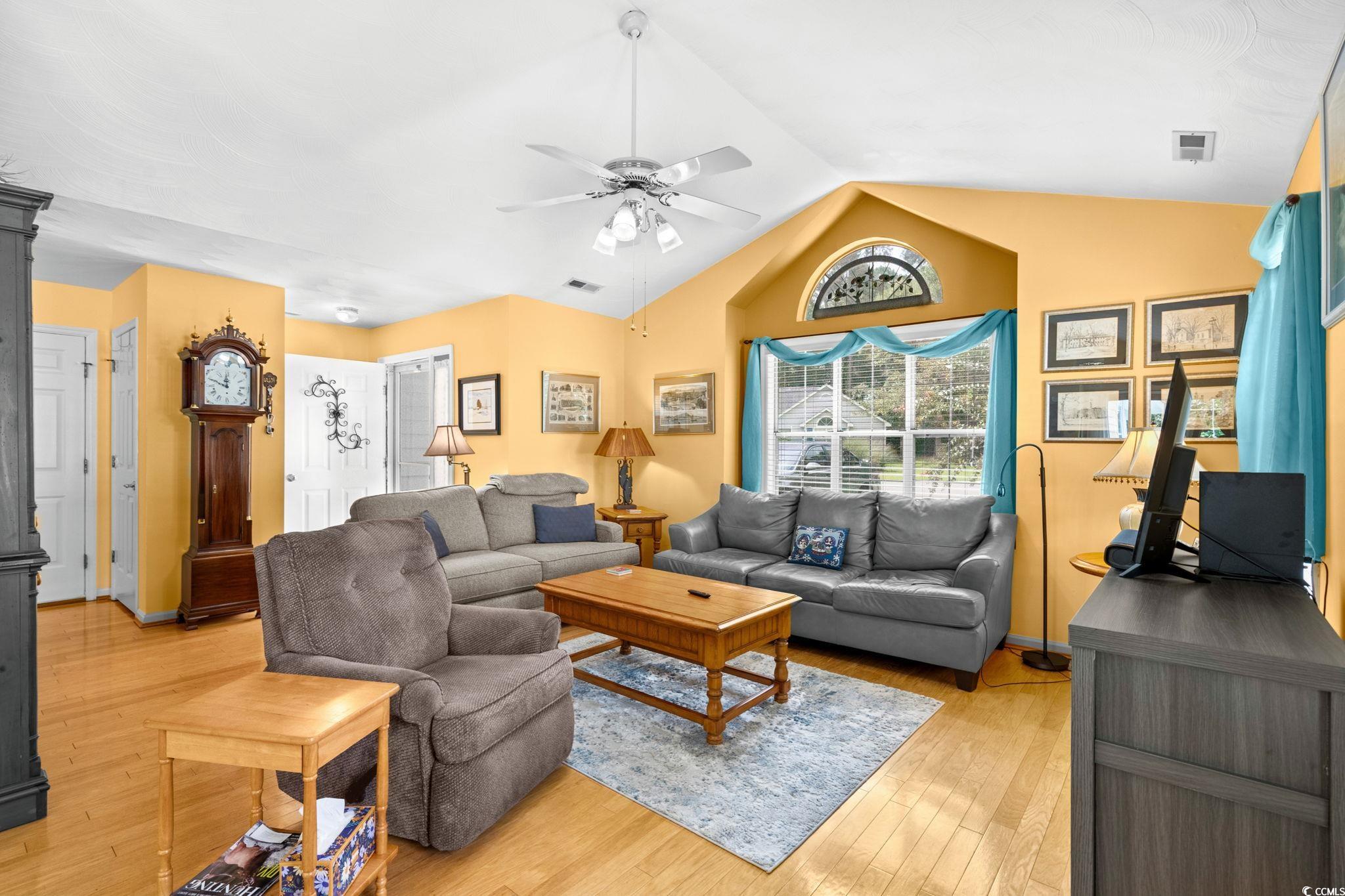 Charming coastal cottage in The Preserve, Little River! This cheerful 3BR/2BA home has a versatile third room that’s perfect as a guest bedroom, home office, or den. A wide driveway and single-car garage welcome you home, while mature trees and a large, green yard create a peaceful setting. Inside, vaulted ceilings and an arched picture window flood the living area with natural light. Easy-care wood flooring carries through the open living/dining space to an efficient kitchen with granite counters, breakfast bar seating, and crisp white appliances. The primary suite features a roomy walk-in closet; a second bedroom and full bath are nearby, plus the flexible third room for whatever you need. Enjoy year-round living in the bright Carolina room overlooking the backyard, then step out to the extended patio—complete with retractable awning—for effortless outdoor dining and grilling. A generous storage shed keeps tools, beach gear, or hobbies neatly tucked away, and the indoor laundry area offers extra shelving and cabinet space. The home also comes with the added bonus that is includes a whole home propane generator! Never worry about having the rigght power to keep things up and running! Tucked on a large lot in an established, tree-lined neighborhood, this home puts you minutes from marinas, golf, waterfront dining, and the beaches of the Grand Strand. Low-maintenance exterior, comfortable layout, and terrific outdoor spaces—everything you want for relaxed coastal living in Little River.