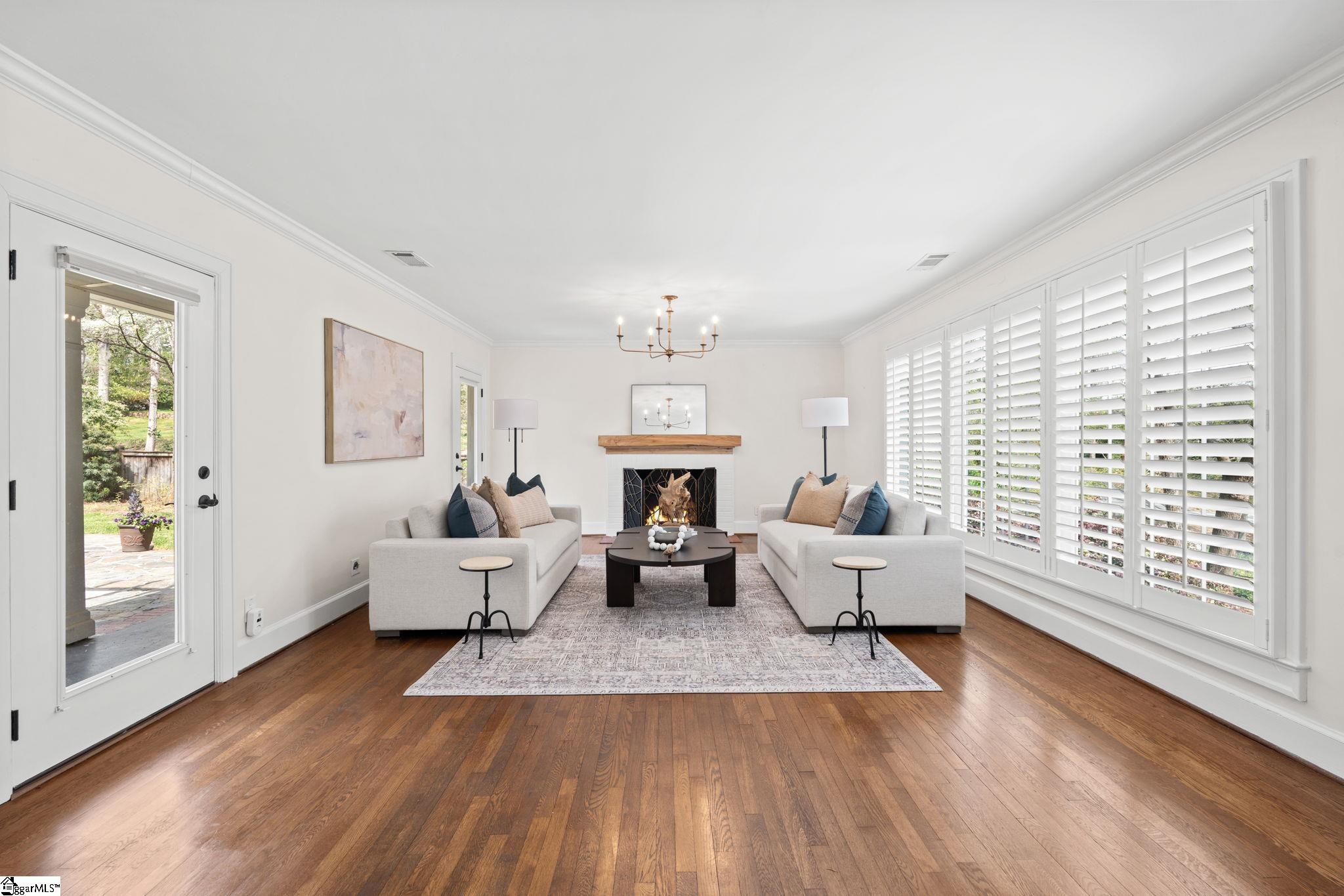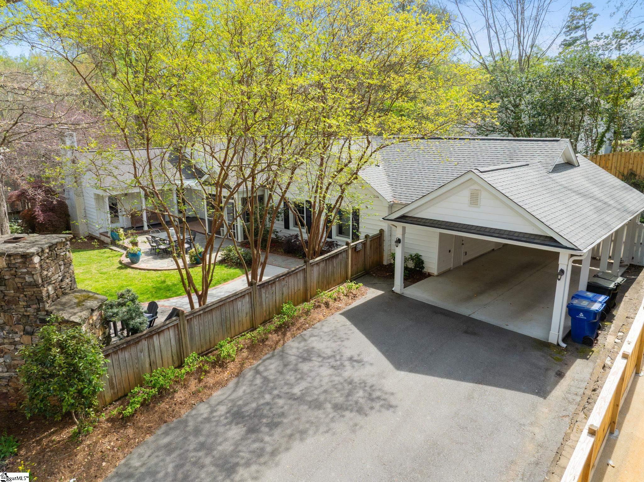 Welcome to this beautifully designed single-story home that effortlessly combines comfort, functionality, and timeless style — all in a highly desirable location near Greenville Country Club. Set on nearly a half-acre lot with a serene, park-like setting, this residence offers exceptional space both inside and out, perfect for easy living and entertaining. From the moment you arrive, the inviting layout and thoughtful details make this home stand out. With four spacious bedrooms and three full baths (one being a jack and jill style), every inch has been designed for accessibility and comfort. The open floor plan flows seamlessly from room to room, with wide hallways and handicap-accessible features that make everyday living convenient for everyone. The heart of the home is the large custom kitchen, a dream for any chef. Featuring double ovens, a gas range, and an oversized walk-in pantry with custom shelving, it offers both beauty and practicality. Generous counter space, abundant cabinetry, and a bright, open feel make this kitchen the perfect place to gather. Two stunning fireplaces anchor the main living spaces — one creating warmth in the expansive living room, and another setting a cozy tone in the family room or den. Each living area is spacious and filled with natural light, offering flexible options for relaxation or entertaining. Step outside to the show-stopping courtyard, an inviting outdoor retreat centered around a stone fireplace — ideal for cool evenings, hosting friends, or enjoying quiet moments surrounded by mature landscaping. The large lot provides privacy, shade, and a true sense of tranquility. Additional highlights include an EV car charger conveniently located in the carport, plus a long, oversized storage closet that offers impressive space for tools, seasonal items, or hobby gear. Every detail of this home has been carefully maintained and designed to enhance both lifestyle and livability. Situated just minutes from downtown Greenville, shopping, dining, and recreation, this property offers the rare combination of accessibility, space, and location. Whether you’re looking for single-level living, thoughtful updates, or a private retreat close to everything, this home delivers it all. Spacious, accessible, and beautifully crafted — a true Greenville gem in a coveted setting.
