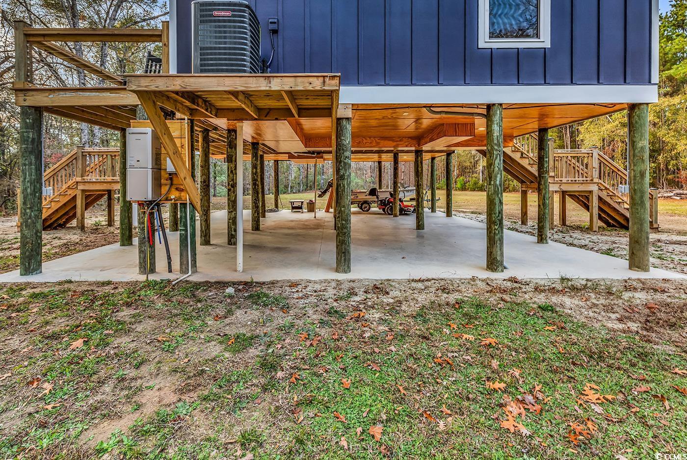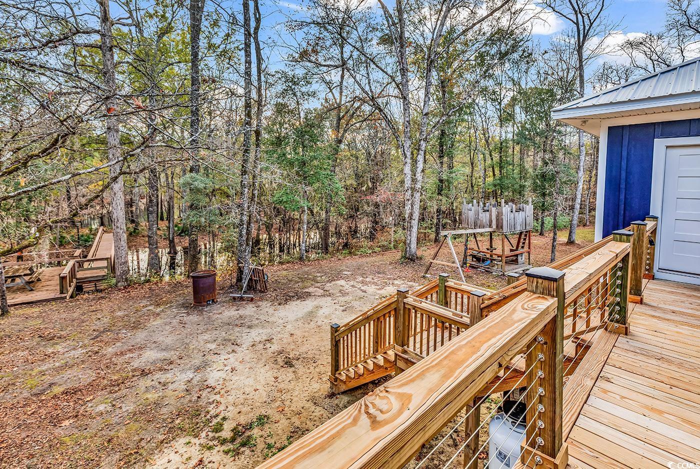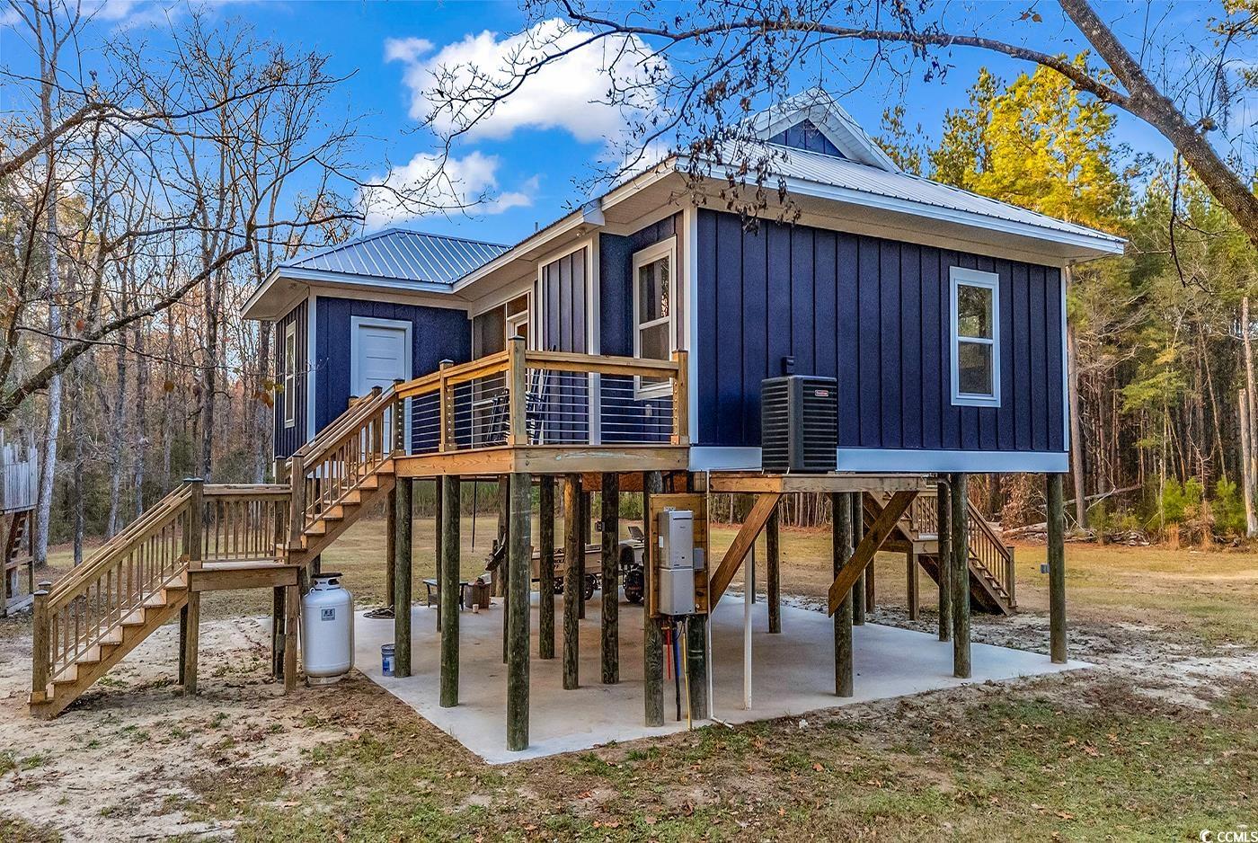 Welcome to a rare riverfront retreat on the Black River just outside Kingstree, South Carolina. This newly built cabin blends rustic character with thoughtful modern comforts, creating a getaway that feels both timeless and tailored. Step inside to find custom touches throughout, including tongue-and-groove ceilings in all gathering spaces and a striking fire feature framed by a matching tongue-and-groove hearth. The home is equipped with a suite of smart upgrades, from Wi-Fi–enabled thermostats and gas range to a bathroom exhaust fan with an integrated Wi-Fi speaker. One of the bedrooms features an impressive custom bunk system that comfortably sleeps up to six, complete with built-in outlets for every bed. The Jack-and-Jill bath offers a beautifully finished walk-in shower, a pristine vanity, and a linen closet with a handcrafted tongue-and-groove door. Wake in the primary bedroom to a serene river view framed right from your window. If additional space is on your wish list, the lower level already has plumbing in place for another bathroom and room to create two more bedrooms. With ample electrical connections, the downstairs area can easily evolve into an outdoor entertainment zone, complete with space for sports viewing or an outdoor kitchen. Situated on 2 cleared acres, the property offers generous room for boats, ATVs, or future structures. Follow the boardwalk down to your private dock and cross onto your very own river island, where wildlife, quiet currents, and excellent fishing create a sense of escape. The cabin is also positioned near some of Williamsburg County’s premier hunting land and clubs. For those planning to enjoy the home as a weekend or seasonal retreat, the premium Speed Queen stackable washer and dryer ensures laundry never slows you down. This is a unique opportunity to own a riverfront haven with some of the most captivating views along the Black River. Buyer is responsible for verifying all information and measurements. *Seller is a licensed South Carolina Realtor*
