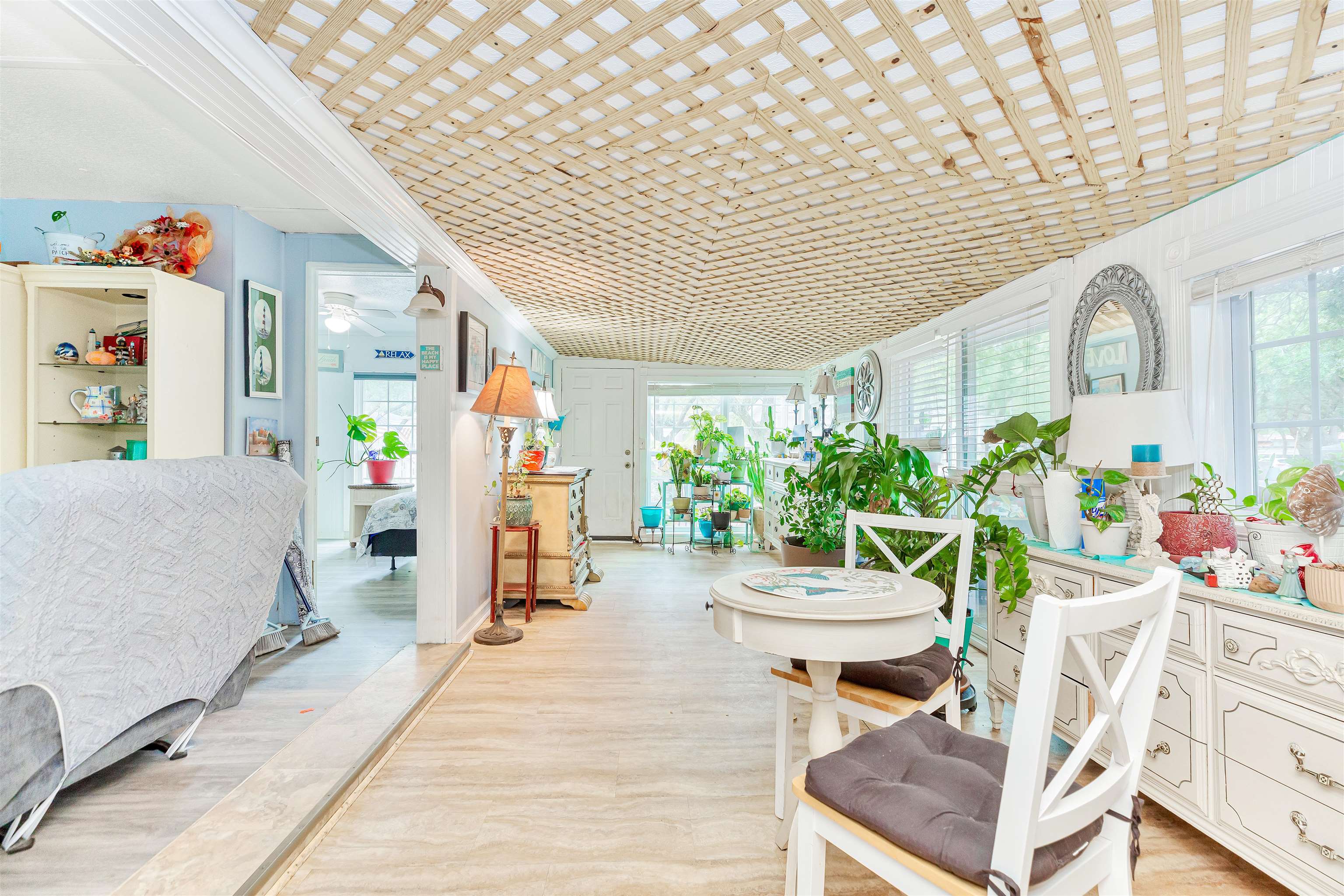 fully Furnished! This is a must see! The owner built brand new bedroom and bath including a laundry room, all updated in 2023. Great landscaping/ front and back gardens, fenced in yard, 2 master bedrooms, barn door entrance to laundry room, built in pantry, 3rd bedroom has 1/2 bath, wood blinds all windows. laundry room, part of heated sq feet, fused box electric panel replaced 2022,outside shed has sperate box to charge electric vehicle. Kayak and golf cart negotiable 2000 Club car cadet 2seater battery 2023. Come take a look and make us an offer. Move in special going on now. Lease may be able to be paid monthly for the 1st year!