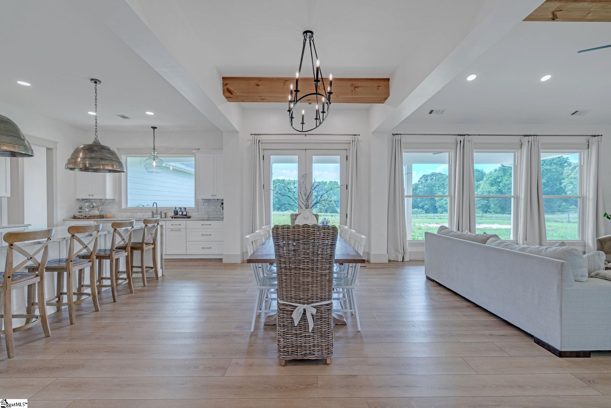 Experience refined Upstate living at 320 Terry Road in Fountain Inn, SC, a stunning custom-built estate completed in 2022 and thoughtfully positioned on 3.41 private acres with no HOA. Offering 3,711 square feet of beautifully designed living space, this exceptional residence features 5 spacious bedrooms, 4 full bathrooms, and 1 elegant half bath, blending sophistication, comfort, and modern functionality throughout. The heart of the home is a gourmet kitchen appointed with a premium JennAir appliance suite, an open-concept design ideal for elevated entertaining, and a walk-in pantry with water hookup for added convenience and future flexibility. The main-level primary suite serves as a luxurious private retreat, complete with heated floors that bring a spa-inspired touch to everyday living. A striking fireplace wall is already wired for future built-ins or sconces, offering an easy opportunity to personalize the main gathering space with custom design elements. A versatile bonus room pre-wired for laundry creates endless possibilities for a wet bar, kitchenette, secondary prep space, or tailored lifestyle use. Additional highlights include a tankless gas water heater, Fountain Inn natural gas connection, Spectrum high-speed internet availability, established septic system, and a drilled well that is not currently in use. Outdoors, the property continues to impress with a 50 amp RV hookup and dedicated septic, adding convenience and versatility to this one-of-a-kind offering. Combining luxury finishes, thoughtful infrastructure, and the freedom of acreage living.