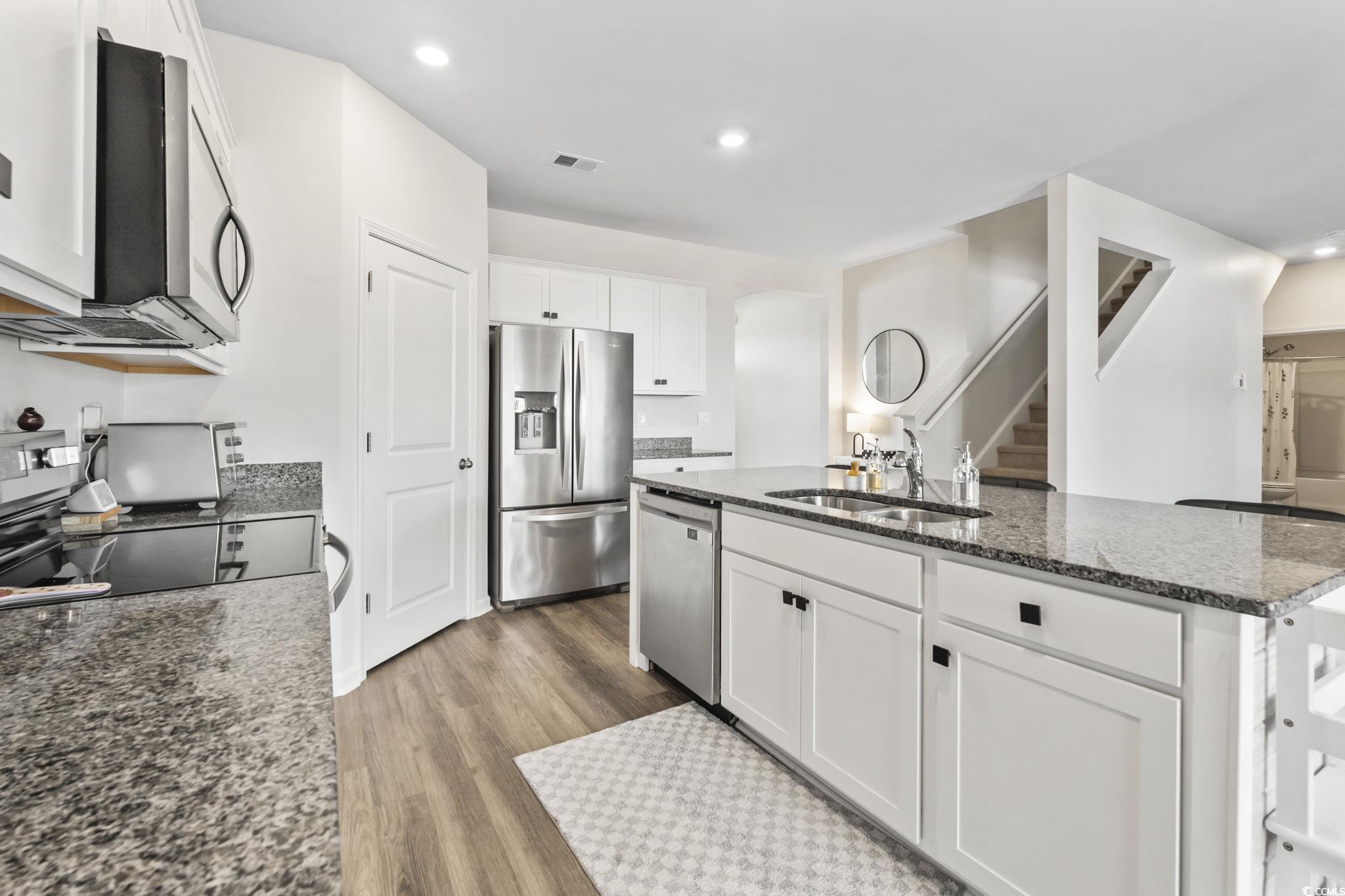 A tremendous opportunity awaits at 320 Vaccaro Dr, a spacious 5-bedroom, 3-bath traditional-style home offering an open, functional layout ideal for comfortable everyday living. The main level features a bright and airy design where the living room, breakfast nook, and kitchen flow together seamlessly, creating a natural gathering space filled with soft natural light. The kitchen is thoughtfully designed with white cabinetry, granite countertops, stainless steel appliances, a large island, and a walk-in pantry, providing both style and convenience for cooking and entertaining. A generously sized bedroom and full bath on the first floor offer privacy for guests or a flexible option for multi-generational living. Upstairs, the expansive primary suite includes dual vanities and two walk-in closets, along with enough space for a sitting area or workspace. Three additional bedrooms, two full baths, and a large loft complete the second floor, giving everyone room to spread out. Durable LVP flooring, updated carpeting, neutral finishes, and abundant storage enhance the home's livability. Practical features include a two-car garage, a widened driveway, and easy access to neighborhood sidewalks. The location provides convenient proximity to local shopping and dining, approximately 10 miles to Myrtle Beach International Airport, and just a short drive to the Grand Strand's sandy beaches. This home blends space, comfort, and modern design in a desirable area close to everyday essentials. Measurements are approximate and not guaranteed; the buyer is responsible for verification.