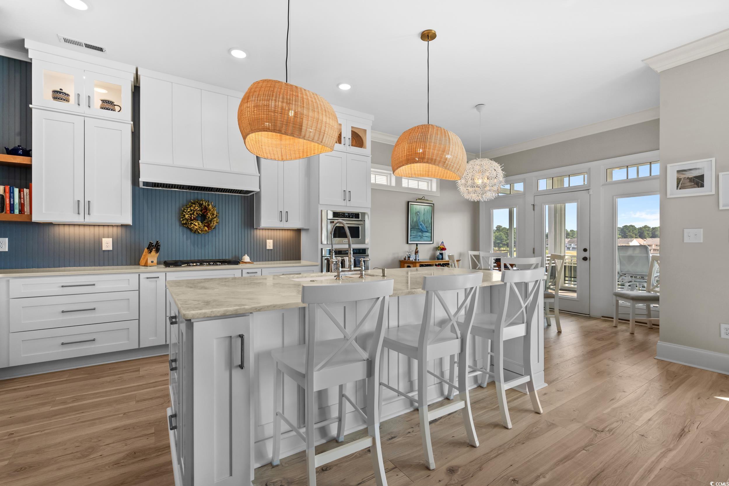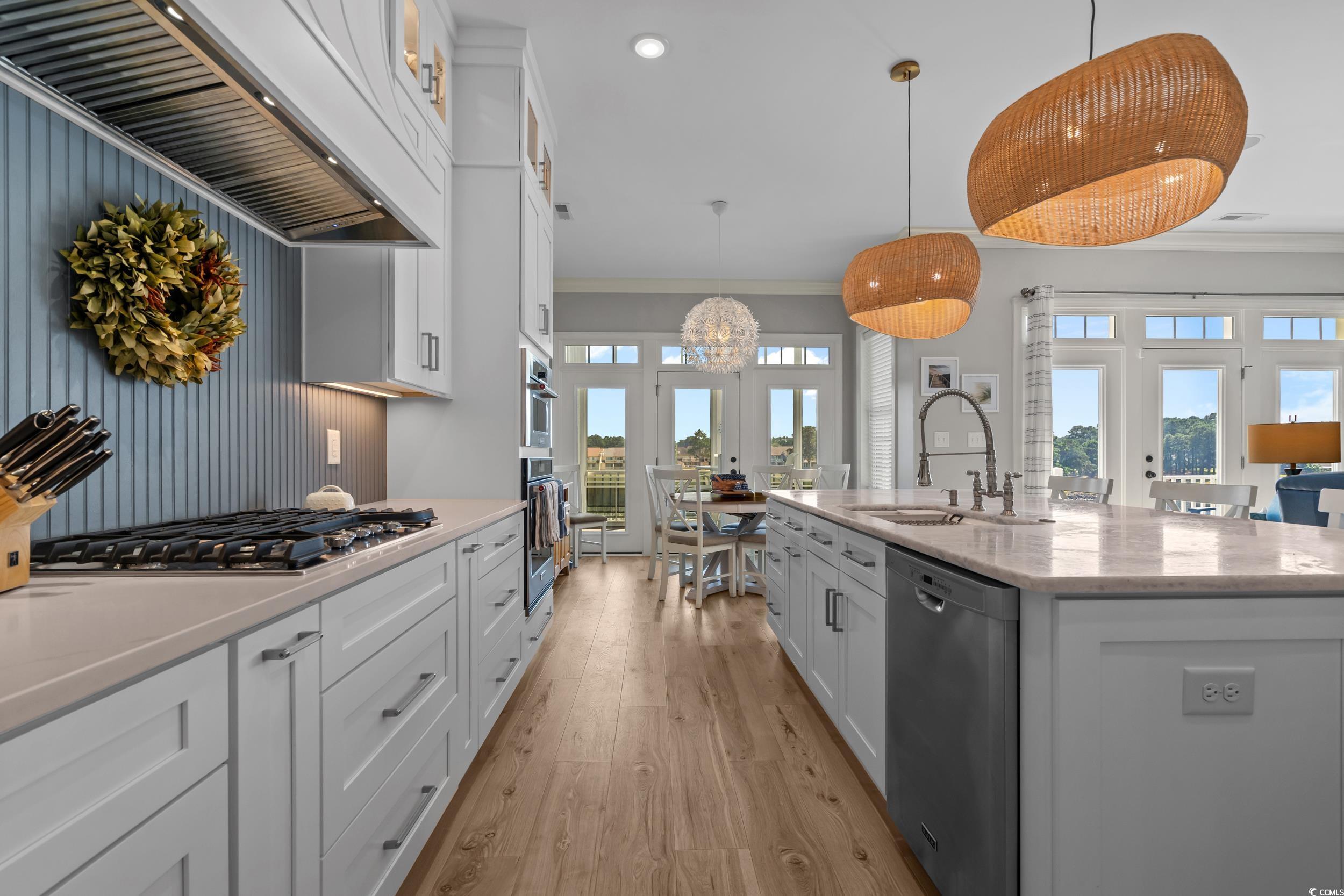 Discover waterfront luxury in this stunning 4-bedroom, 4-bathroom masterpiece nestled in the prestigious Waterway Palms community on the Intracoastal Waterway. This completely renovated home features a beautiful gourmet kitchen completed in July 2023 with premium KitchenAid appliances, stacked cabinetry, quartz and granite countertops, and a hidden butler's pantry with pot filler – perfect for both everyday living and entertaining. Luxury vinyl plank flooring flows seamlessly throughout the home, enhanced by soaring 9' to 10' ceilings and upgraded LED fixtures that create an open, airy atmosphere. Step outside to your private saltwater pool with cool deck and HVAC heater/cooler, ideal for year-round enjoyment. The newly constructed floating dock offers prime waterfront access with space for a future boat lift, making this a boater's dream. Premium features abound throughout this exceptional home, including a residential elevator for easy access between floors, built-in outdoor kitchen with Lion grill, Rinnai tankless water heater, spray foam insulation, and backup propane generator for peace of mind. The oversized 2.5-car garage includes a Tesla charger, while thoughtful touches like the direct vent propane fireplace with reclaimed railroad tie mantle, professional dog turf, and irrigation system complete this waterfront retreat. Experience the ultimate coastal lifestyle in this prestigious gated Intracoastal community featuring resort-style amenities including direct Intracoastal access, community pool, boat dock and ramp, tennis courts, and convenient access to hospitals, restaurants, Coastal Carolina Community College, and our lovely sandy beaches.