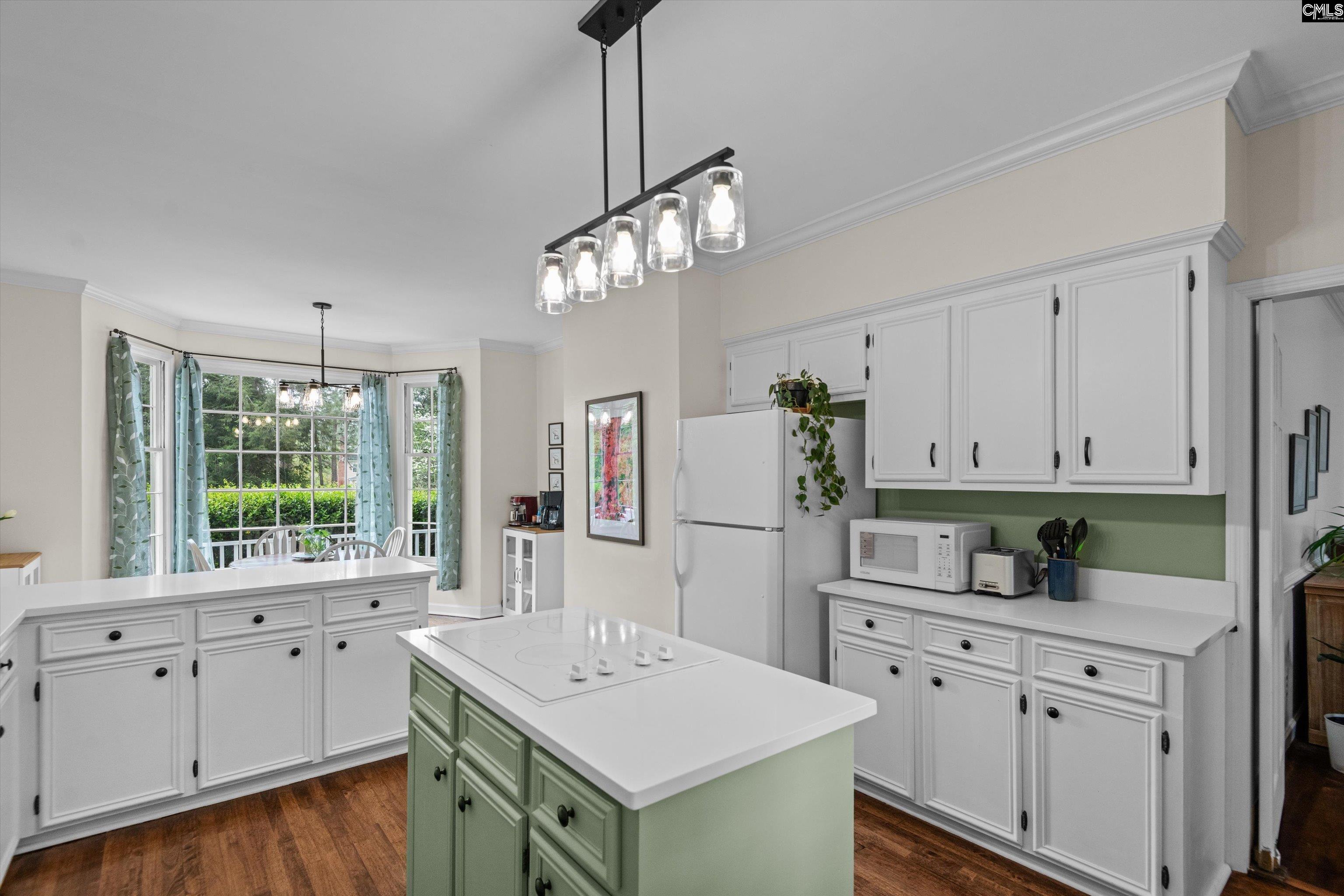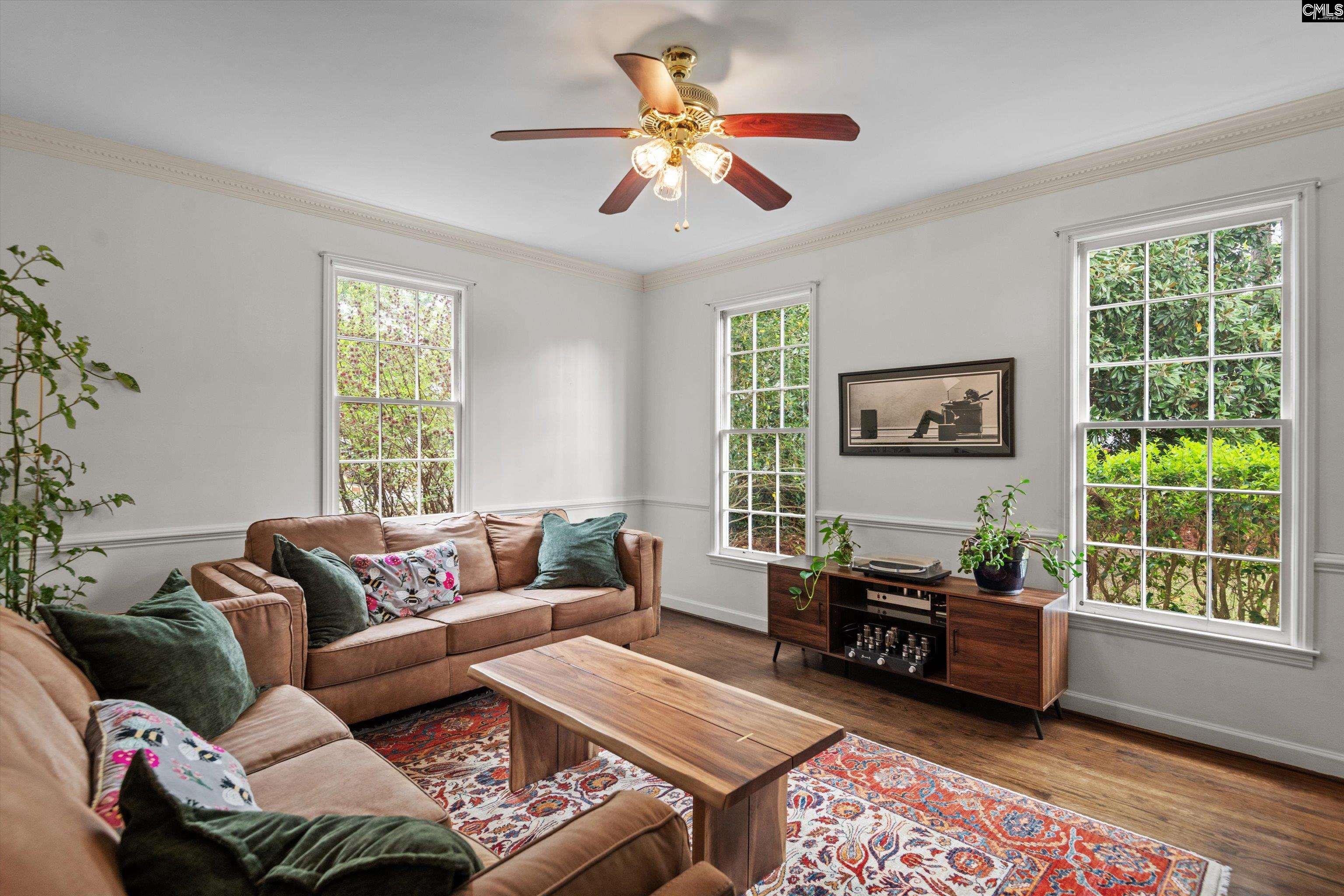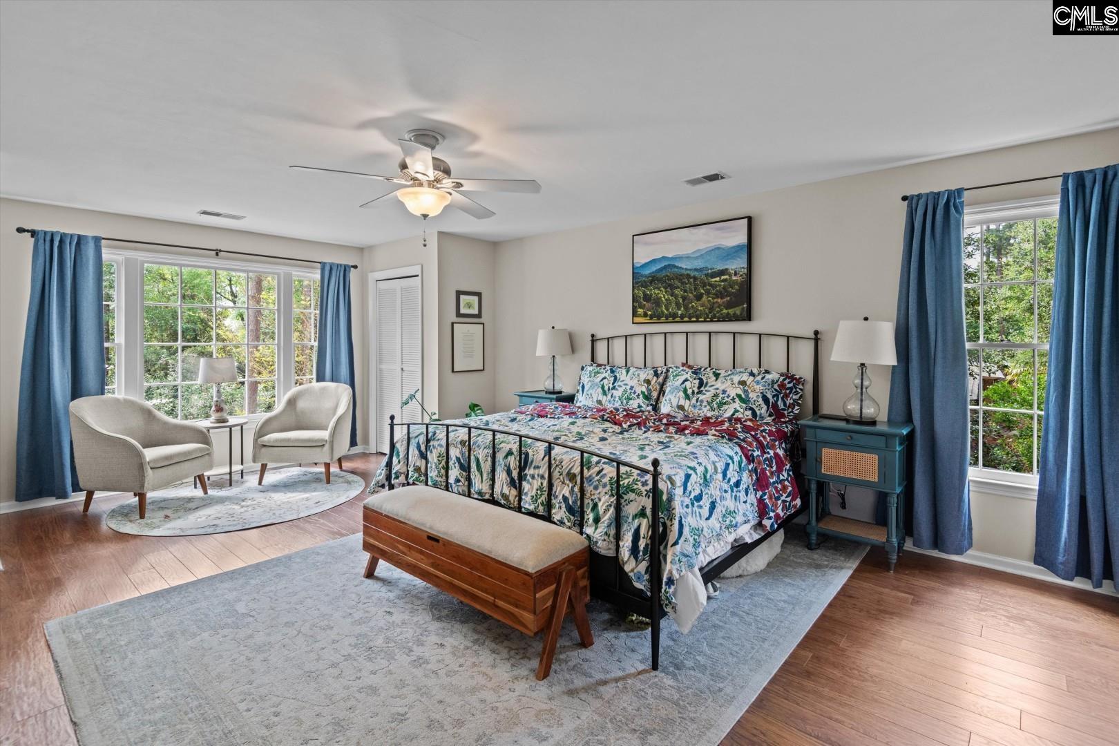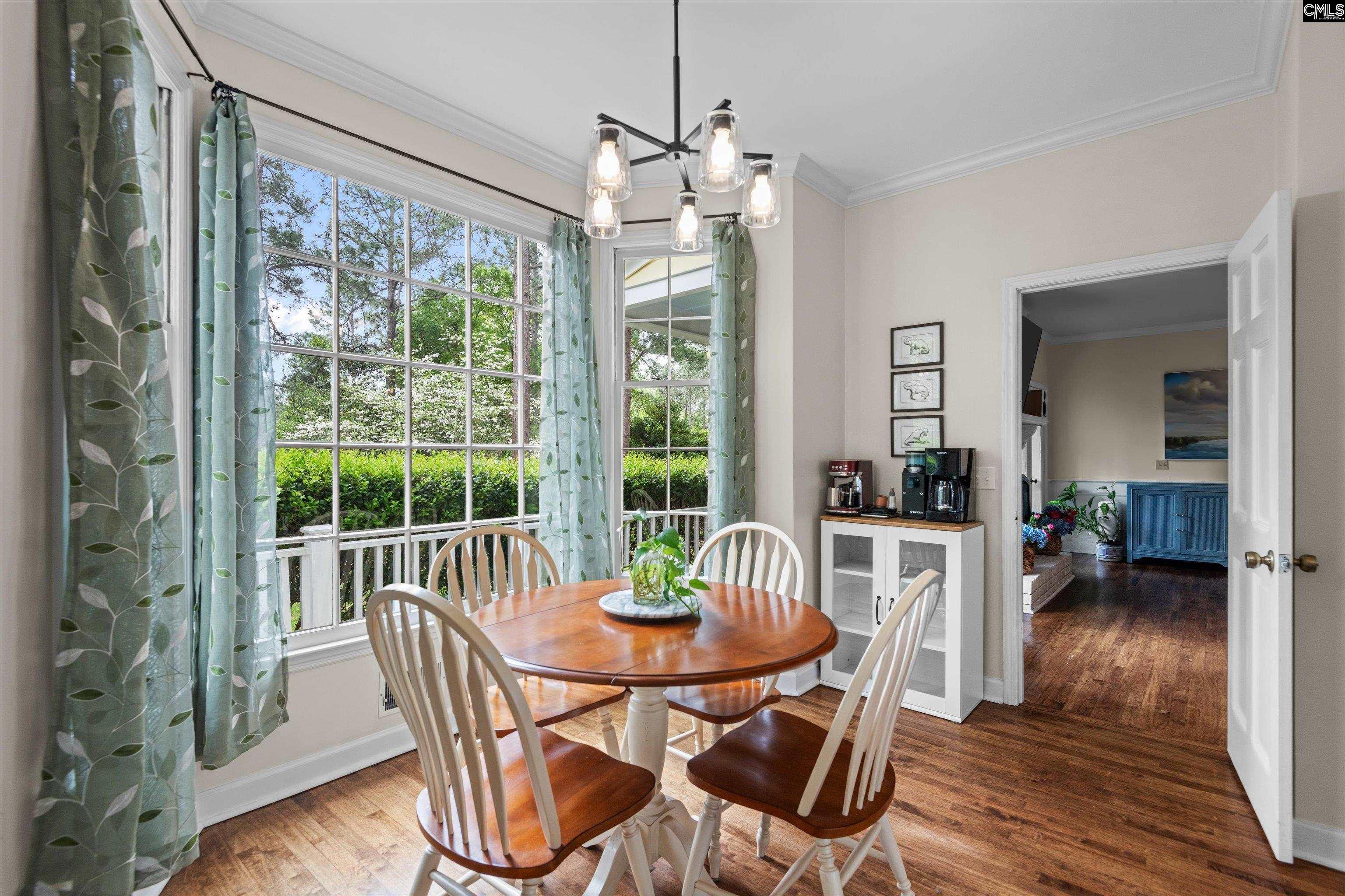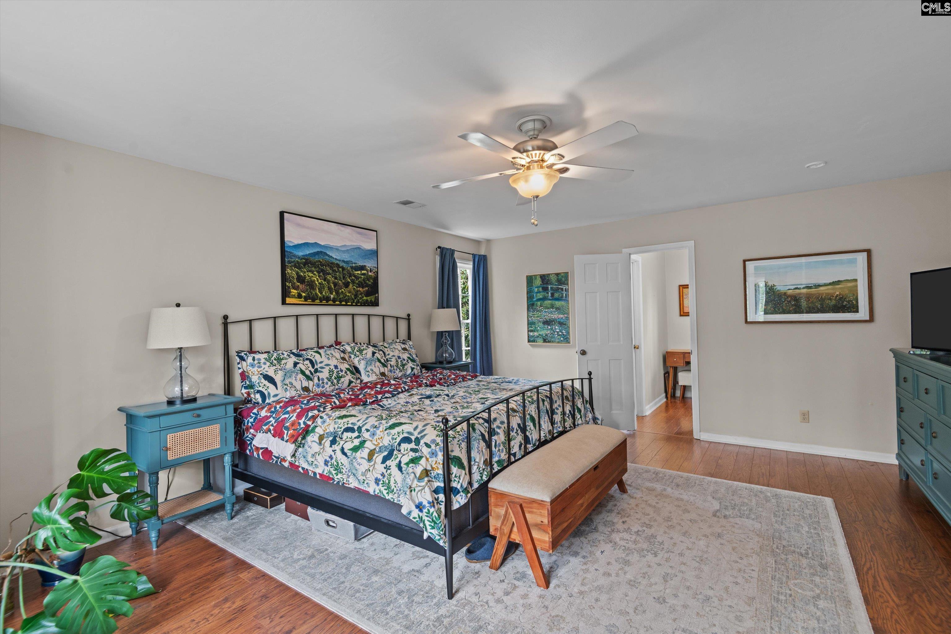 Welcome to this charming Cape Cod–style home on the WildeWood Golf Course, featuring 4 bedrooms and 3.5 baths on a beautifully landscaped 0.75-acre lot. Inside, the bright eat-in kitchen offers a bay window overlooking the fairway, white cabinetry, quartz countertops, an island with cooktop, double ovens, and ample storage. Recently refinished hardwood floors shine throughout the hall, kitchen, and living areas. The living room features a fireplace, wet bar, and French doors to the porch—ideal for entertaining. Formal dining and living rooms include hardwood floors and detailed molding. The main level includes a flexible bedroom with two closets, a full bath, and a half bath—perfect for guests or a home office. Upstairs, the large primary suite offers dual closets, a picture window, and a private bath with walk-in closet, double vanity, and updated shower. Two additional bedrooms and a shared bath complete the space. Off the back deck and screened in porch enjoy azaleas, dogwoods, hydrangeas, magnolias, camellias, plus blueberry and fig trees, all supported by front and rear irrigation. Relax on the spacious deck and covered porch with scenic golf course views. Extras include a 284 sq ft FROG, laundry room, side-entry 2-car garage, 2022 roof, two 2021 HVACs. WildeWood HOA offers pool, playground, and clubhouse; golf/tennis optional. Close to I-20, I-77, Fort Jackson, and shopping. Disclaimer: CMLS has not reviewed and, therefore, does not endorse vendors who may appear in listings.