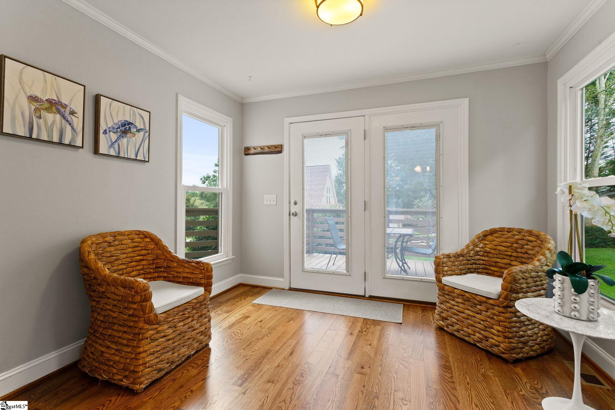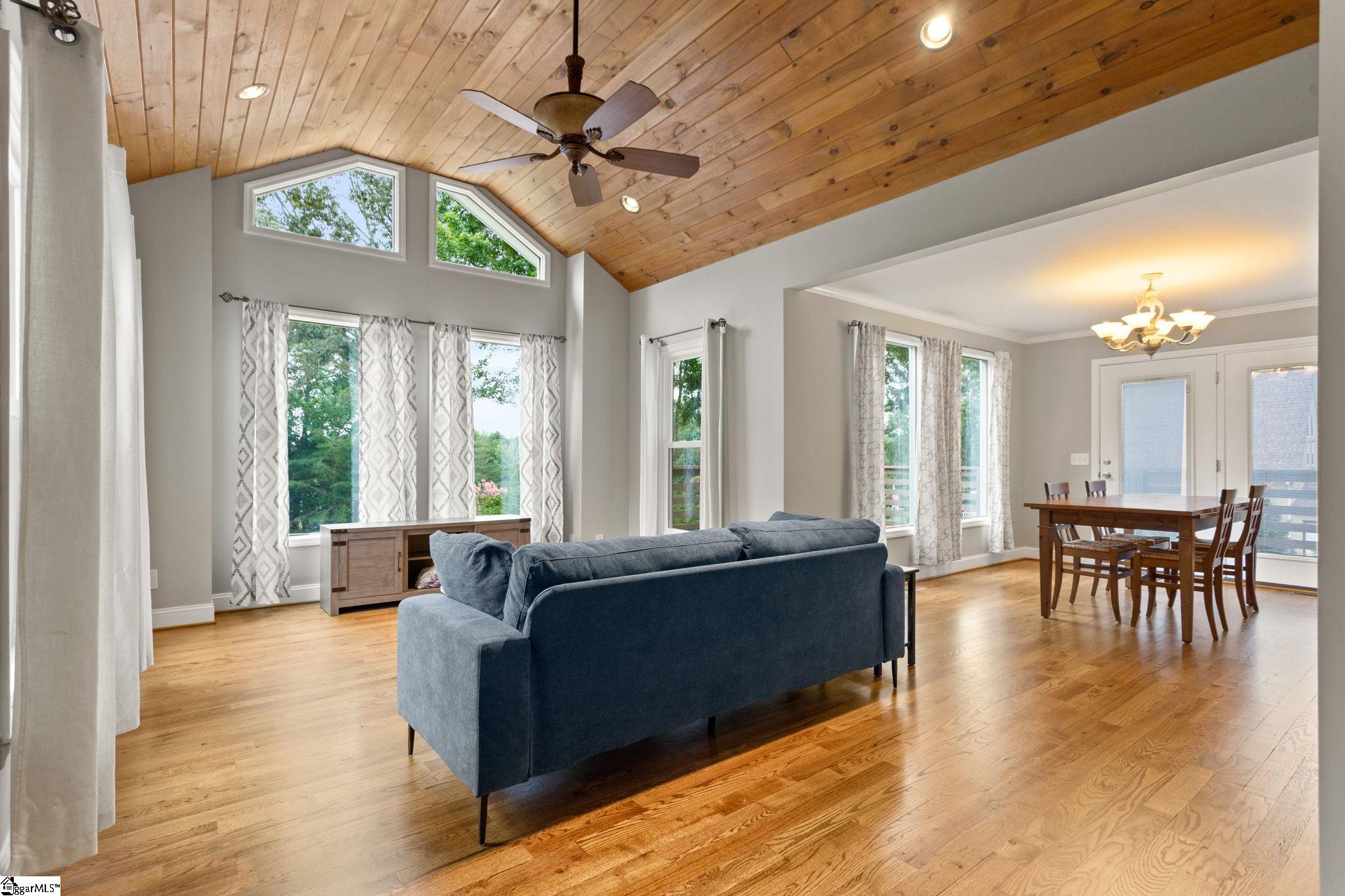 Tucked away on a quiet cul-de-sac in this established lakeside community, this beautifully updated home offers multiple living spaces designed for comfort, flexibility, and everyday enjoyment. Step inside and you’ll immediately notice the freshly refinished hardwood floors that flow throughout the main level, setting the tone for timeless charm and modern function. The inviting living room features a warm wood-plank ceiling and expansive picture windows that bathe the space in natural light, seamlessly opening to a spacious dining room—perfect for entertaining family and friends. The remodeled kitchen is a dream, offering abundant storage, granite countertops, stainless steel appliances, a walk-in pantry, and a sought-after window over the sink. Just off the kitchen, the sunroom makes an ideal spot for a home office, plant sanctuary, or cozy retreat. The breakfast nook flows into the great room where a wood-burning fireplace and large windows frame views of the lush, fenced backyard. Upstairs, the owner’s suite feels like a private getaway with its vaulted wood-beam ceiling, walk-in closet, large linen closet, and spacious ensuite bath. Two additional bedrooms and a full bathroom provide plenty of space for family or guests. The basement level adds even more versatility with an oversized garage and workshop area, a heated and cooled recreation room, and a generous storage room. A convenient yard door offers easy access to the backyard. Outdoor living shines here. Multiple decks provide space to relax overlooking the cul-de-sac or private backyard. Enjoy gathering with family and friends around the fire pit, and take advantage of the storage building that remains with the property—perfect for lawn equipment, tools, or outdoor furniture. The exterior of the home is cedar wood siding providing resistance to decay and insects. Located just 30 minutes from Greenville’s vibrant downtown and GSP International Airport, 20 minutes to charming Travelers Rest, and less than an hour from Asheville, NC, this home blends small-community living with easy access to city amenities. If you’ve been searching for a home with character, comfort, and convenience near beautiful Lake Robinson—this is the one. Schedule a private showing TODAY!