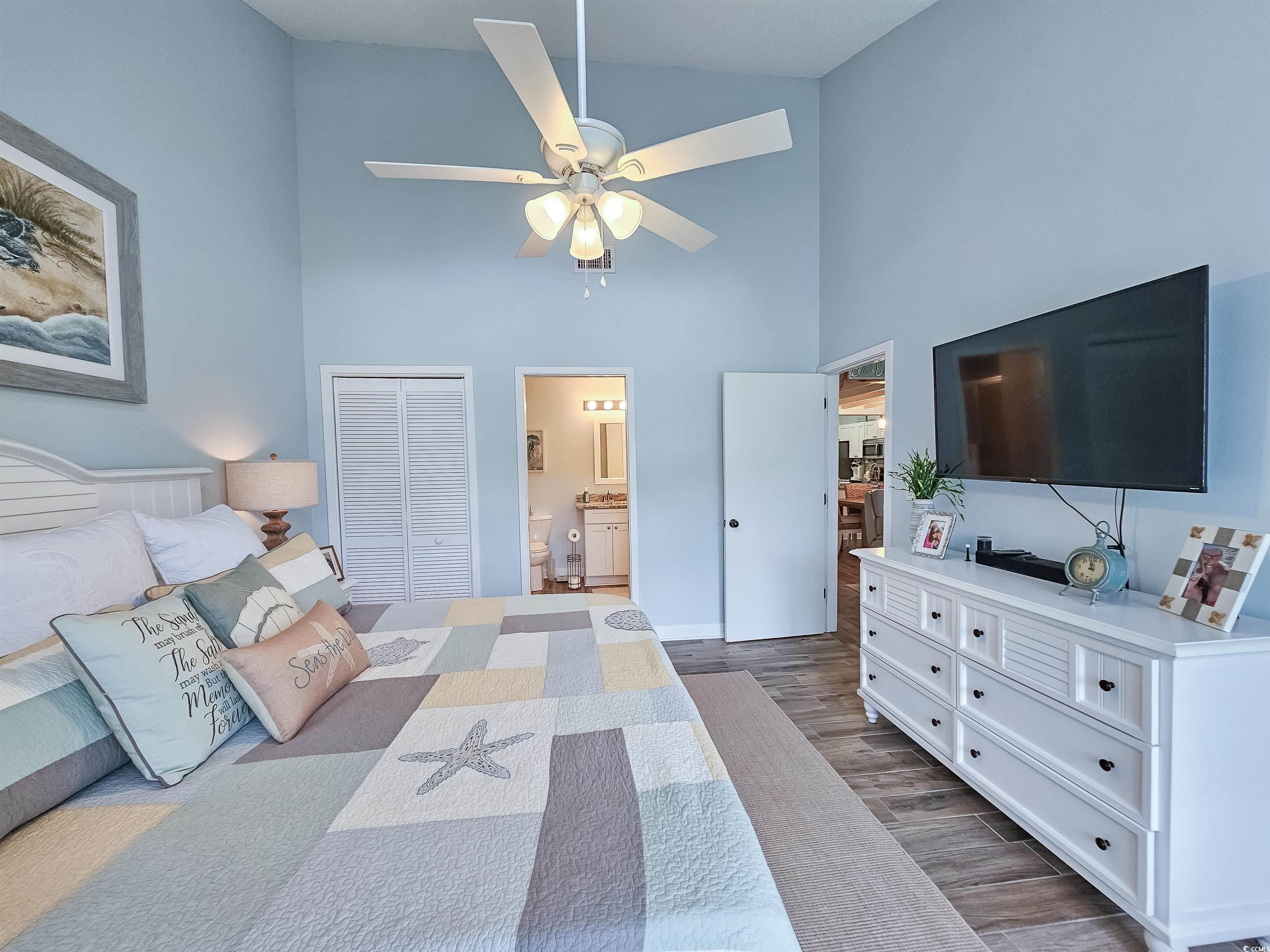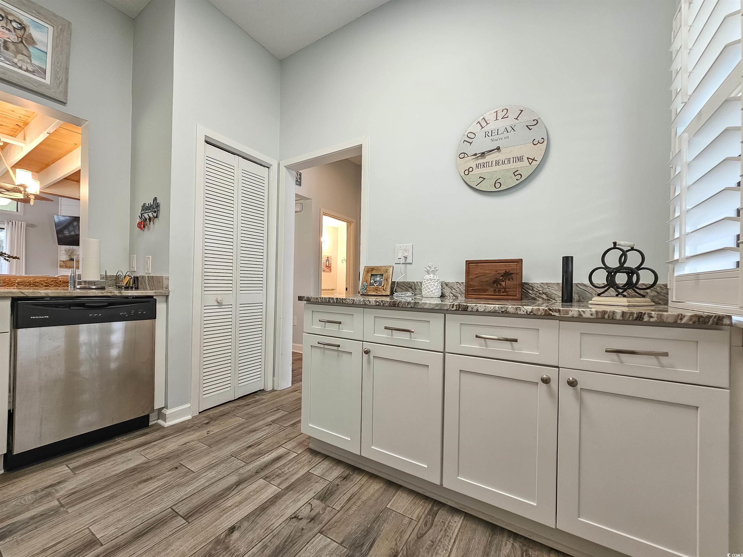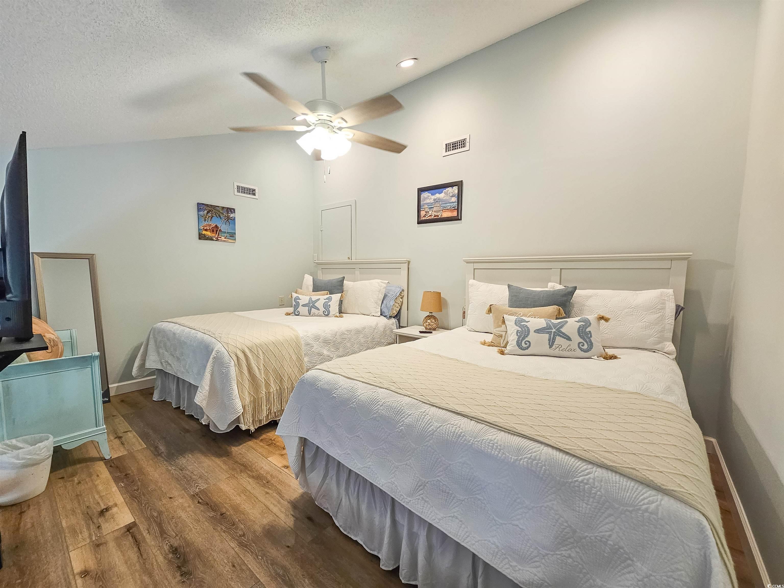 You will be amazed when you enter this classic, beautiful three-bedroom, two-bath beach home! Just minutes to the ocean with a private community pool in your backyard. Plantation shutters, LVP flooring throughout, vaulted and wood inlaid ceiling, fireplace, euro-styled gourmet kitchen with custom cabinets, solid surface countertop, and stainless steel appliances. Large primary suite with walk-in closet, whirlpool tub, double sinks, and custom cabinets in the bathroom. Split bedroom floor plan and exterior storage. Over 1,400 square feet and sold fully furnished. Large front porch and screened-in back porch - great for entertaining or just relaxing. A MUST SEE! Inside the Kingston Plantation, this 145-acre resort has it all - an oceanfront hotel, a new two-story brewhouse with indoor/outdoor dining, an optional fitness center and spa, 24-hour security, a gated community, and the list goes on. Perfect primary residence, second home or rental option. Some resort amenities are only available through the Hilton on-site rental program.