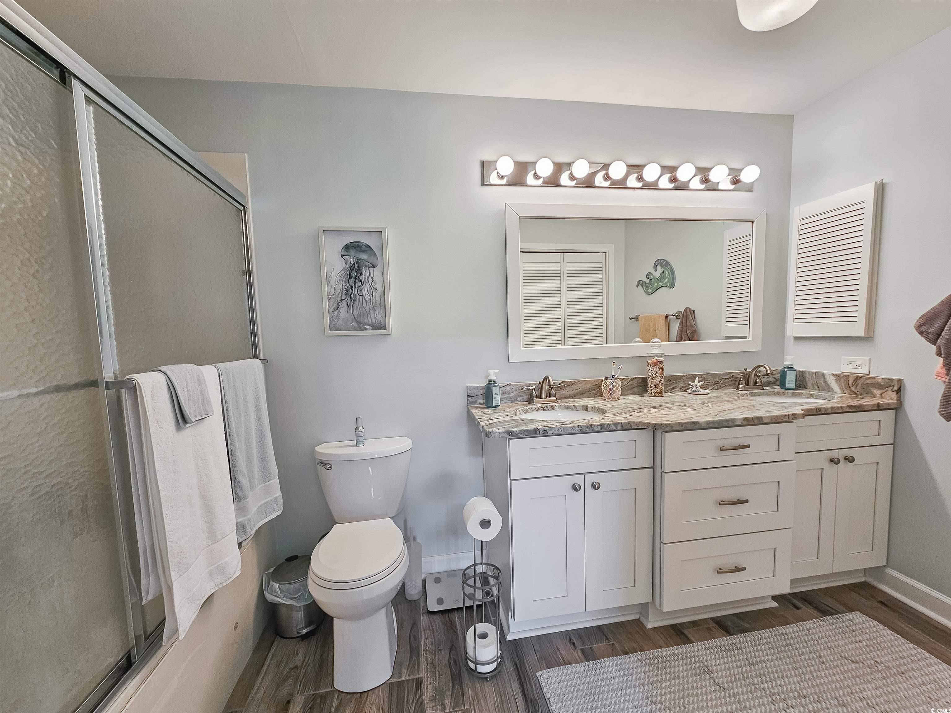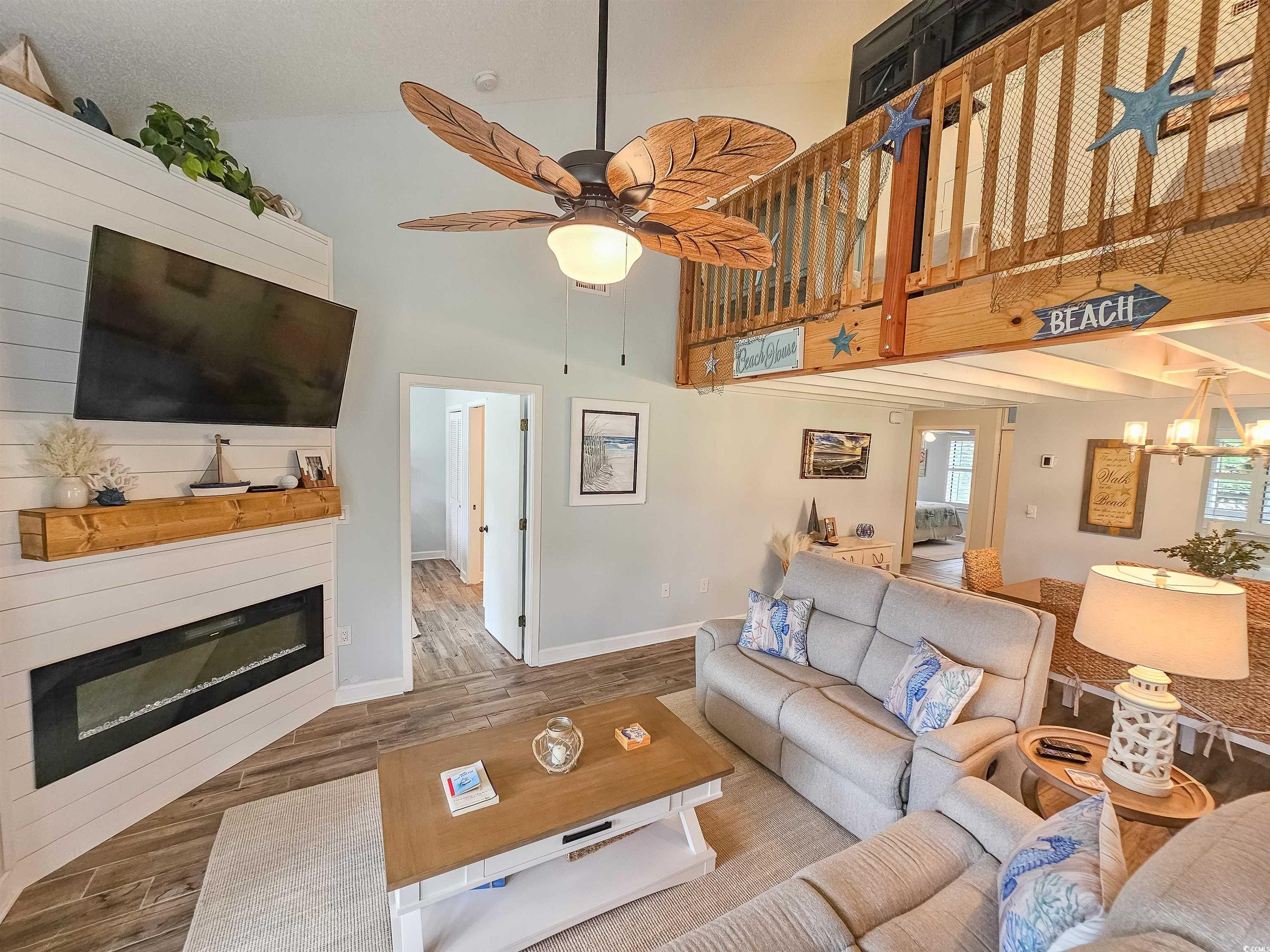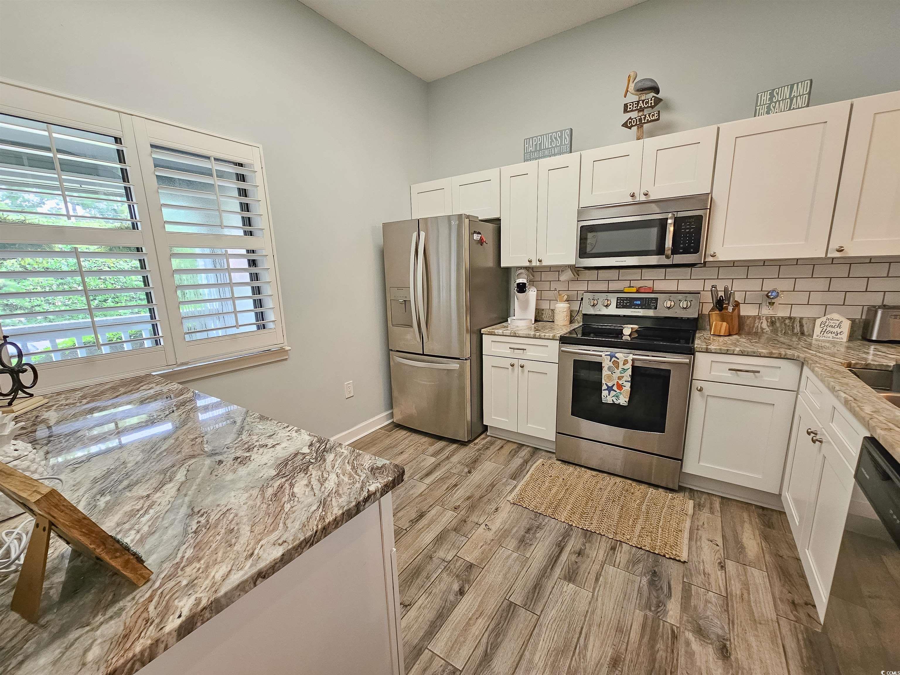 You will be amazed when you enter this classic, beautiful three-bedroom, two-bath beach home! Just minutes to the ocean with a private community pool in your backyard. Plantation shutters, LVP flooring throughout, vaulted and wood inlaid ceiling, fireplace, euro-styled gourmet kitchen with custom cabinets, solid surface countertop, and stainless steel appliances. Large primary suite with walk-in closet, whirlpool tub, double sinks, and custom cabinets in the bathroom. Split bedroom floor plan and exterior storage. Over 1,400 square feet and sold fully furnished. Large front porch and screened-in back porch - great for entertaining or just relaxing. A MUST SEE! Inside the Kingston Plantation, this 145-acre resort has it all - an oceanfront hotel, a new two-story brewhouse with indoor/outdoor dining, an optional fitness center and spa, 24-hour security, a gated community, and the list goes on. Perfect primary residence, second home or rental option. Some resort amenities are only available through the Hilton on-site rental program.