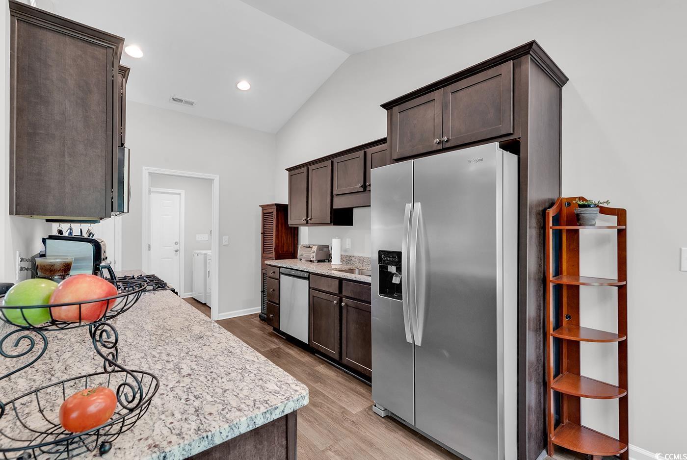 Welcome to 3230 Merganser Drive, Conway! Nestled in a beautiful and well-maintained development, this inviting residence offers the perfect blend of modern amenities, tasteful finishes, and everyday functionality. This property boasts 3 spacious bedrooms and 2 full bathrooms with contemporary fixtures and ample space. The open floor plan is designed for comfort and easy entertaining, featuring vaulted and trayed ceilings with 2 ceiling fans, and a decorative plant shelf that creates an airy, spacious ambiance. The kitchen features 36" profile cabinets adorned with elegant crown molding, granite countertops, stainless steel appliances (including a gas stove), and thoughtful storage. Step outside and you'll find a roomy screened porch with a ceiling fan and epoxy flooring--perfect for hosting or relaxing. A separate 10x14 patio is ideal for gatherings or outdoor dining. This home is also equipped with an energy-efficient, tankless hot water heater and a completely trimmed and painted garage with drop down ladder for storage access. The electronic garage door has remote openers. "Low E" windows and an upgraded insulation package ensure your comfort in every season. The landscaped and sodded yard adds to the property's curb appeal in a friendly, well-kept community. The Woodland Lakes community is conveniently located near shopping centers, medical offices and hospitals, restaurants, and more. It's located just minutes from historic downtown Conway, Coastal Carolina University, and Conway Medical Center. Don't miss the opportunity to make 3230 Merganser Drive your new address. Come and see for yourself!