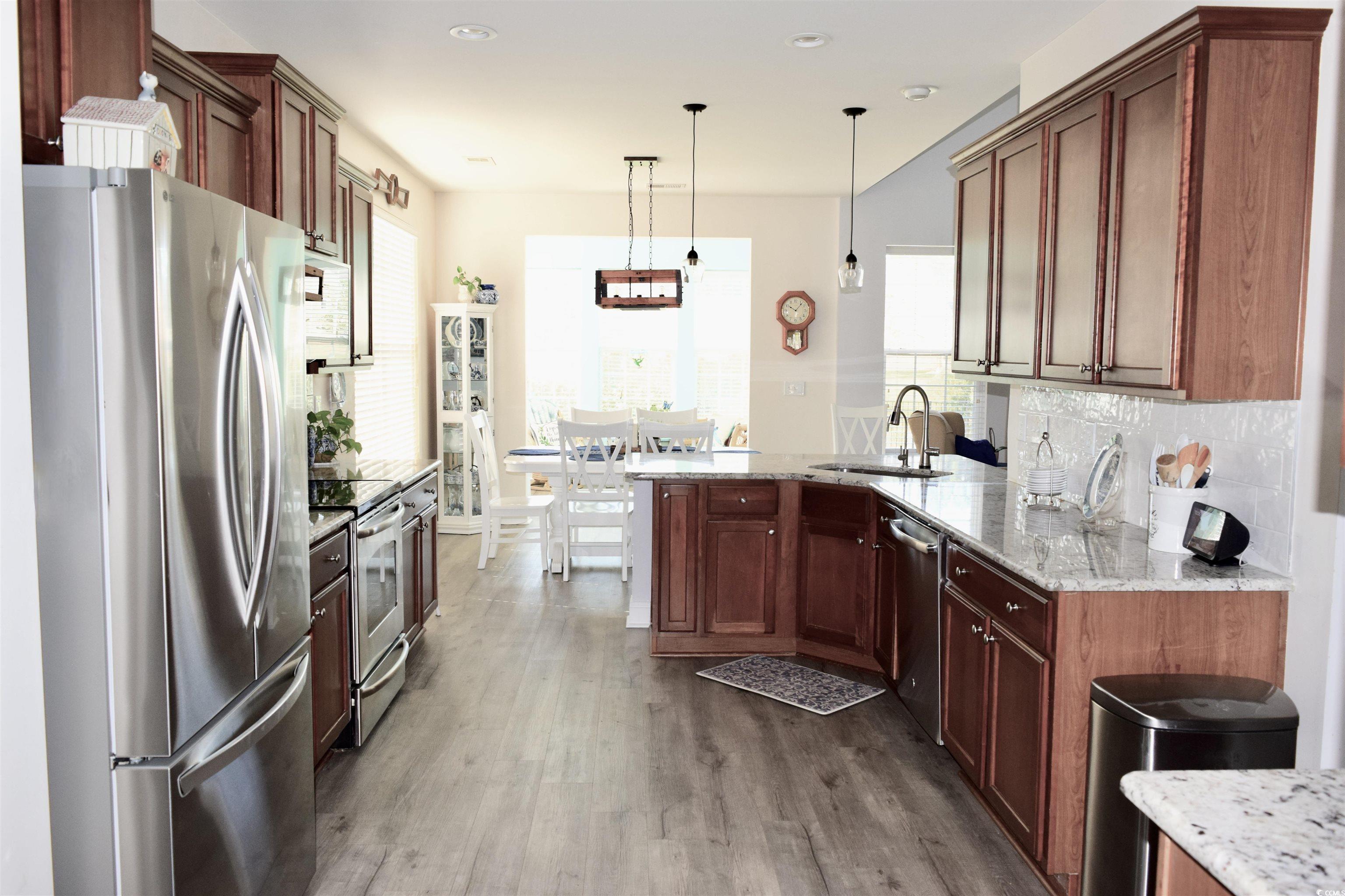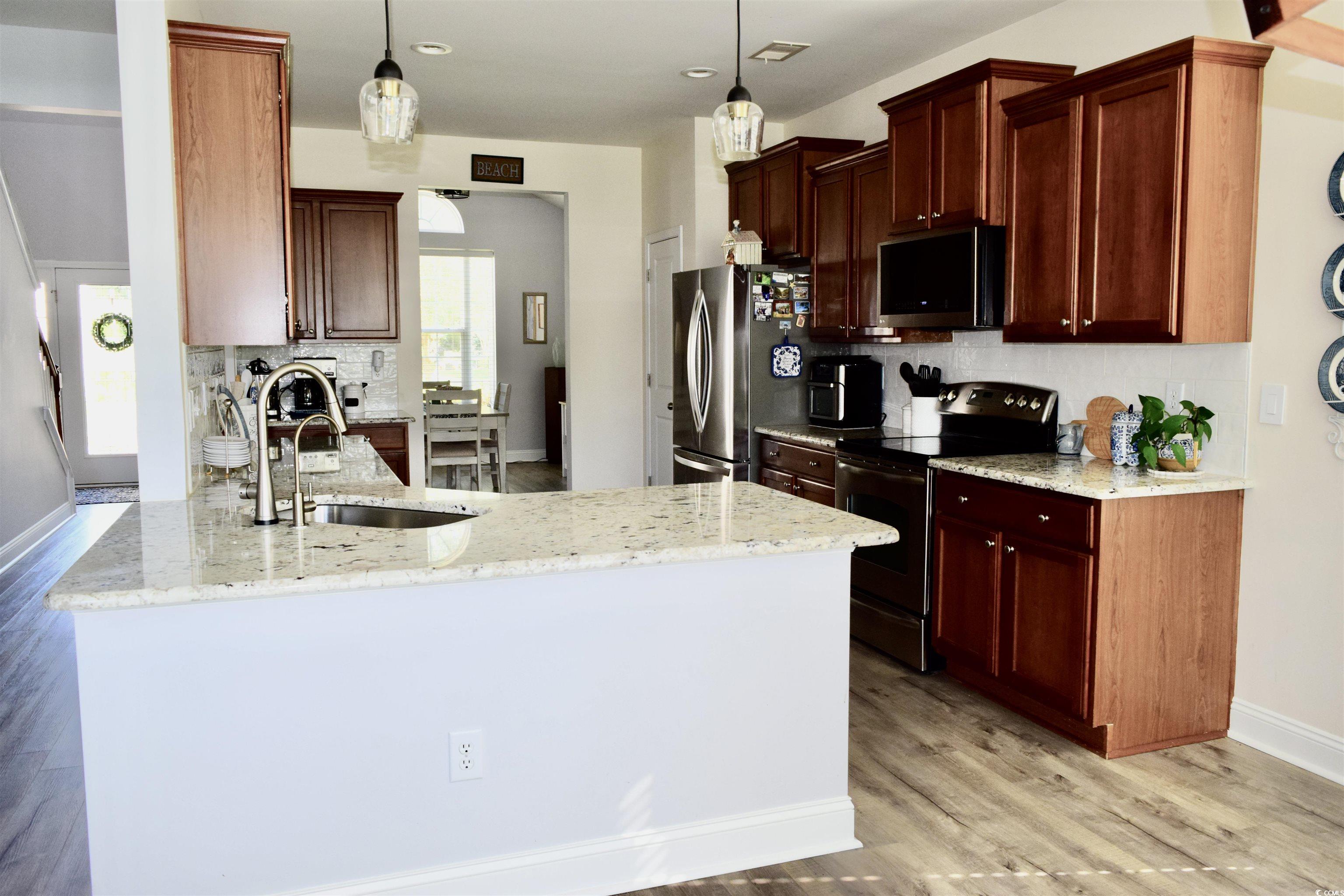 Immaculate 4-Bedroom, 2.5-Bath Water View Home in Murrells Inlet Welcome to the heart of Murrells Inlet, where coastal charm meets modern comfort. This beautifully maintained home is located in a highly sought-after community—just a quick golf cart ride to the beach, golf courses, waterfront dining, and all the laid-back lifestyle Murrells Inlet is famous for. From the moment you step inside, you’ll appreciate the open, spacious layout and thoughtful design throughout. The inviting living room features a cozy gas fireplace with a custom stone surround, creating the perfect gathering place for family and friends. Recent upgrades include brand-new LVP flooring and a roof that’s only one year old. The chef’s kitchen offers both style and function with abundant cabinetry and pull-out shelving, a pantry, reverse osmosis system, gorgeous granite countertops, and plenty of prep space. Enjoy everyday meals in the bright breakfast nook or host special occasions in the elegant formal dining room. One of the home’s true highlights is the Carolina room, where expansive windows showcase breathtaking water views and provide a peaceful spot to relax. The main-level owner’s suite is a private retreat, featuring a tray ceiling, oversized walk-in closet, and a luxurious en-suite bath with dual granite-top vanities, a free-standing soaking tub, and a separate shower. Modern upgrades include NEST smart thermostats and smart switches for ultimate convenience. Upstairs, a spacious loft offers additional living space along with three generously sized guest bedrooms and a full bath with granite-top vanity and tub/shower combo. The two-car garage is finished with epoxy floors and built-in cabinetry, combining both style and functionality. Step outside to your own backyard oasis—complete with a fenced yard, extended patio, charming gazebo, and tranquil pond views. It’s the perfect setting for outdoor entertaining or simply enjoying the coastal breeze. This immaculate home truly embodies Murrells Inlet living: coastal style, modern upgrades, and a serene water view setting. Priced to sell and move-in ready—don’t miss your chance to call this beach-style retreat home!