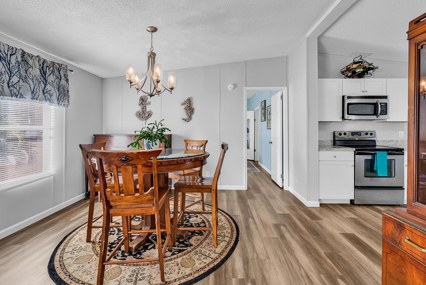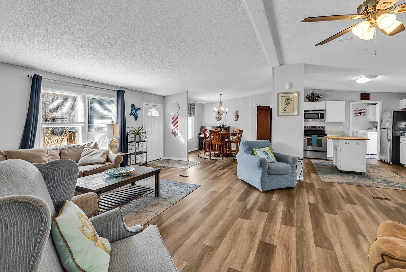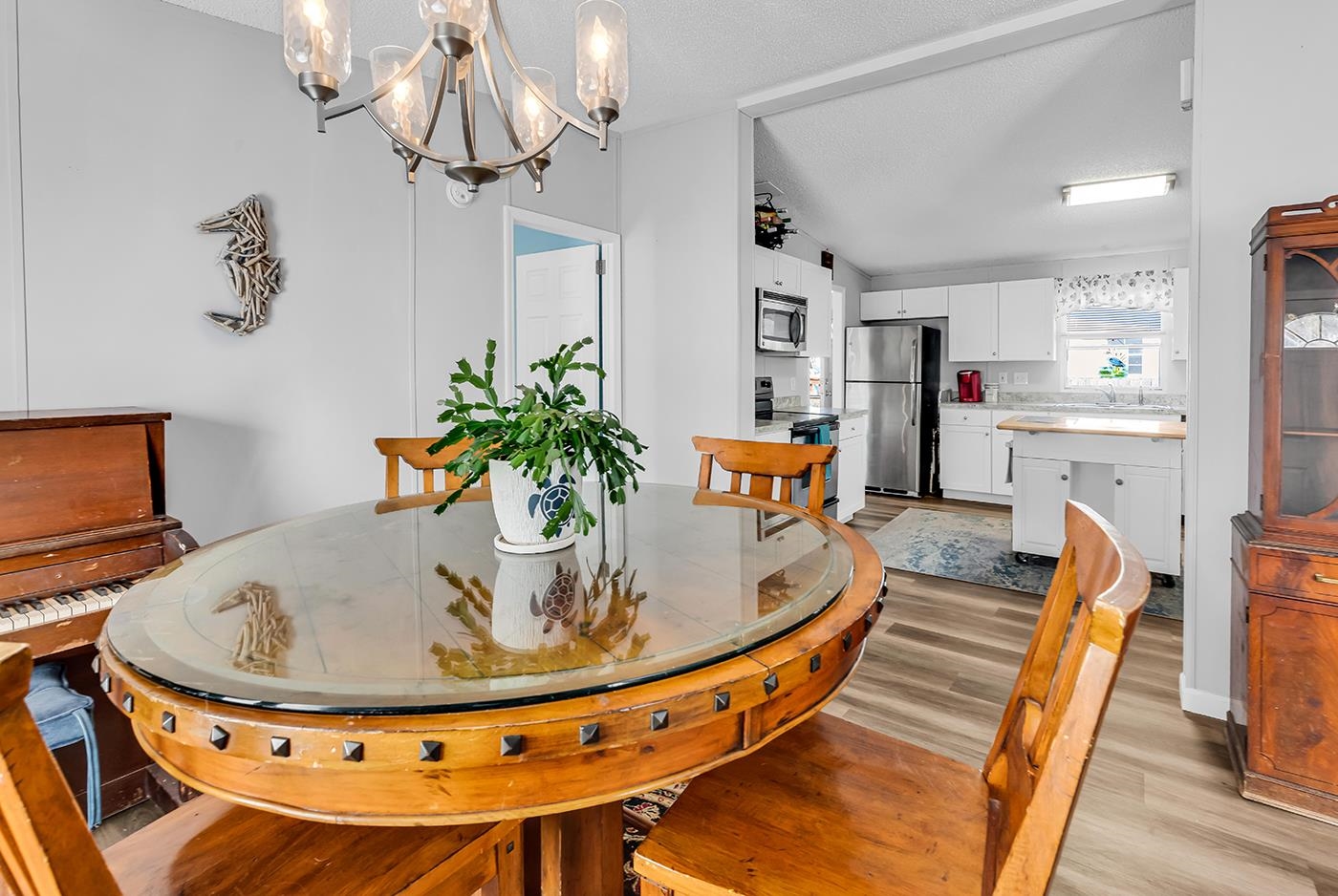 Don't miss this rare opportunity! This beautiful 4 bedroom, 2 bathroom home sits on a spacious, fenced lot in the no HOA community of Coastal Pines. Entering the home, you will love the open concept living room, kitchen and dining area featuring neutral paint, LVP flooring throughout, and plenty of space to gather. The kitchen boasts stainless steel appliances and white cabinetry, leading to the large laundry area. The home offers a split floor plan, with the primary suite offering a walk in closet and beautifully updated bathroom. Three more large bedrooms and a full bathroom are found on the other side of the home. Enjoy coffee from the front porch, or an evening cocktail on the back deck overlooking the fenced backyard. Don't worry about storage, the shed conveys with the home! The roof, HVAC, and hot water heater were all replaced in 2023 making this home worry free! Coveniently located off Holmestown Road, close to some of the area's best beaches, dining, shopping and the award winning St. James School District, this home will not last. Take the 3D tour, and schedule your showing today!