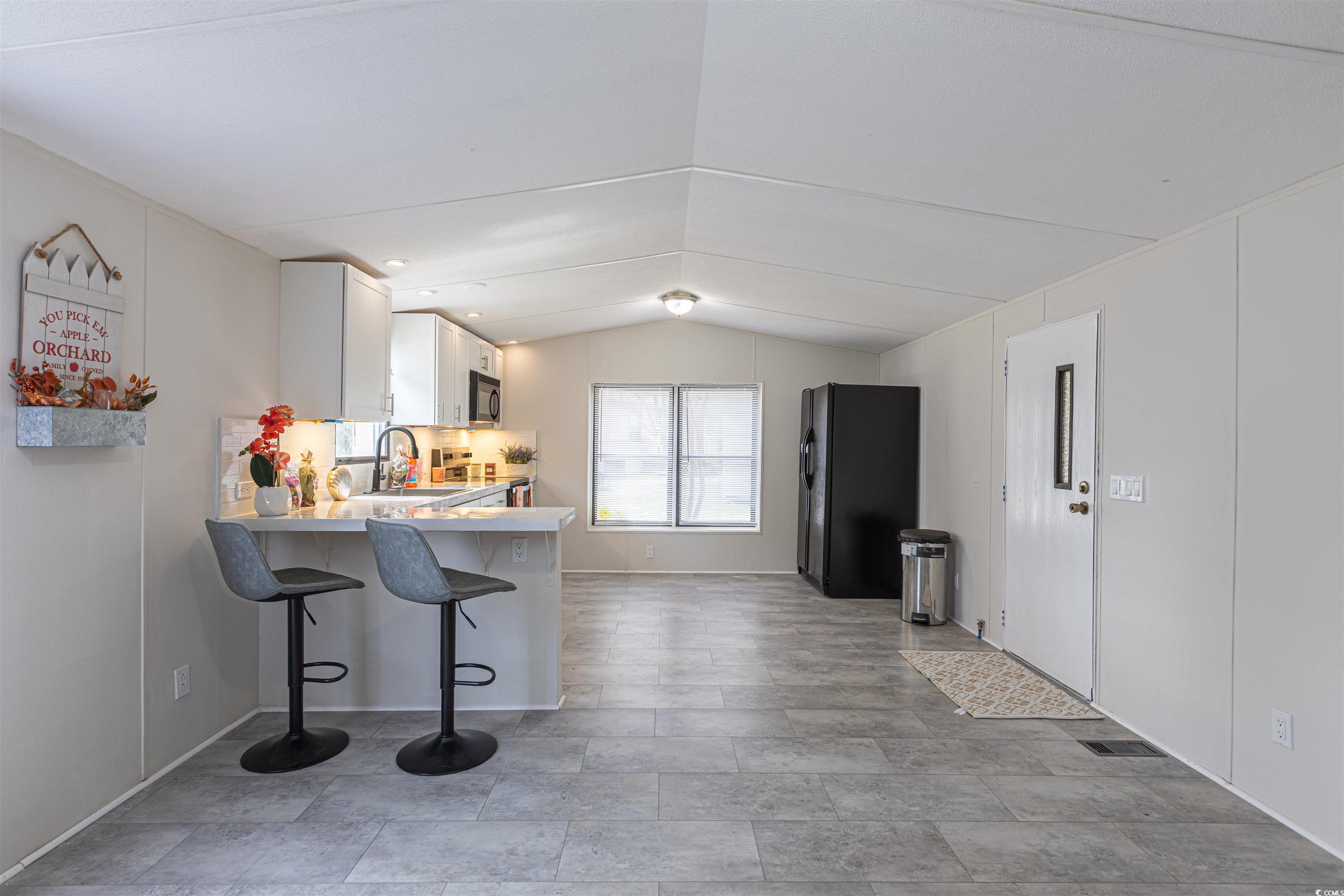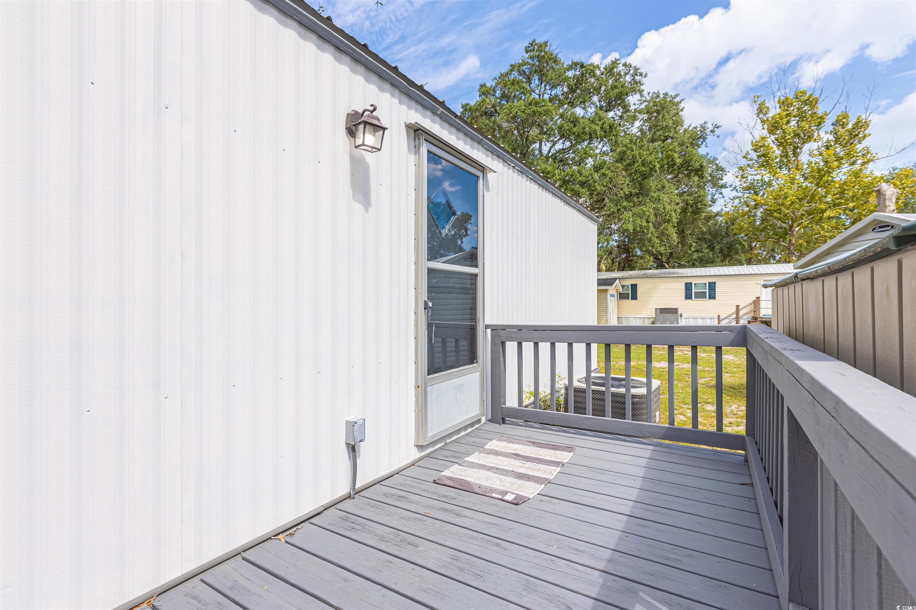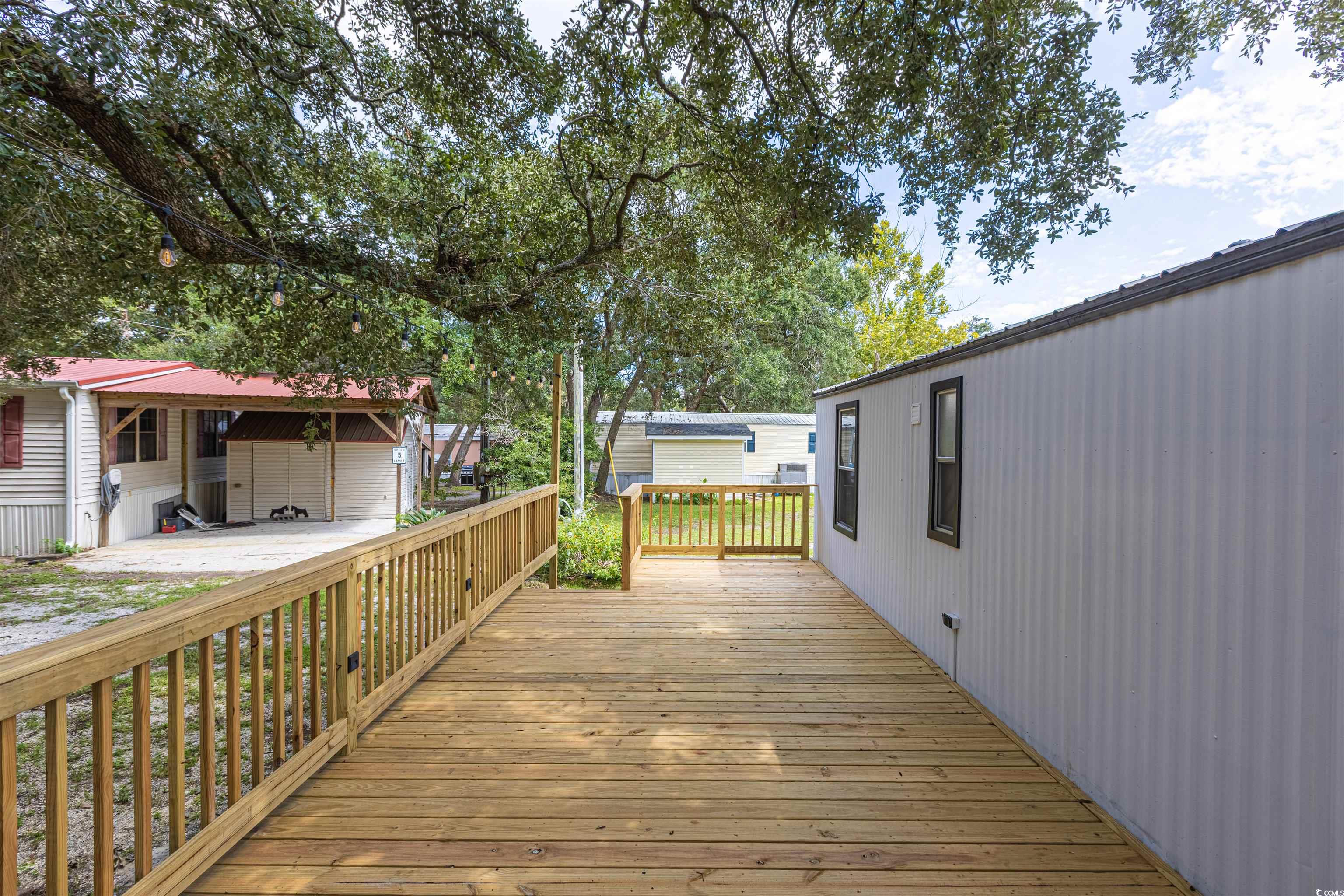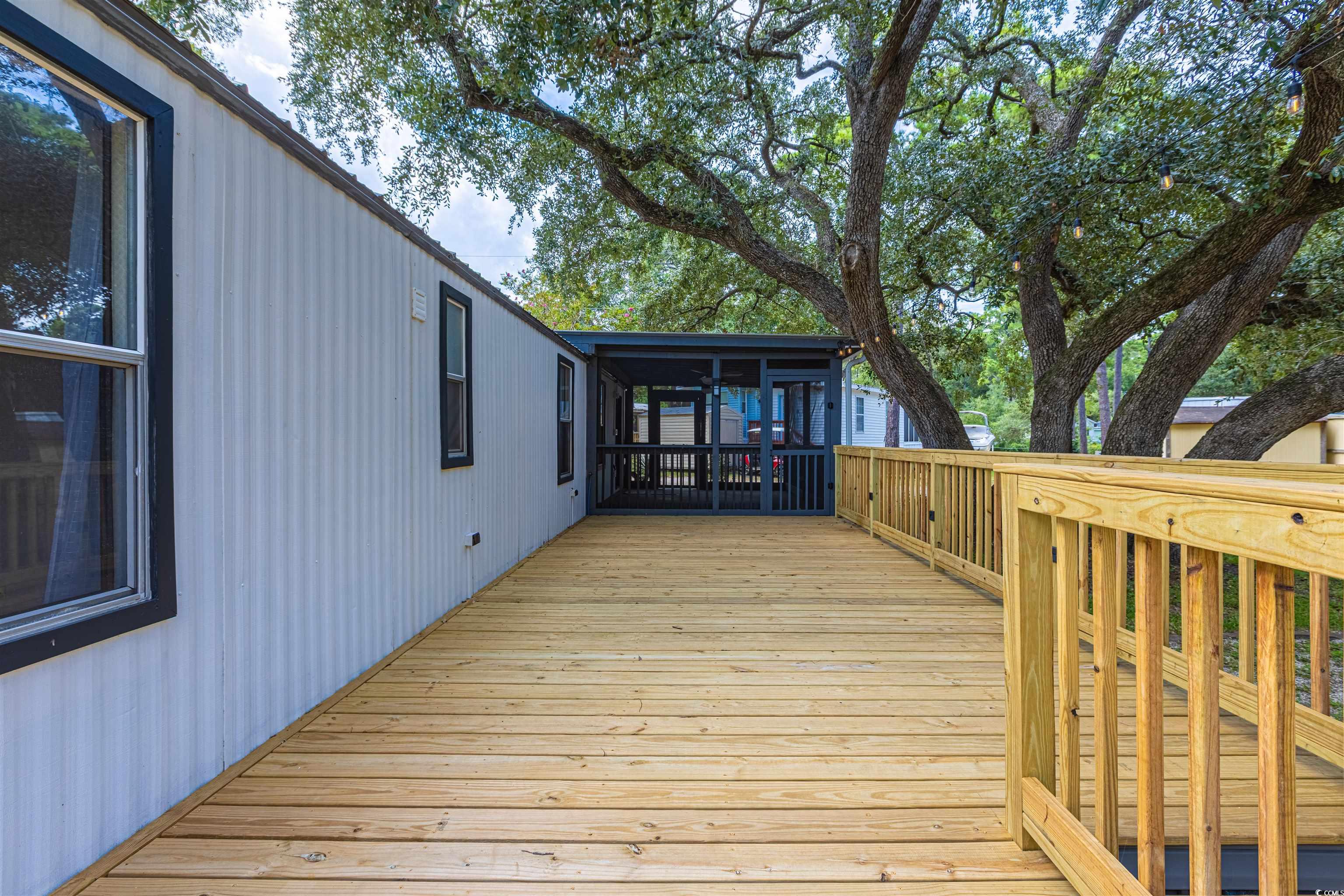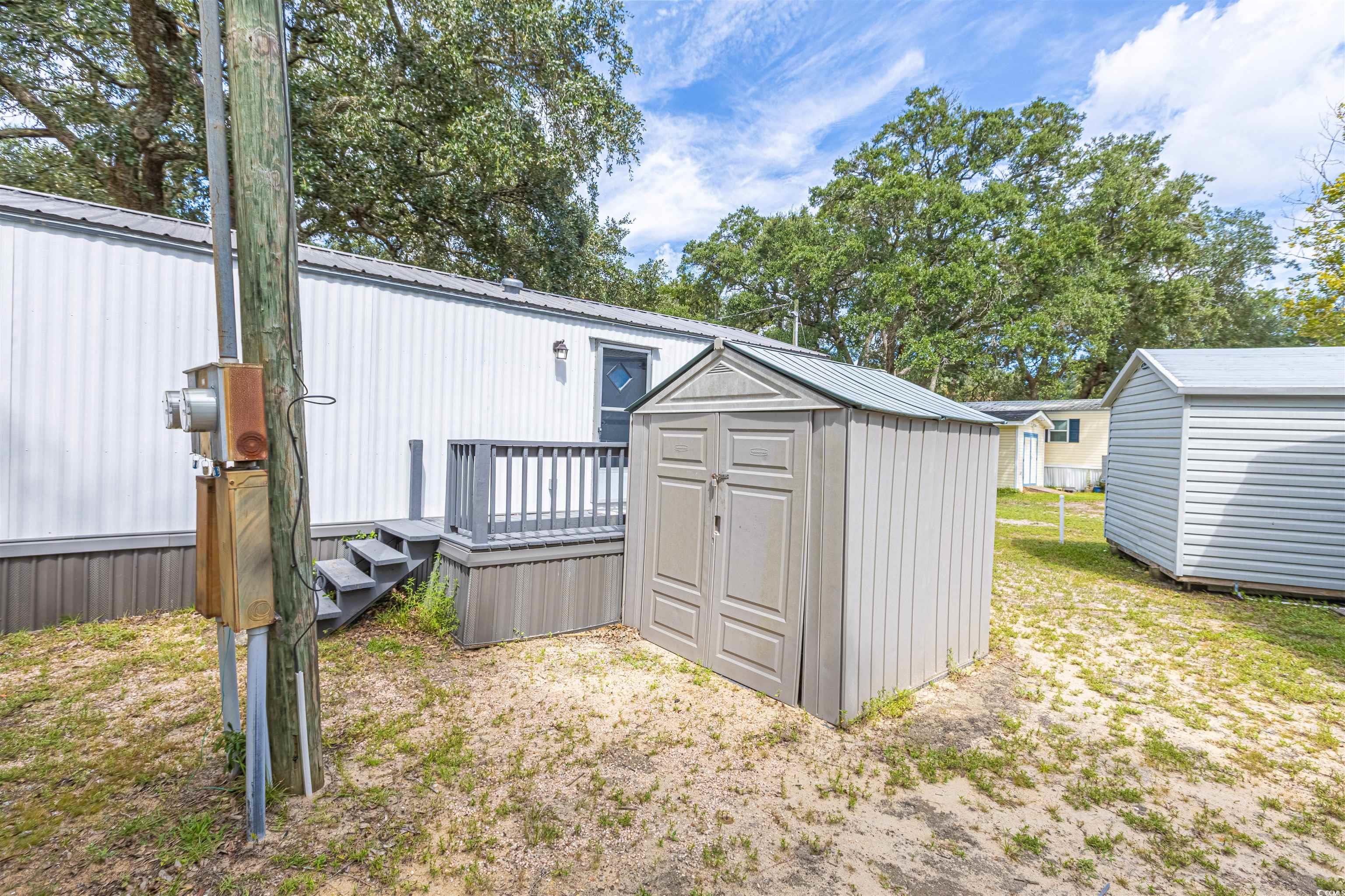 Partial Owner Financing Available. Owner is open to creative ideas. One of the photo is staged to show decorative idea. Picture says vurtual staging". Lets get you moved into this charming beach cottage! Lets make a deal! Beautiful renovated beach home with privacy, a rare situation. Neighbors are like 100 feet from your huge screened porch and deck.. 4 minutes walk to the Waterford Oaks waterfront community pier and gazebo. 6 minutes walk to the Atlantic Avenue fishing bridge with views of the Marsh. 12 minutes walk or 4 min bike/golf cart/car ride to the Ocean! The home includes an area to store a few golf carts, or use some of the property for your free personal boat storage. Waterford Oaks also includes free access to the community ramp to launch your boat. 12 foot x 16 foot screened porch, a 12 foot x 29 foot outdoor main deck and a small side deck of 7'x10' for relaxing, socializing and barbecue. 728 square foot home with 560 square foot of outdoor living space! One of the largest outdoor decks in the area. Space for a big outdoor table, multiple seating areas and a barbecue space with ocean breezes. The home is bright inside. Free standing shed for your yard supplies. A totally refreshed home near the beach! Great, bright kitchen for those who love to cook and entertain! Dimmer lights and undercounter lights. Three seat breakfast bar to socialize while cooking. Lots of kitchen storage. Over-range microwave that exhausts directly to the outdoors for a fresh home. Nice counter space, plenty of outlets for counter appliances and charging phones. Garbage disposal. Spacious bathroom with adorable furniture. Very large walk in shower with elegant wall tile and hexagonal marble floor. Large vanity storage and large free standing storage. Cute free standing linen cabinet in the hallway. Six different evening light levels from low elegant, to cafe lights over the deck for entertaining. Your own private park bench under the trees! Accommodates 7 to 8 cars for yourself and visitors. Carport. Shed. Roof was replaced and is in very good/excellent condition. AC coil replaced 2025, cools house very quickly. New bathroom exhaust fan. The best part is that you will be living under the partial shade of the most spectacular Live Oak trees in Garden City area! The deck feels like a tree house, with bird noises all around, squirrels and occasional geese walking by. For those who love outdoor serenity and a quick walk or bike ride to the beach, this is it! Option price to add a 2nd bathroom making it a 2br/2ba. Option price for large hot/cold outdoor shower. Base cabinets can convert to dishwasher slot if needed. Deck Painting is included in price, your choice of color. Move in special going on now. Lease may be able to be paid monthly for the 1st year!