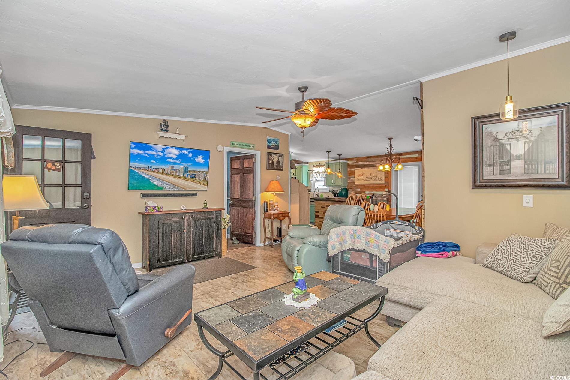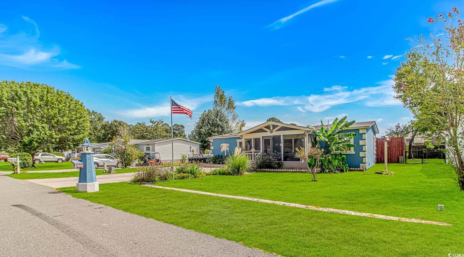Welcome to your dream coastal retreat, located just 7 minutes from Cherry Grove and North Myrtle Beach. This beautifully updated 3-bedroom, 2-bathroom manufactured home offers the perfect blend of modern comfort, beachside convenience, and affordable living. Key Features & Updates: • New Roof (2025) • New Ductwork (2025) | HVAC (2019) • Massive 8-Foot Privacy Fence (2025) • Newly Refinished Rear Deck (2025) – Hot Tub Ready • Painted Stucco Exterior in Coastal Blue (2025) • Freshly Painted Concrete Driveway – Parking for 4 Vehicles • Two Sheds Convey – One Garage-Style with electricity. Step inside to a spacious, open-concept living area featuring Pergo flooring, vaulted ceilings, and a neutral color palette perfect for any décor style. The large primary suite includes dual closets (one is a walk-in), a ceiling fan, and an oversized en-suite bathroom with double vanities, a walk-in shower, and a large additional closet for storage. The kitchen is a true highlight of the home, offering custom concrete countertops sealed with food-grade epoxy, stainless steel appliances, plenty of cabinetry, LVP flooring, recessed lighting, and a ceiling fan for extra comfort. Just off the kitchen is the laundry room with tile flooring, a ceiling fan, and ample utility space. The two additional bedrooms are located down the hallway, each with its own closet, ceiling fan, and updated flooring (Pergo and laminate). A full guest bathroom features a shower/tub combo with a rainfall shower head and updated countertops. Enjoy two separate screened-in porches—an elevated front porch with a ceiling fan and outdoor carpet, and a spacious back porch with epoxy flooring and a mounted TV. The back porch leads directly to the fully screened-in backyard, enclosed with an 8-foot privacy fence—perfect for pets, entertaining, or relaxing in total privacy. The backyard also includes two storage sheds—one standard, and one garage-style with electricity already installed. There’s even room for a hot tub, and the above-ground pool can convey with the sale. Additional features include an extended drive way off the side of the house, a single-car garage with power, and a concrete driveway with space for up to four vehicles. Location, Location, Location: Situated in peaceful Little River, SC, this home offers convenient access to shopping, restaurants, golf courses, the Intracoastal Waterway, and some of the most beautiful beaches along the Grand Strand. Whether you’re heading to North Myrtle Beach for a day in the sun or enjoying the laid-back charm of Little River, you’re in the perfect spot. This home is ideal as a primary residence, beach getaway, or investment property. With extensive updates already completed and no HOA restrictions, this move-in-ready gem won’t last long. Schedule your private showing today!