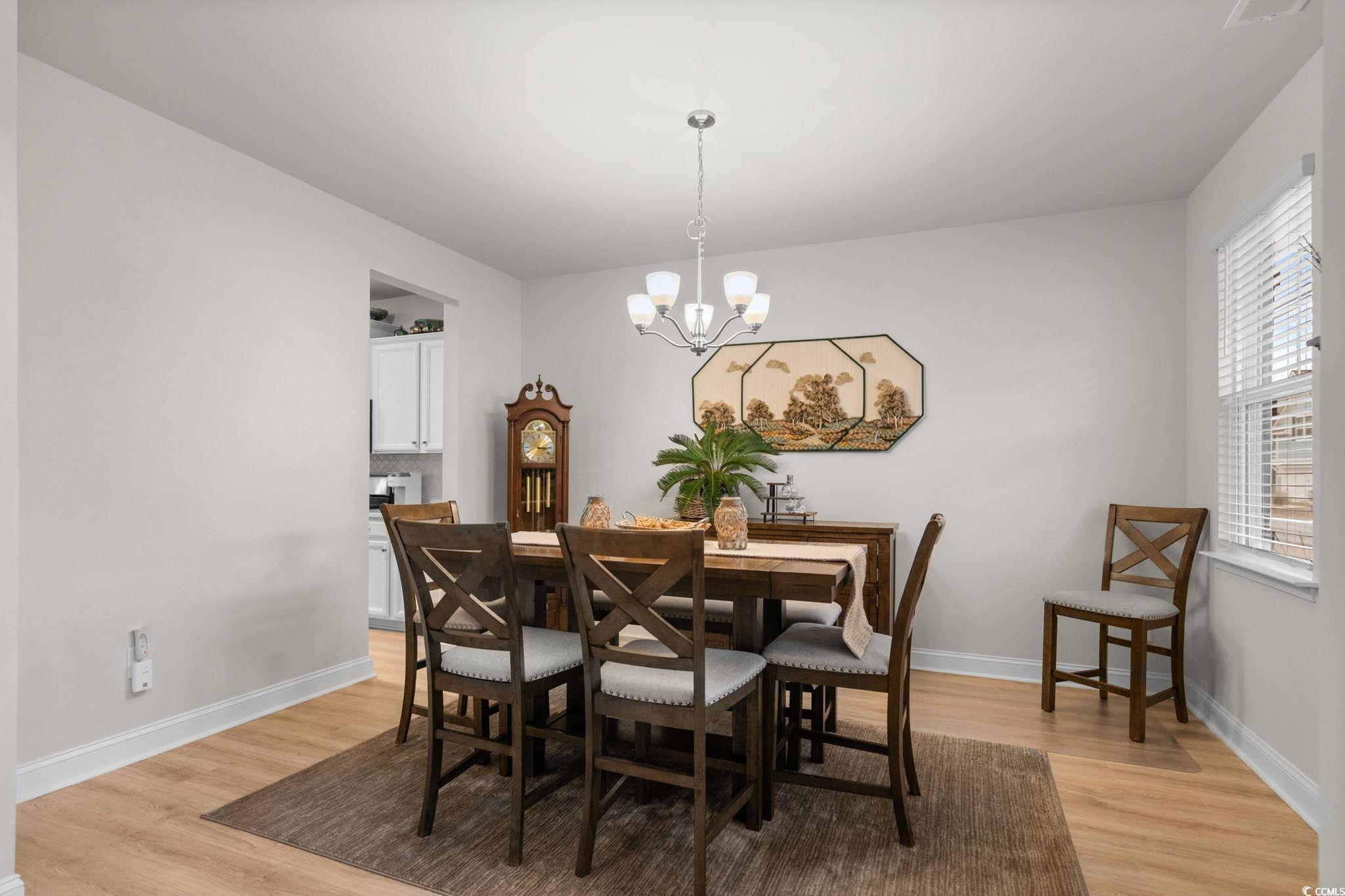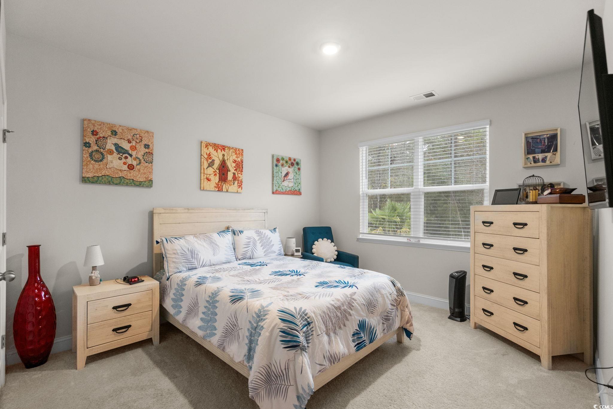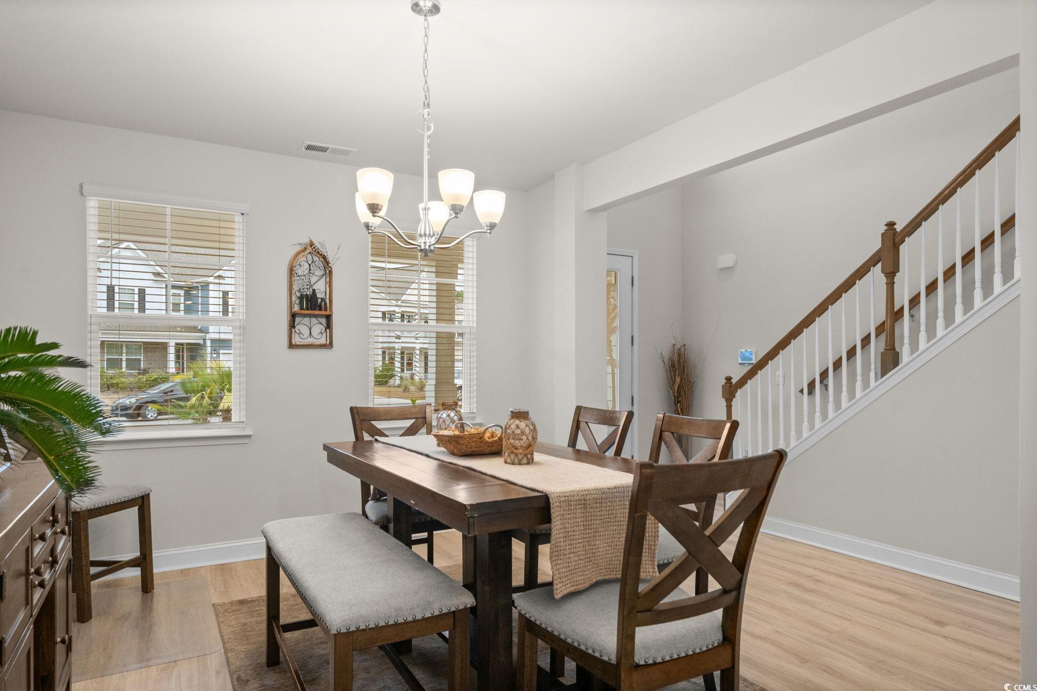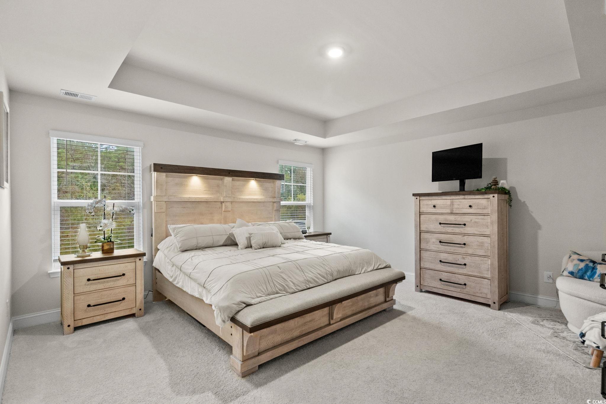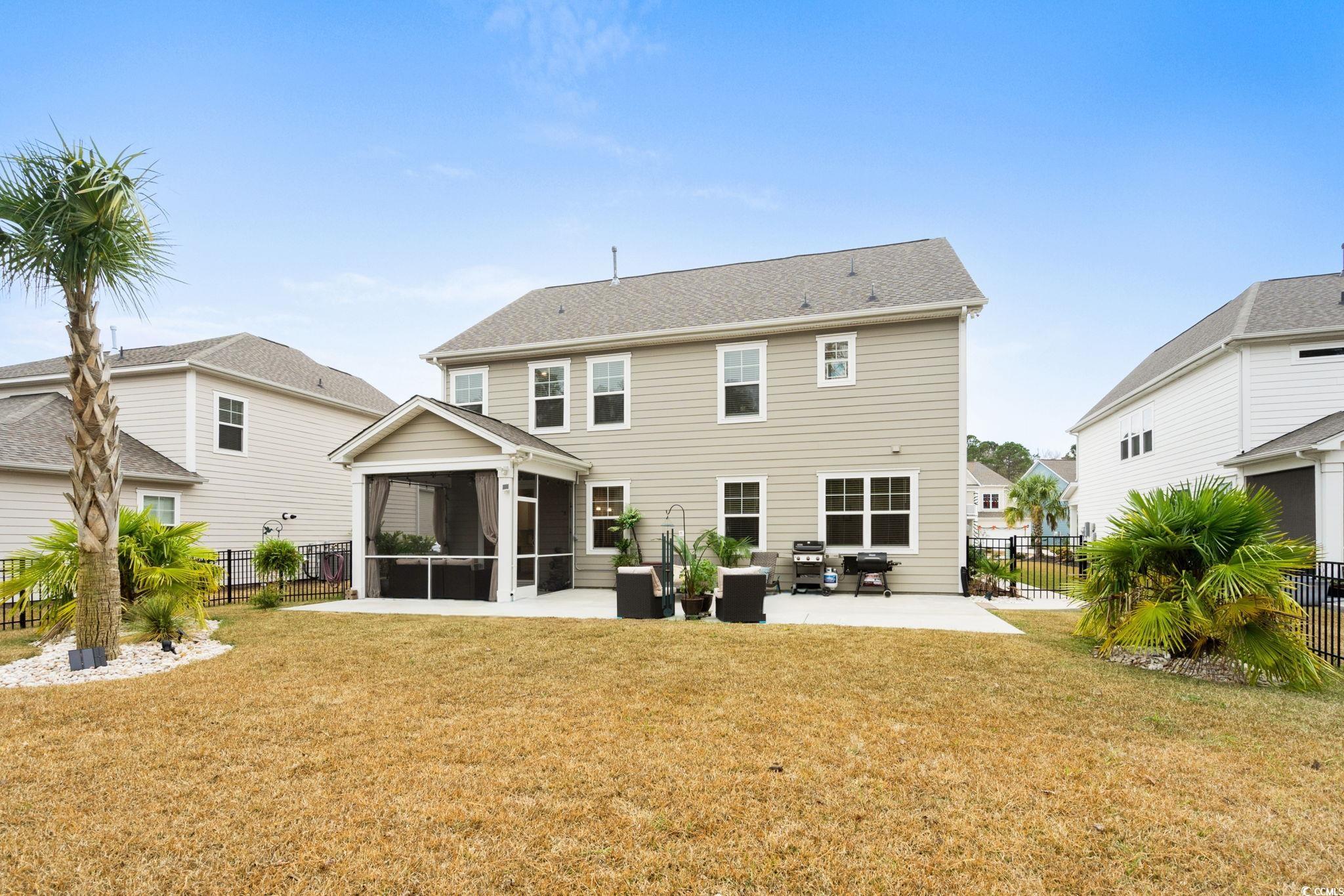 This beautiful home is located in the highly desirable gated Waterbridge community in the Carolina Forest area. Waterbridge features resort style amenties including the largest residential pool in SC, fitness center, tennis, pickleball, basketball, volleyball, bocce ball, playground, lake and a boat launch! This home is the popular Forrester plan that features 5 bedrooms with one bedroom being on the main level. You are greeted by a 2 story entryway and a formal dining room, the living room and kitchen are open concept with lots of windows for light, the kitchen features a huge 10' island perfect for entertaining, stainless steel appliances, gas stove, quartz countertops, pantry and opens to the great room. There is a main level bedroom and a full bath with a walk in shower that round this level out. Upstairs you will the oversized primary bedroom with tray ceiling and a spa like bathroom that features a dual vanity, tiled shower with glass enclosure, water closet, linen closet and a huge walk in closet. Over the cat walk you will find 2 additional bedrooms and a full bath. The 5th bedroom could also be used as a bonus room or flex space. It features dramatic ceilings and a closet. The walk in laundry room is located upstairs for convenience. Enjoy your evenings relaxing on your screened porch with ceiling fan. Step outside and you'll see the extended patio perfect for entertaining on those summer nights. The yard is fenced with beautiful palm trees and backs up to the woods. If all of this isn't enough you are just 7 miles to the beautiful Myrtle Beach and close to shopping and entertainment.