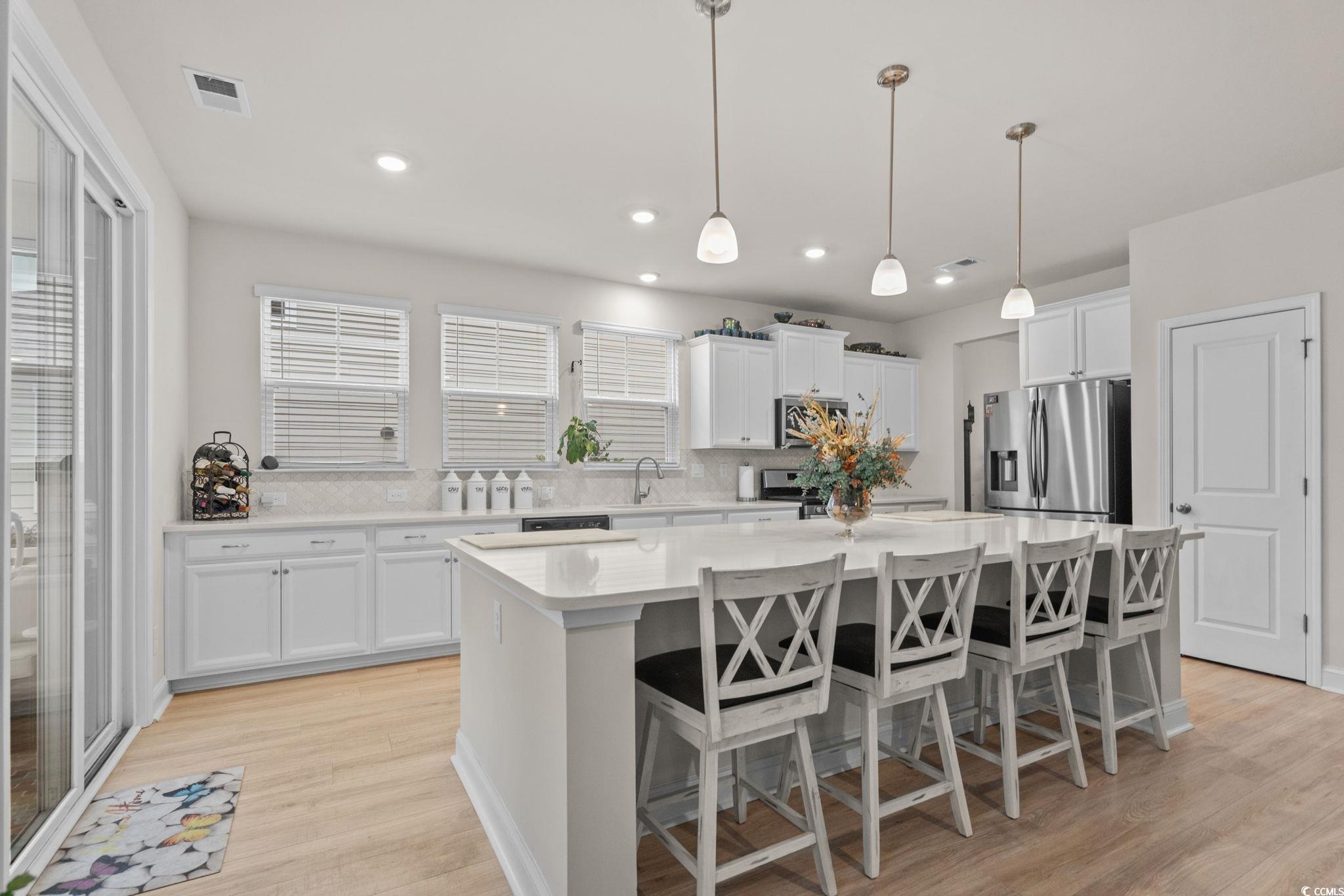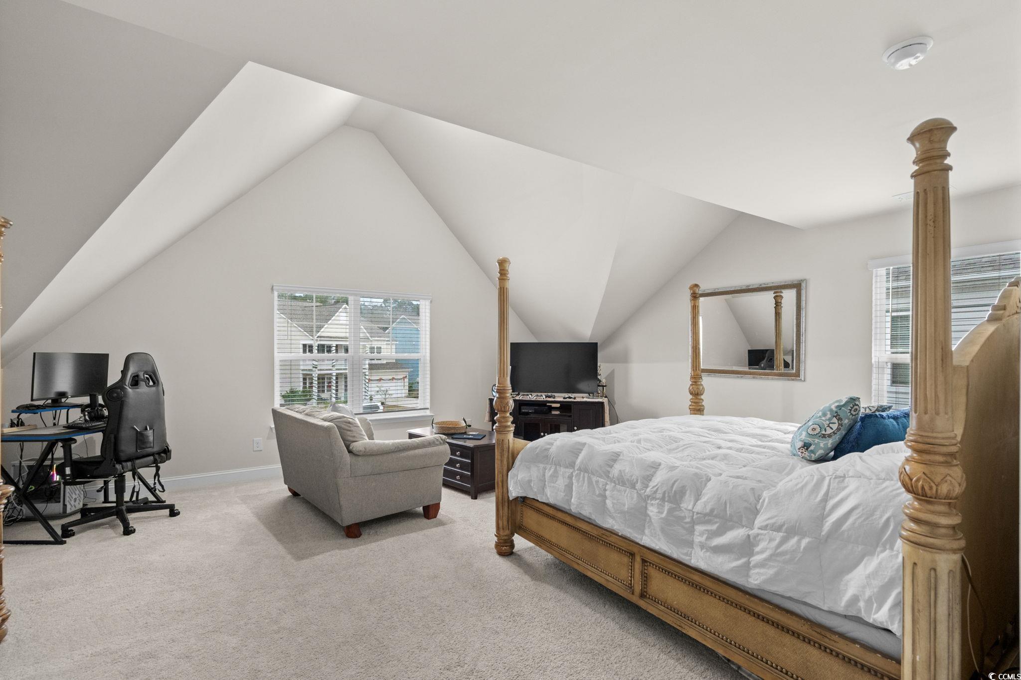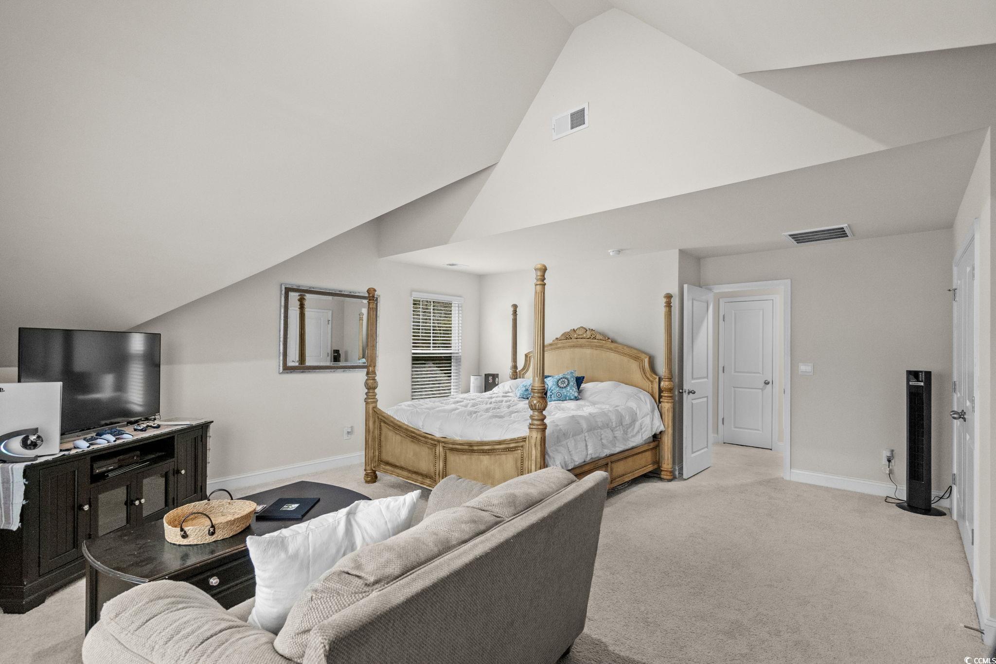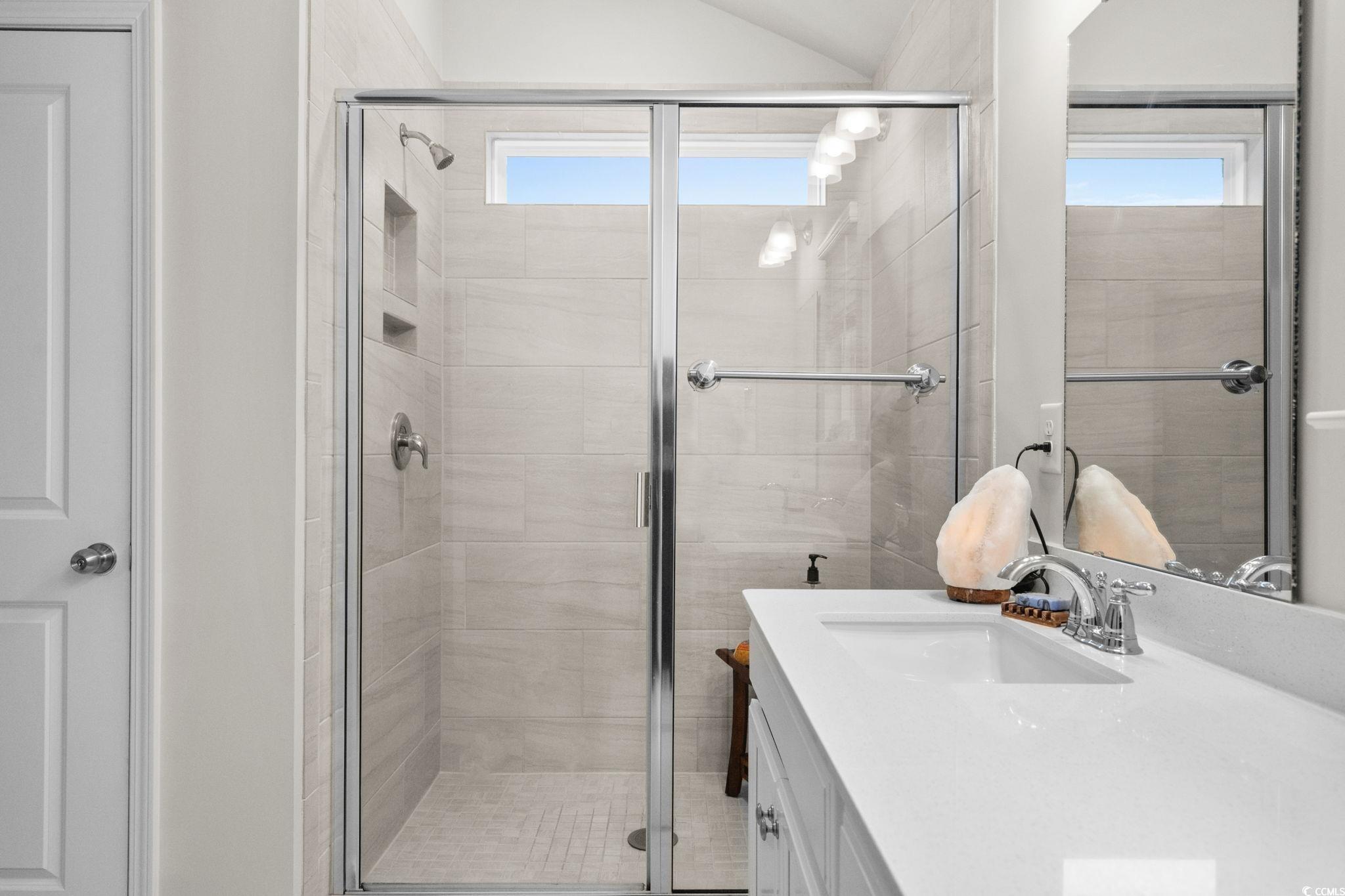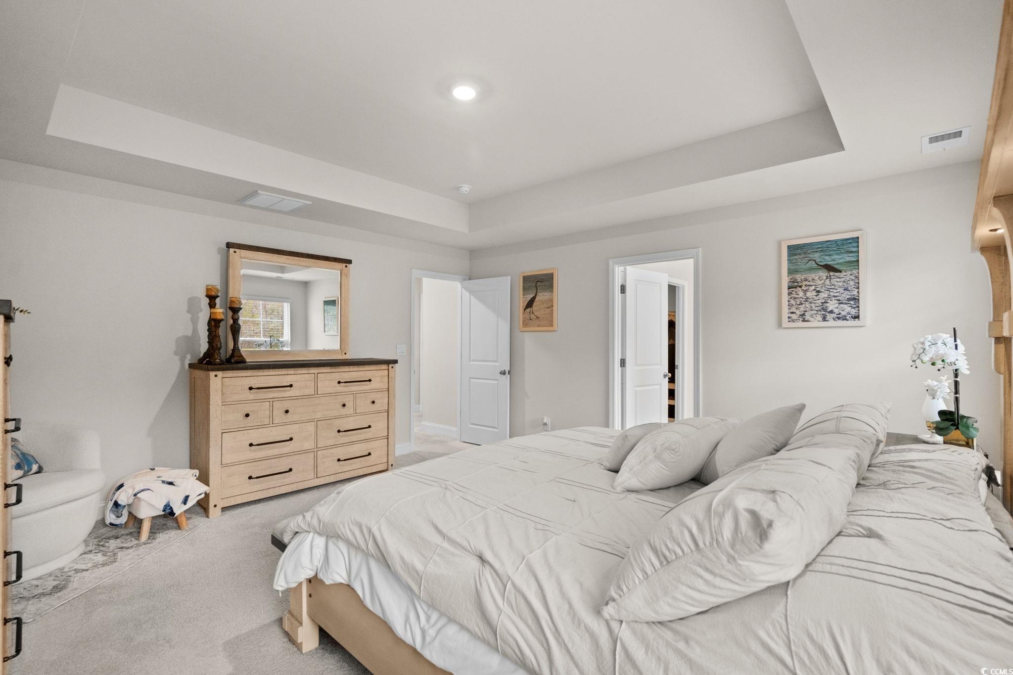 This beautiful home is located in the highly desirable gated Waterbridge community in the Carolina Forest area. Waterbridge features resort style amenties including the largest residential pool in SC, fitness center, tennis, pickleball, basketball, volleyball, bocce ball, playground, lake and a boat launch! This home is the popular Forrester plan that features 5 bedrooms with one bedroom being on the main level. You are greeted by a 2 story entryway and a formal dining room, the living room and kitchen are open concept with lots of windows for light, the kitchen features a huge 10' island perfect for entertaining, stainless steel appliances, gas stove, quartz countertops, pantry and opens to the great room. There is a main level bedroom and a full bath with a walk in shower that round this level out. Upstairs you will the oversized primary bedroom with tray ceiling and a spa like bathroom that features a dual vanity, tiled shower with glass enclosure, water closet, linen closet and a huge walk in closet. Over the cat walk you will find 2 additional bedrooms and a full bath. The 5th bedroom could also be used as a bonus room or flex space. It features dramatic ceilings and a closet. The walk in laundry room is located upstairs for convenience. Enjoy your evenings relaxing on your screened porch with ceiling fan. Step outside and you'll see the extended patio perfect for entertaining on those summer nights. The yard is fenced with beautiful palm trees and backs up to the woods. If all of this isn't enough you are just 7 miles to the beautiful Myrtle Beach and close to shopping and entertainment.