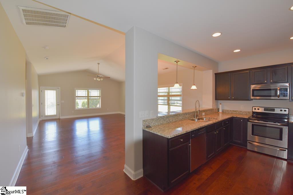 Elegant low maintenance living in Easley's Linden Hall Community-Welcome to 328 Linden Hall Lane, a beautifully appointed residence that blends timeless design with effortless comfort. This 2 bedroom 2 bathroom home offer refined living spaced enhanced by vaulted ceilings, Fireplace with gas logs, engineered hardwood flooring, and custom oak cabinetry that speaks to quality craftsmanship. The open concept great room is perfect for both relaxing and entertaining, with natural light accentuating the home's spacious flow. The kitchen features cultured marble countertops and thoughtful finishes that bring sophistication to everyday living. Enjoy convenience at every turn with a dedicated laundry room, an attached 2 car garage, an invisible fence for added peace of mind. The home's stone and vinyl exterior exudes classic curb appeal while ensuring durability with low upkeep. Residents of Linden Hall appreciate the meticulously maintained grounds- In ground water sprinklers plus lawn care included in the modest $120. monthly HOA fee-creating a serene, manicured setting year-round. Experience elegant simplicity and easy living in one of Easley's most desirable locations. Schedule your private tour today and discover comfort and style that await at 328 Linden Hall Lane.