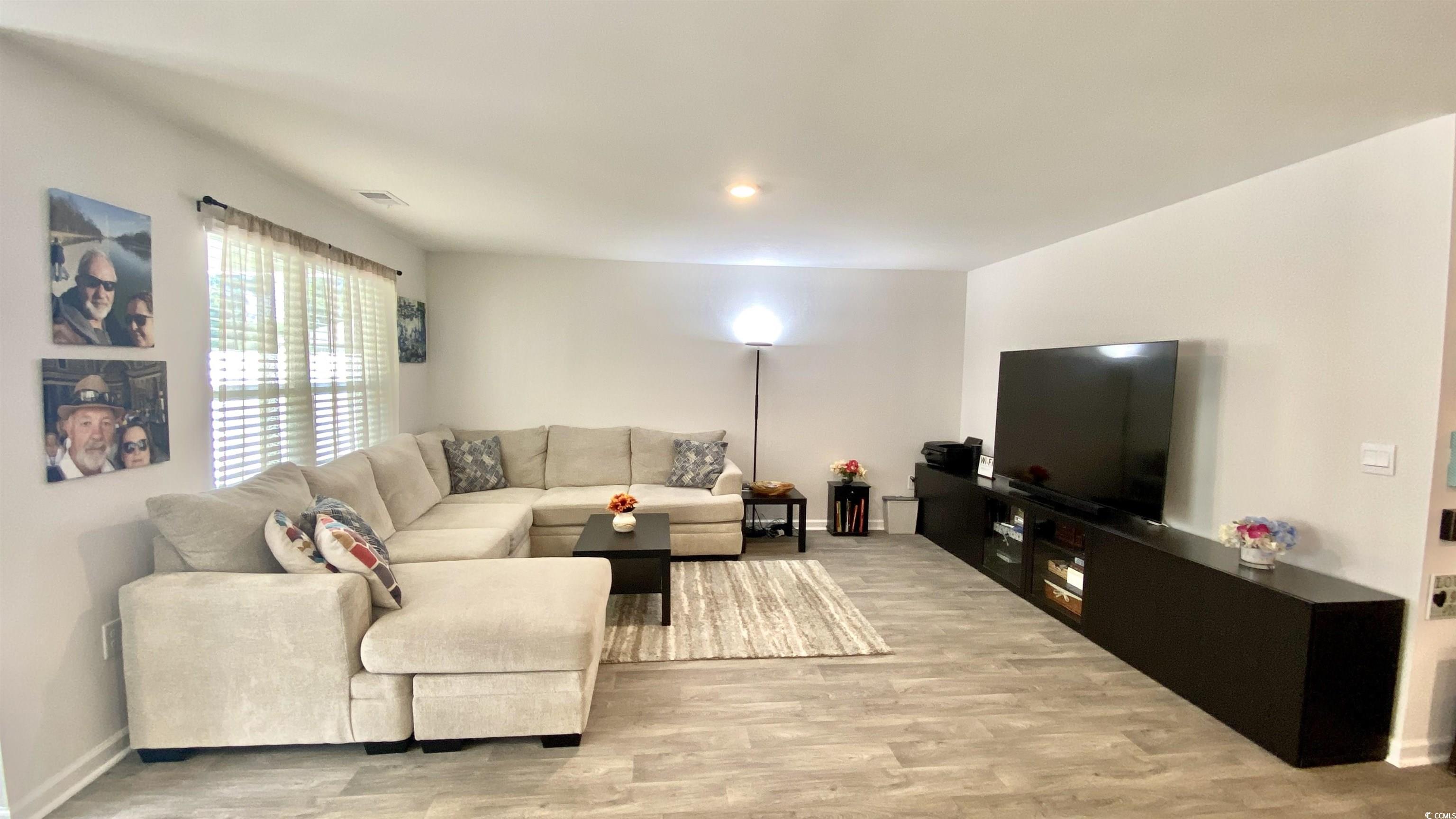 Move-in ready, beautiful 3 bedrooms 2 bathrooms home built in 2022 features a desirable split bedroom floor plan and a thoughtfully designed open-concept layout that is perfect for both everyday living and entertaining. Wood-look flooring flows throughout the main living areas, creating a warm and modern feel. The large kitchen serves as the heart of the home, showcasing granite countertops, a spacious island with breakfast bar, stainless steel appliances—including a side-by-side refrigerator—a large walk-in pantry, and 36” gray staggered cabinets that offer both style and ample storage. Just off the kitchen, the formal dining area is perfect for hosting gatherings and provides direct access to the 12’ x 8’ covered porch, making indoor-outdoor entertaining effortless. The spacious owner’s suite is privately located and offers a relaxing retreat with a generous walk-in closet, a 5-foot walk-in shower, and a cultured marble double vanity with dual sinks. The split bedroom layout provides added privacy, with two additional bedrooms and a full bath located on the opposite side of the home. Additional features include 2-inch faux wood blinds on all windows and abundant natural light throughout. This home also includes America’s Smart Home® technology package, allowing you to conveniently control the thermostat, front door light, door lock, and video doorbell directly from your smartphone or through Alexa voice commands. Ideally located just minutes from dining, shopping, and the vibrant riverfront of downtown Conway, this home offers the perfect combination of comfort, convenience, and modern living.