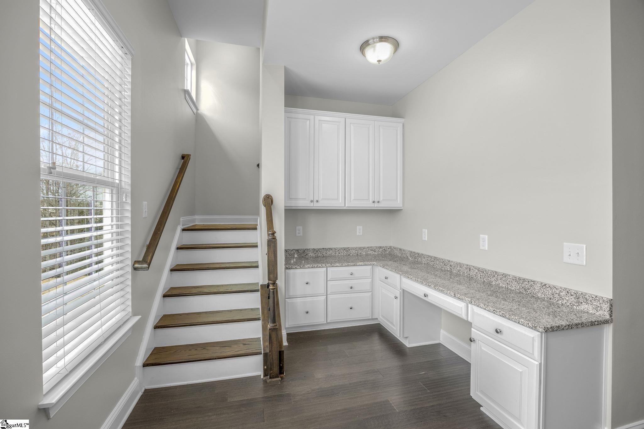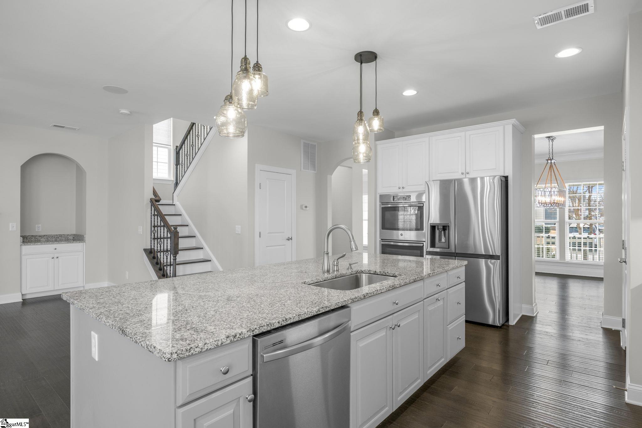Welcome to 329 Algonquin Trail in the highly desirable Hollingsworth Park community. This well maintained 5-bedroom, 3-1/2 bath home has all the luxury details you've been looking for in a new home - hand-scraped hardwoods throughout the main level, arched openings, iron rail on the stairs, built-in sound system features, designer paint- even custom lighting. It's beautiful AND smart, with an open, flexible floorplan that works for everyone. There's a study or home office in the quiet zone near the front door, opposite the gorgeous dining room. The chef's kitchen has generous cabinet and prep space, pantry, stainless appliances - double wall ovens, microwave, gas cooktop, dishwasher - and a 9' granite island big enough for everyone to gather around. The sun-bright breakfast space includes a recipe desk or study nook with even more cabinets and counter space. Both rooms open to the great room so the entire space enjoys views of the cozy gas log fireplace. Up the angled stairs, there is a landing with double doors opening to the impressive owner's suite with tray ceiling, two walk-in closets, bath with double vanity, large shower and private water closet. Three additional bedrooms share a hall bath on this level. The laundry room is in the perfect location, right off of the bedrooms. There is a second staircase from the living area that leads to a spacious, vaulted 5th bedroom (that can double as a flex room/rec room) with full bath, surround sound and wiring for a wall-mounted TV. There is a wide and welcoming front porch. Out back, there is a rear covered porch and a paver stone patio with the peace and privacy that comes with a view of acres of hardwoods that will never be developed - a rare find in Hollingsworth Park. Transferable Pool membership included! Walk to the YMCA or Stella's Southern Brasserie, and enjoy Hollingsworth Park's sidewalks, community garden, pond with ducks and playground. Just off I-85, with easy access to nearby Woodruff Road's shopping, services and conveniences. It's just minutes to fabulous downtown Greenville today and has access to the Swamp Rabbit Trail extension. A fabulous home in one of Greenville's best neighborhoods. Make it yours today!