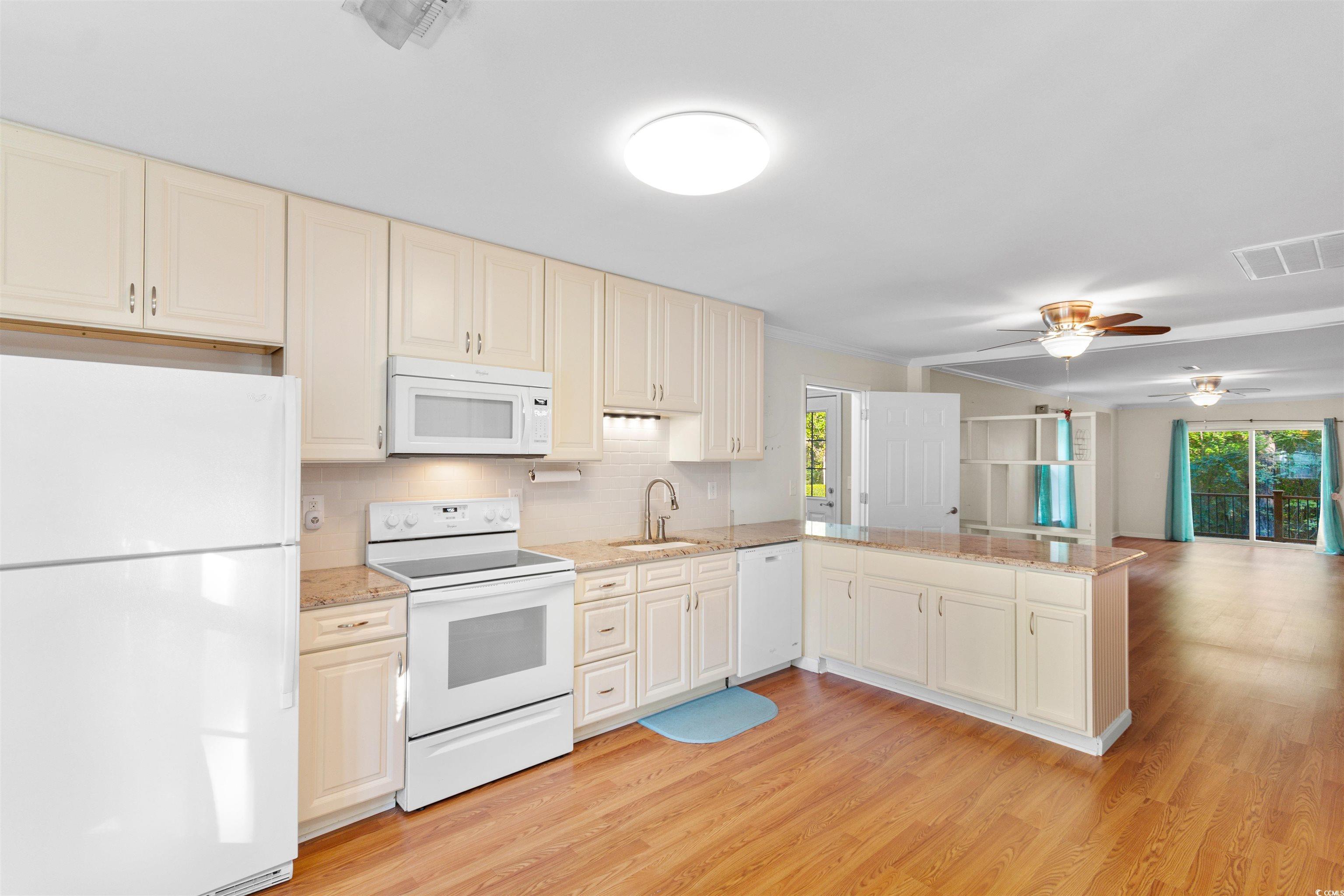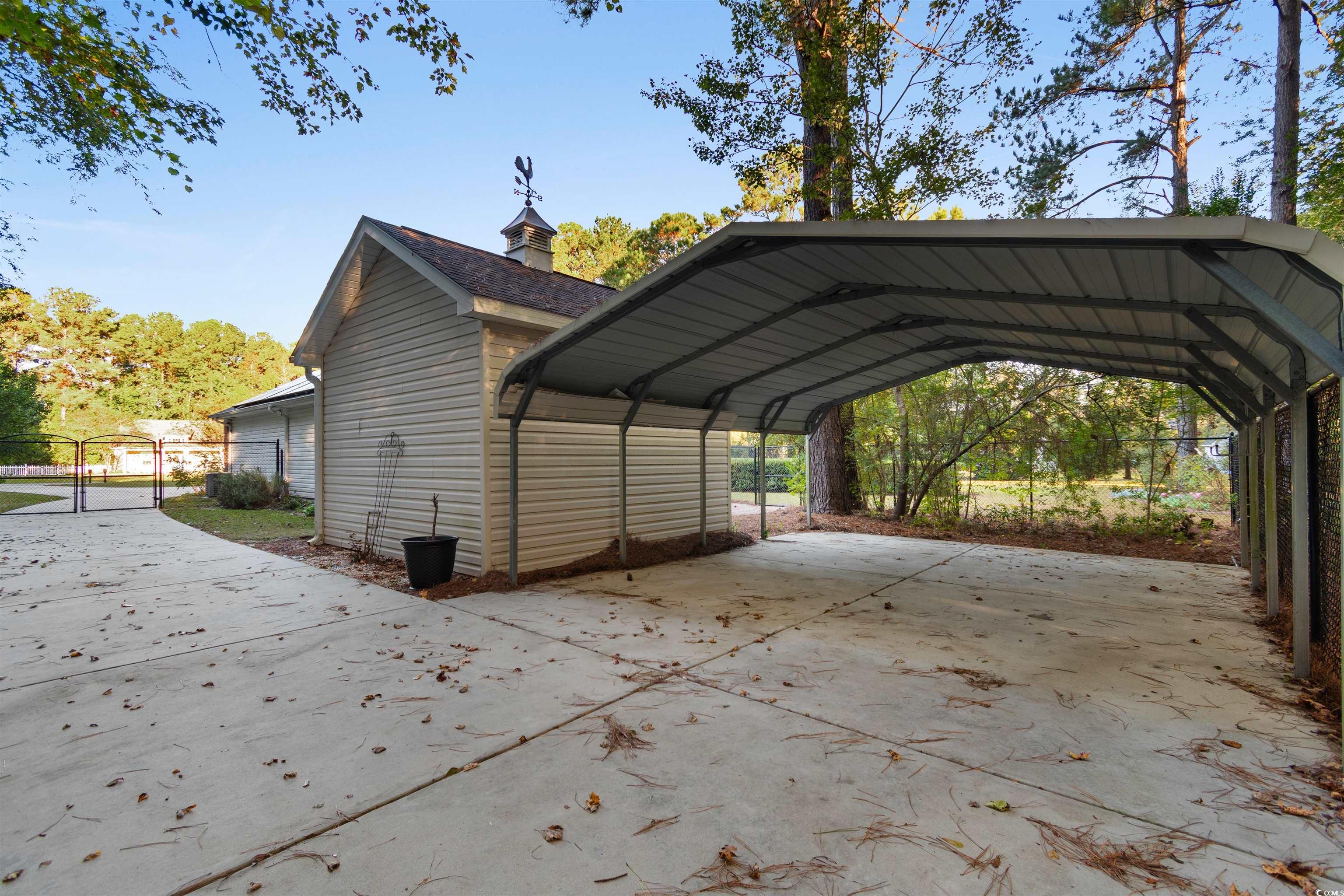Come explore this peaceful and serene country estate in the Green Meadow Farms Community, complete with in-law type en-suite. Enter the main foyer via the charming brick patio adorned with live english ivy garden. Welcome your guests into the cozy living room with fireplace and vaulted ceiling. Off to the left of the living room, you will find 2 spacious guest rooms, large closets and full hall bathroom. The Primary ensuite includes double sinks, shower, walk-in soaking tub, walk-in closet and private exit leading you into the Carolina Room, exterior patio and fenced in yard. Make your way thru the Carolina Room and enter into the oversized kitchen-great room combo with floor to ceiling windows filling this space with natural light. Enjoy expansive granite countertops, bar height counters as well as view thru cabinet-island peaking into the formal dining room for endless entertaining possibilities. Stainless steel appliances, gas stove, two pantry closets, half bath and laundry room. Beyond the kitchen-great room, you will find the in-law ensuite complete with full kitchen, secondary living room, 4th bedroom, full third bathroom and large walk-in closet. This en-suite has its own front and rear entrances, plus separate fenced in yard, golf-cart shed and double wide carport. This en-suite can be locked off from the heart of the home to accommodate a multi-family situation or rental. Sitting on a full acre filled with mature wooded and landscaped areas with a great deal of quiet privacy; there is ample lawn area to add that pool you've always wanted. Loads of storage space with three attic entries and attached 2-car garage. The Solar Wind System carries no monthly fees and can assist to offset a traditional monthly electric bill. Park and store your RV and other big toys here. Nearly 4,000 heated square feet; this home has had many recent updates including full roofing system, walk-in tub, granite kitchen countertops, gas/propane stove, hvac, water heater, converted porch to insulated Carolina Room and expansion of the in-law en-suite. Minutes to the Waccamaw River and other outdoor enthusiast attractions. Closely convenient to Downtown Conway, area Colleges and major highways. Reach those popular Myrtle and North Myrtle Beach destinations. Arrive to the Myrtle Beach International Airport (MYR) in thirty-five minutes, door to door. Your new adventure awaits! Square footage is approximate and not guaranteed; Buyer to verify.
