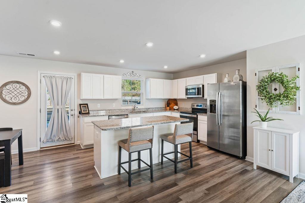 Move-in ready and meticulously maintained, this 4 bedroom, 2.5 bath home blends comfortable living with a prime Upstate location near BMW, I-85, and the shopping/dining scenes of Greenville, Spartanburg, and Greer. An inviting foyer leads to a dedicated dining room and a flexible main-level office—ideal for remote work or a quiet study. The well-sized kitchen features a center island, abundant cabinetry, and a seamless connection to the casual dining area and living space—perfect for everyday life and easy entertaining. Upstairs, all four bedrooms are thoughtfully arranged, including a spacious primary suite with a full bath and a large walk-in closet. Three additional bedrooms are generously sized and share a convenient second full bath, providing plenty of room for family, guests, or hobbies. Out back, enjoy a private, fully fenced yard that backs to green space—a rare find that adds privacy and a natural backdrop. The expansive 26’ x 20’ concrete patio sets the stage for outdoor dining, games, and weekend gatherings. Additional highlights include great storage, neutral finishes, and a layout that lives large. If you’re searching for a well-cared-for, move-in ready home with an office, island kitchen, generous bedrooms, and a fantastic backyard—minutes to major employers and commuter routes—this one checks all the boxes.