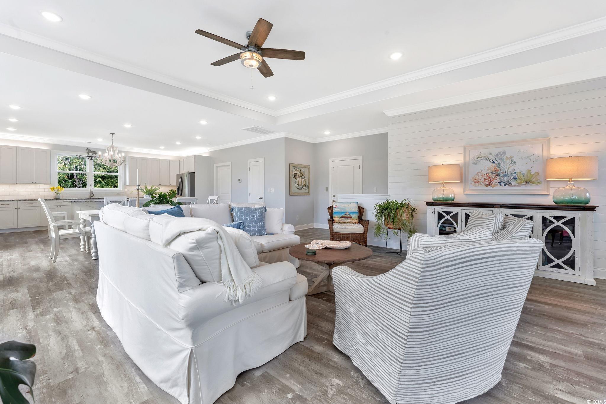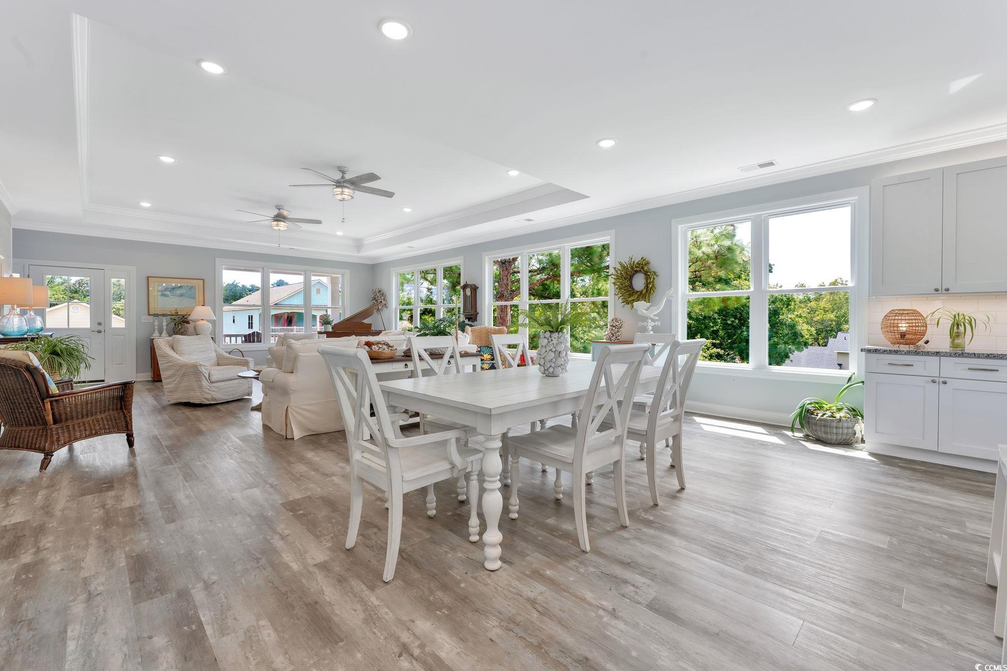 This is the beach home & or rental property you’ve been looking for. Centrally located in the Windy Hill section of North Myrtle Beach, this five-bedroom, six and one-half bathroom--raised beach house includes an indoor elevator (installed by the seller after purchasing the home from the builder) and has been meticulously cared for since it was newly constructed in 2021. Each bedroom has its own full bathroom. There is another full bathroom as well as a half bathroom which adjoin the living areas of the home. Located east of Hwy 17 & just a few blocks from the public beach access @ 33rd Ave S. & S. Ocean Blvd it is a short walk or golf-cart ride to the beach, or all that North Myrtle Beach is famous for, including Barefoot Landing, restaurants, the municipal airport, grocery stores, shopping, golf, boating, nightlife & miles of inviting beaches. There is NO HOA!! The expansive kitchen has plenty of solid-wood cabinets with above and below cabinet lighting, granite countertops, stainless steel appliances, & a large island bar adjoins the dining area & the huge upper-level living space which is open with lots of windows to create the feeling of being perched amongst the treetops. There is a large deck on the front of the home which is accessible from the great/family room, giving the upstairs living areas access to the outdoors. The upper floor houses the primary bedroom & bathroom, as well as another large bedroom and full bathroom, as well as a half bath directly off the main living area. The home's interior features crown molding, luxury vinyl plank flooring, LED lighting, and there is insulation between bedrooms and living spaces to reduce sound transfer. The lower level of the home has three bedrooms & three full bathrooms, as well as an additional living room with an extra full bathroom. The exterior of the home has fiber-cement siding, large covered front porches, a rear deck featuring Trex decking and vinyl railings. There is a large storage room on the ground floor, as well as access to the home's elevator. Enjoy plenty of parking for vehicles and your golf cart underneath the home, as well as a large, paved driveway. The home is raised & situated on a highly elevated lot. There is golf cart parking available along S. Ocean Blvd, & there are also several public parking lots near the beaches of Windy Hill. 33rd Ave S has a public-beach access, & there are several other public beach accesses in Windy Hill and NMB, some with public restrooms. So, schedule your showing today, before this great home and opportunity slips away. Offered Furnished, with a short list of items that do NOT Convey.