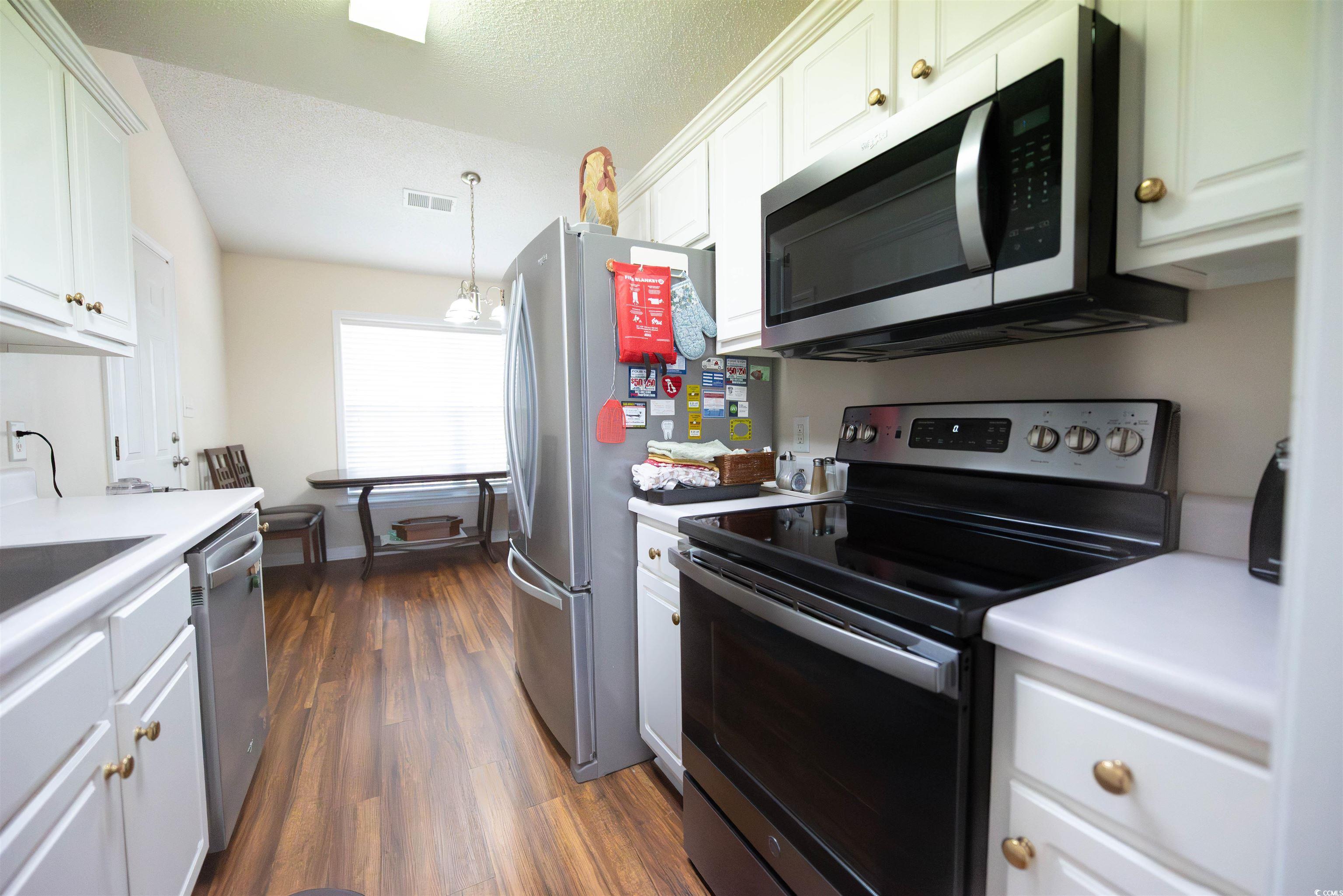 BRAND NEW ROOF JUST INSTALLED AUG 2025! Low HOA fee! Great starter home in USDA eligible area! Only 6 miles to Cherry Grove/North Myrtle Beach! WELCOME to the quiet community of Plantation Pines! This adorable single-story 3 BR ranch-style home awaits you! This home features a spacious family room with a cathedral ceiling, stainless steel kitchen appliances, separate laundry room/pantry, master bedroom with an ensuite, cathedral ceiling, and walk-in closet, LVP floors, large 2-car garage. Lots of storage; coat closet, pantry, and linen closet. Washer and dryer convey. The Plantation Pines community is located in Longs bordering Little River/North Myrtle Beach nestled away from the hustle and bustle yet convenient to restaurants, shopping, golf and just 6 miles to Cherry Grove/North Myrtle beach! Community amenities include a community pool and clubhouse. Schedule your showing today!