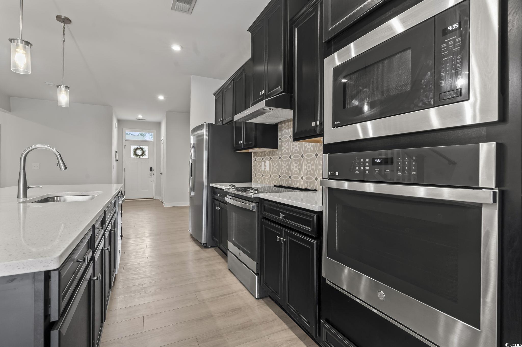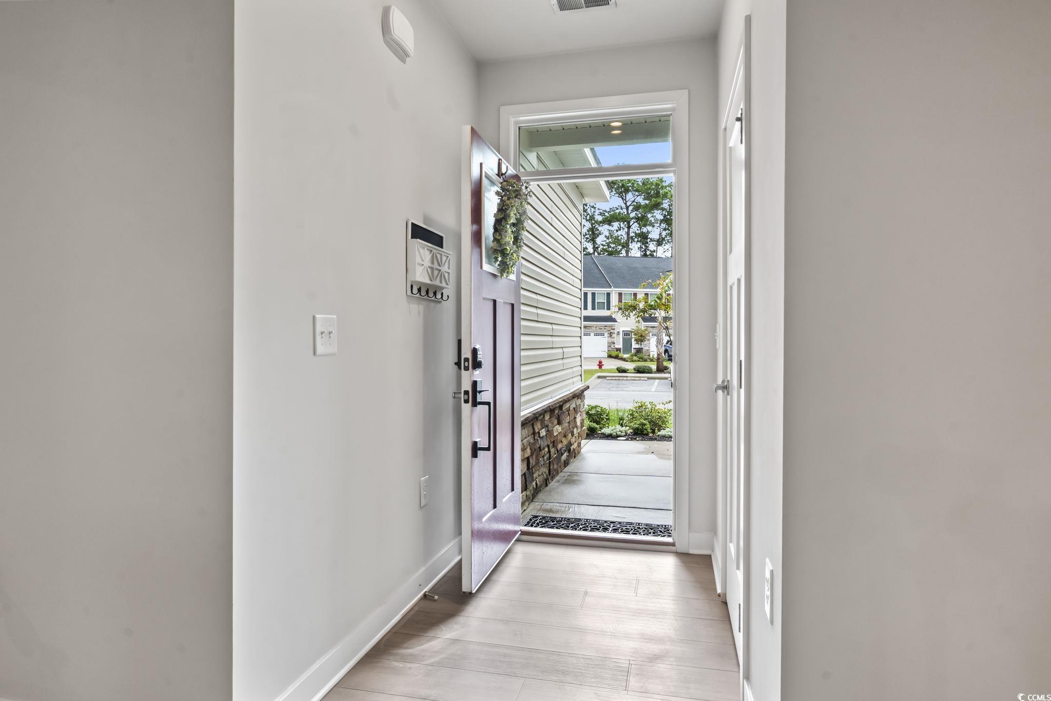 Welcome to 331 Golan Circle, Unit A - a stunning 3-bedroom, 2.5-bathroom townhome with an attached 2-car garage, set on a desirable corner lot with serene pond views. This beautifully maintained residence offers the perfect blend of comfort, elegance, and convenience, making it truly move-in ready. Step inside and be greeted by an inviting open floor plan filled with natural light, where rich wood flooring flows seamlessly throughout the main living spaces. The formal dining area provides the perfect setting for gatherings, while the completely upgraded kitchen is a showstopper-featuring quartz countertops, stainless steel appliances, a double oven, a spacious island, a huge pantry, and abundant cabinetry for all your storage needs. The first-floor primary suite is a private retreat, complete with a beautiful tray ceiling with crown molding, a walk-in closet, and direct access to the extended back patio overlooking the pond-perfect for enjoying quiet mornings or peaceful evenings. The spa-like primary bathroom offers a double vanity, a walk-in shower, and a separate enclosed half bath for added privacy. Upstairs, you'll find two generously sized bedrooms, a full bathroom, and a versatile bonus/flex room that could easily serve as a fourth bedroom, home office, or media room. The outdoor space is just as impressive, with a private backyard and breathtaking water views that create a serene escape right outside your door. Located in the sought-after Forest Pines community, this home is just a short stroll from the sparkling community pool and minutes from some of the area's best amenities. Enjoy easy access to world-class golf courses, the Myrtle Beach International Airport, shopping centers, local dining favorites, and endless entertainment options. And with the beach only a 10-minute drive away, you can enjoy the best of coastal living while still savoring the peaceful privacy of this quiet neighborhood. This is more than just a home-it's a lifestyle. Whether you're seeking a full-time residence or a vacation getaway, 331 Golan Circle, Unit A offers the perfect combination of modern upgrades, thoughtful design, and a prime location close to everything Myrtle Beach has to offer. Schedule your showing today!