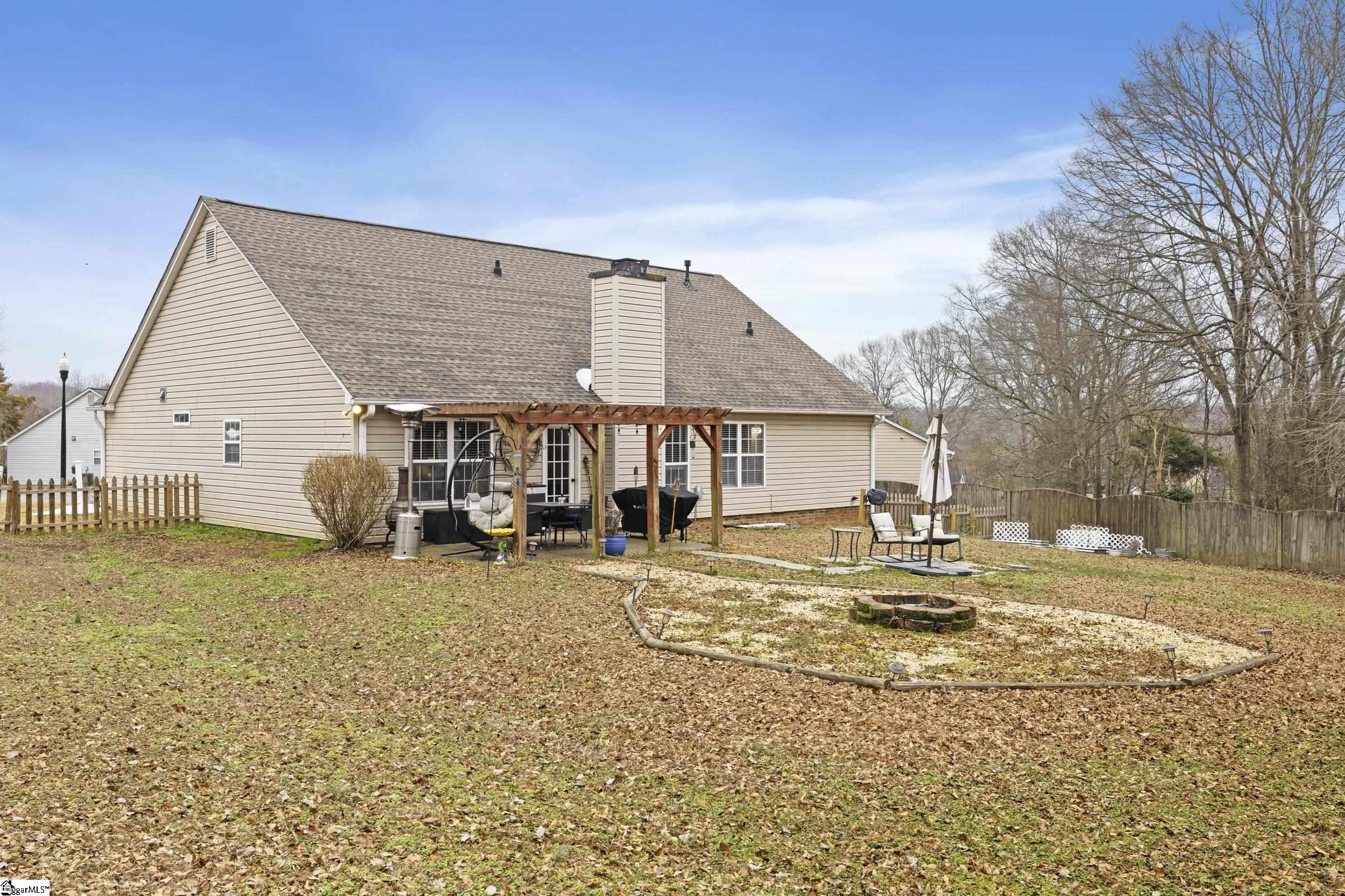 Beautiful 3-bedroom, 2-bath ranch home located in desirable Standing Springs Estates. 331 S Sandy Brook Way features an open floor plan with vaulted ceilings, creating a bright, spacious feel and seamless flow throughout the main living areas. Luxury vinyl plank flooring highlights the common spaces, with tile in the kitchen and bathrooms, and comfortable carpeted bedrooms with generous closet space. Situated on a rare 0.46-acre lot backing up to open land, this home offers privacy and room to enjoy the outdoors. The expansive backyard includes a pergola, fire pit, and a large storage shed—perfect for relaxing, entertaining, or enjoying quiet evenings outdoors. Recent upgrades by the current owner include new shutters, zoysia sod, freshly painted garage, new 2-inch blinds, added attic insulation, and custom built-in wooden storage in the garage. This well-maintained home combines comfort, space, and hard-to-find lot size in a great location.