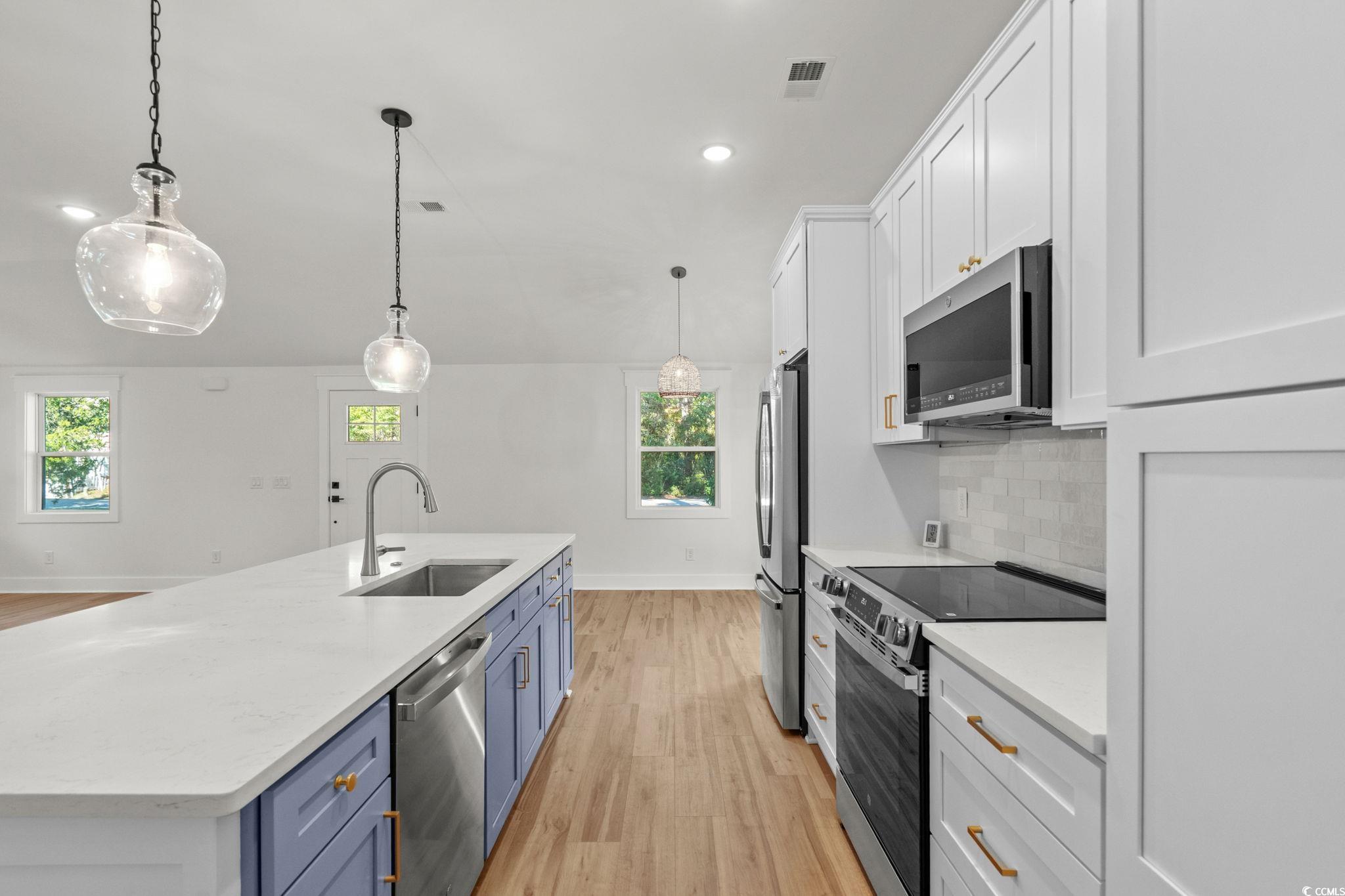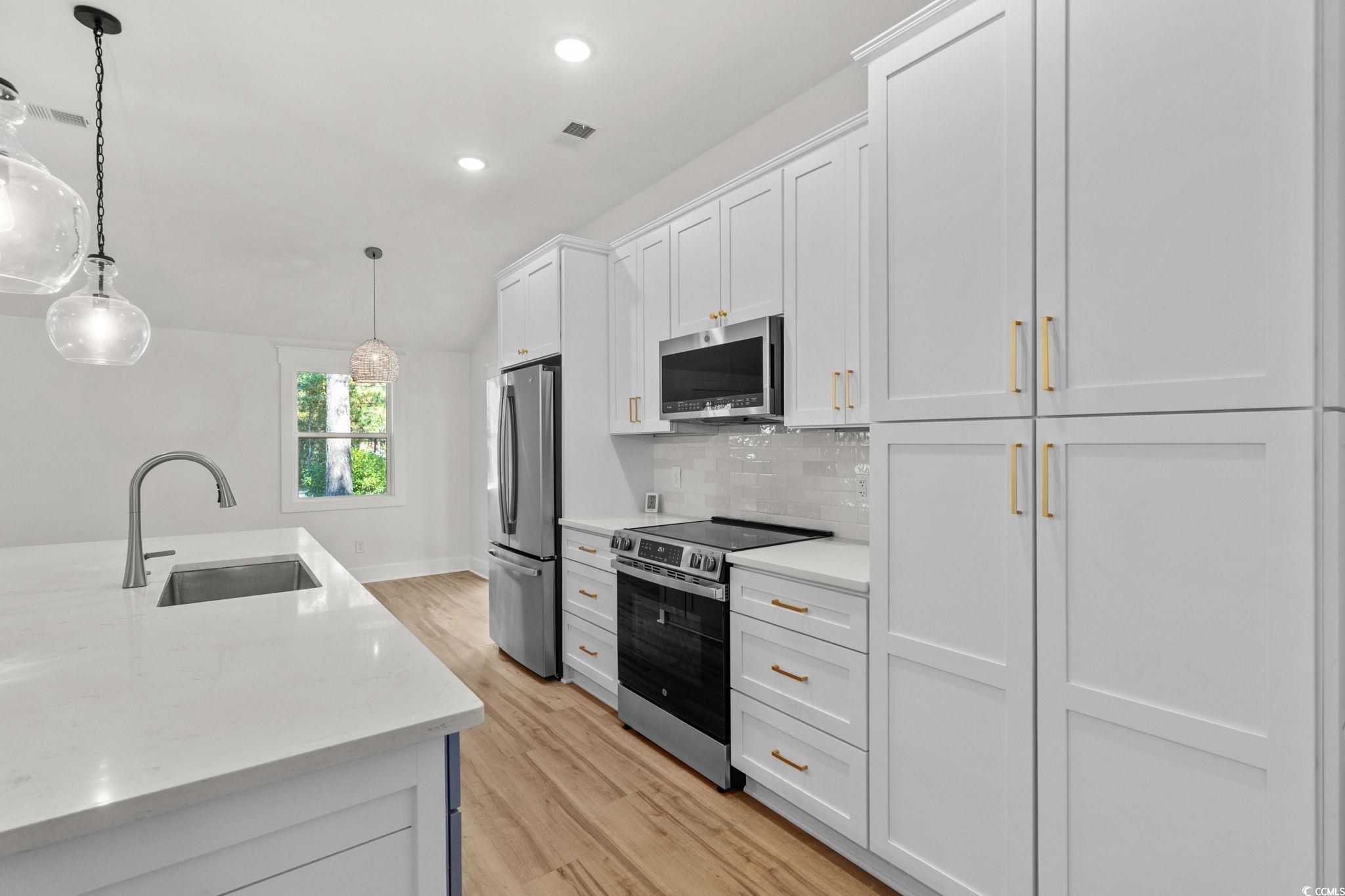 Completely reimagined from the ground up, this 2 bedroom, 2.5 bath coastal cottage at 331 Sparrow Drive offers the charm of Surfside Beach with the feel of new construction. The open floor plan is filled with natural light and features all new plumbing and electrical systems, lighting and plumbing fixtures, cabinetry, flooring, HVAC ductwork, and structural enhancements. The kitchen includes all new appliances, and the washer and dryer are also included. Enjoy an inviting covered front porch with a stained wood ceiling, rear deck, and side patio that provide great spaces to relax or entertain. Additional updates include new siding, windows, doors, metal roof, driveway, walkways, landscaping with new sod, and a fully encapsulated crawlspace with dehumidifier. Located in the R2 district where short term rentals are not permitted, this home is perfect as a full time residence or a second home beach bungalow just a short golf cart ride from the ocean, restaurants, and all that Surfside has to offer. Please contact the listing agent or your Realtor to schedule a showing or learn more about this Surfside Beach cottage before it’s too late.