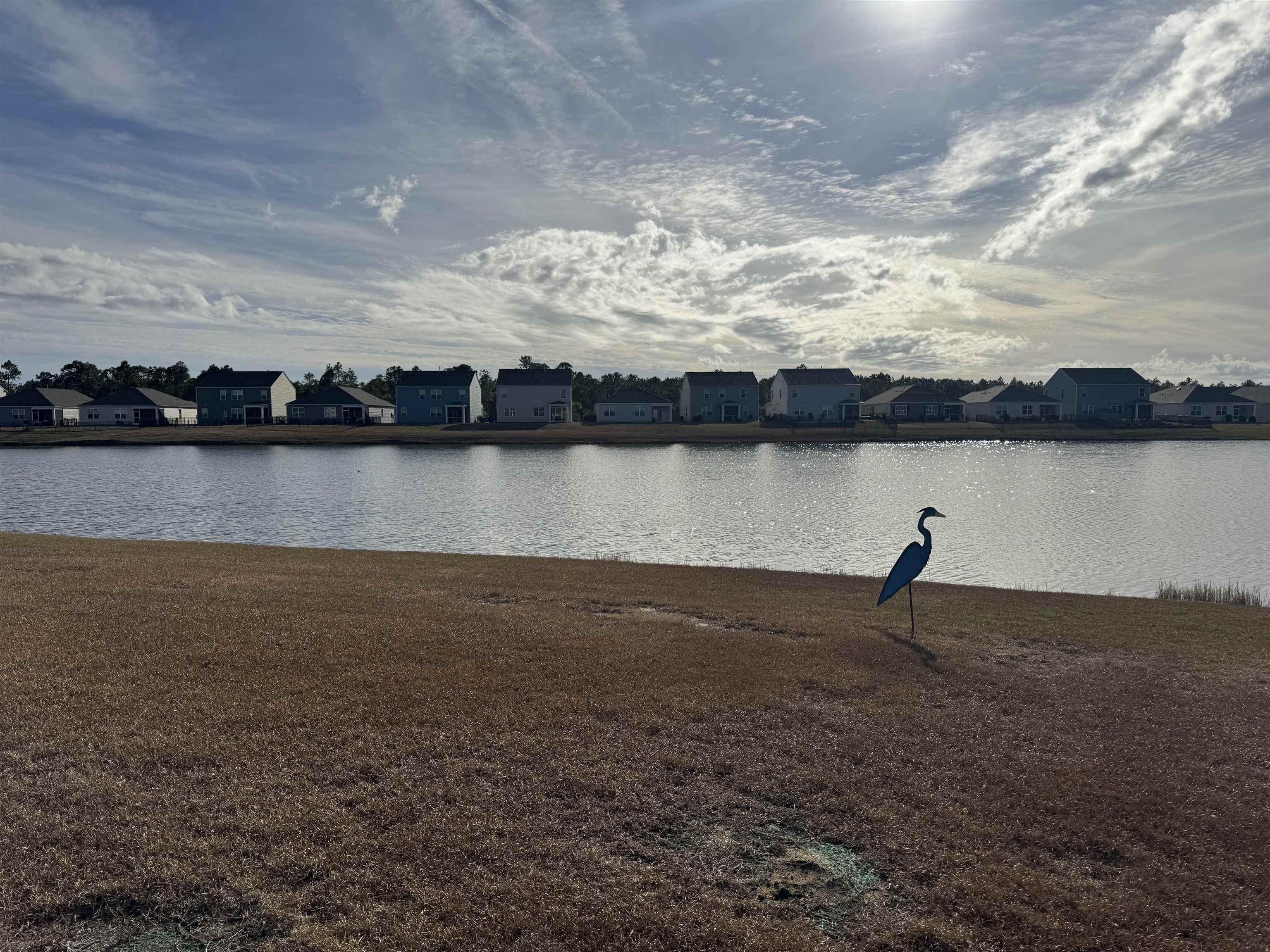 Everything about this home screams comfortable and cozy - not small at 2,181 sq ft. Plenty or room for family or entertaining. Magnificant sunset skys from your living room, kitchen,dining area, master bedroom and your screened in porch. This shows like a brand new home. Immaculate open floor plan. Kitchen, dining area blend perfectly for easy living. The kitchen offers a gas stove, beautiful white solid surface countertops throughout the kitchen and center island with space for stools for a quick meal or gathering. Split bedroom plan allows owner privacy. The master bedroom has relaxing water views and it has a large master bath with double sink, vanity, shower and large walk in closet. Commode is in a closed space for additional privacy. Two extra bedrooms are down the hall with plenty of room for children or guests. Also included are utility closet, coat closet and linen closet in the second bathroom. Washer and dryer are located in a separate area conveniently located in the hall as well. The Aria model offers a two car garage with a lovely brick front and a nicely screened area off the back dining area from which you can enjoy beautiful sunsets overlooking Bell's lake. This beautiful "like new" home has everything you need to enjoy coastal living.