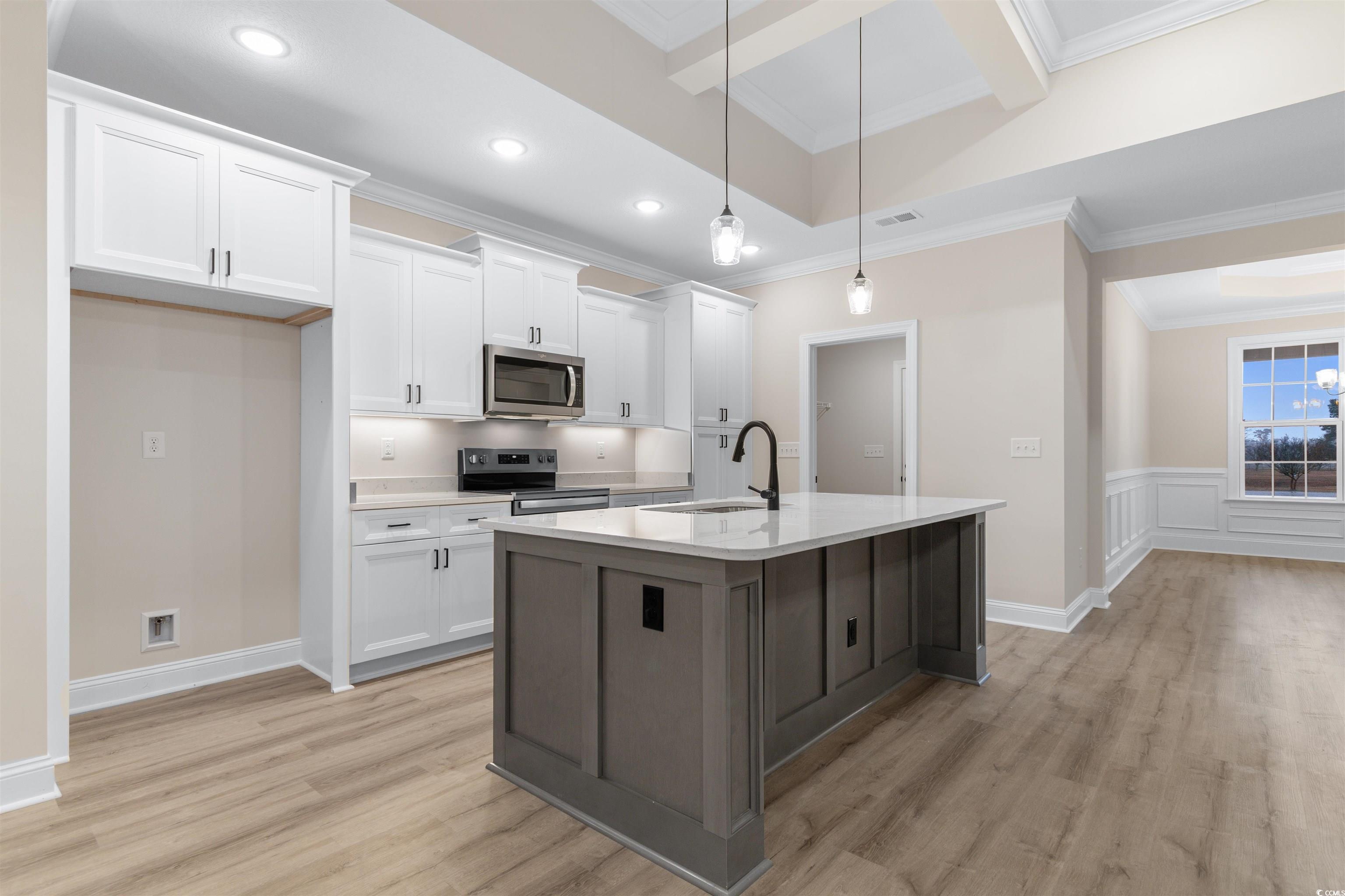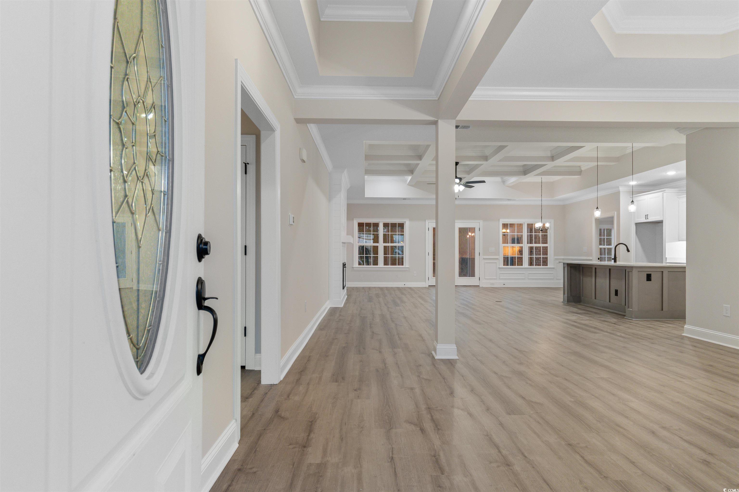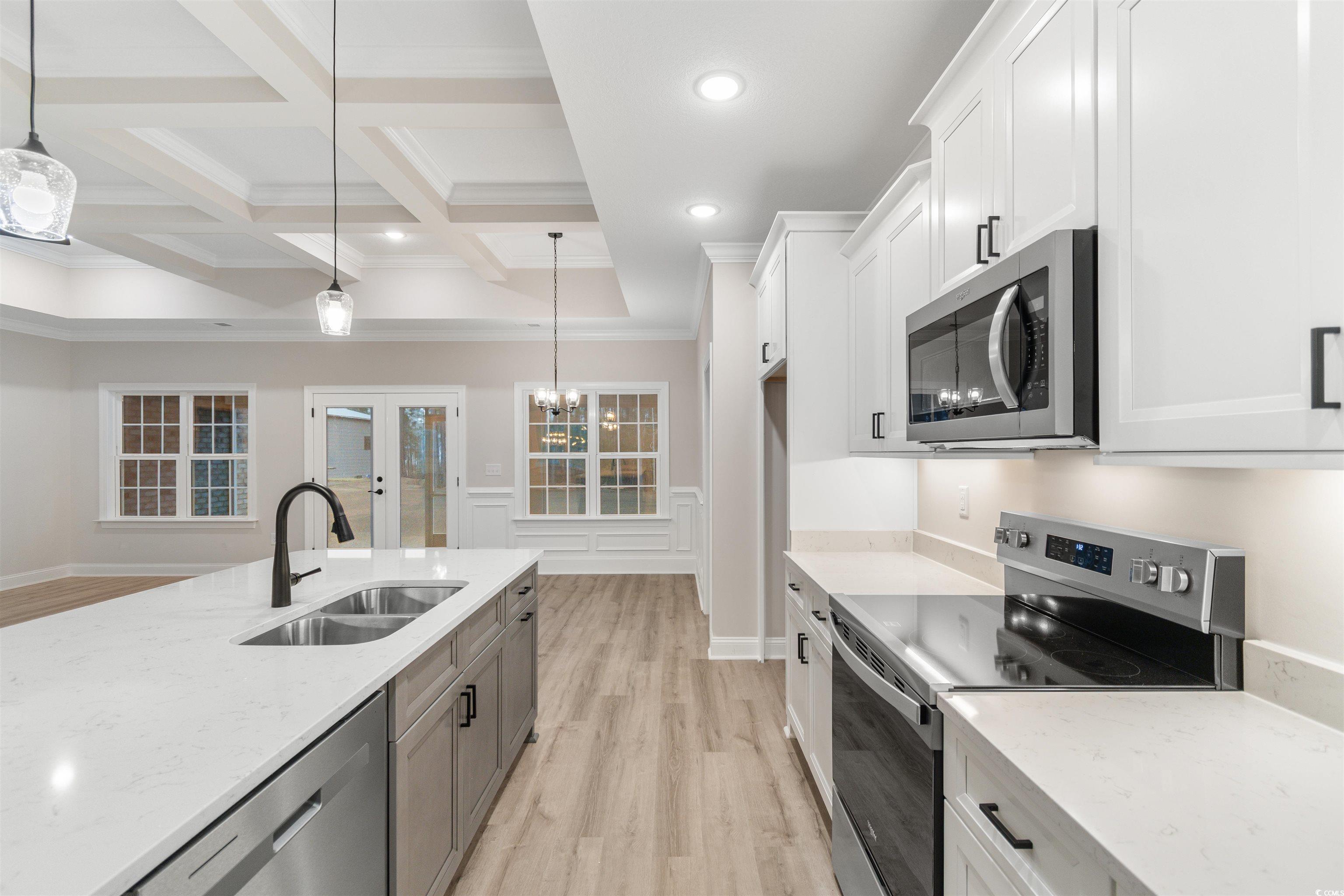 All brick 4 bedroom/3 bath home located on a large home site in the desirable Aynor School District. This top-selling home plan features a spacious great room, 10’ coffered ceilings, fireplace, granite island kitchen, large bedrooms, multiple storage closets, LVP wood flooring, screened in back porch, and a sprawling rear lawn. In addition to the granite counter tops, this upgraded kitchen features all stainless appliances, beautiful cabinetry with soft close dove-tailed drawers and doors. Enjoy your meals at the spacious island, or the formal dining room which features two-piece chair rail and wainscoting, and an 11’ crowned tray ceiling. The large master bedroom and bath features a garden soaking tub, over-sized shower, high-quality valves and faucets, granite vanity tops, double sinks, and two enormous master walk-in closets. Exterior features include a carriage style automatic garage door with glass window for natural light, quiet belt drive garage door opener, and maintenance free vinyl shake gables and dormers, brick soldier course and quoined corners, concrete parking pad, entry sidewalk, screened rear porch and more! Call today to view this lovely home!