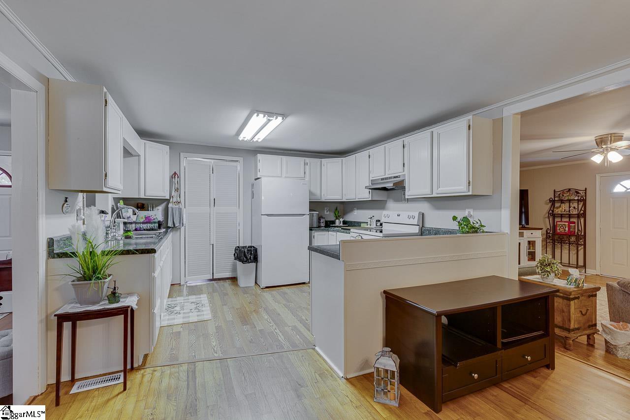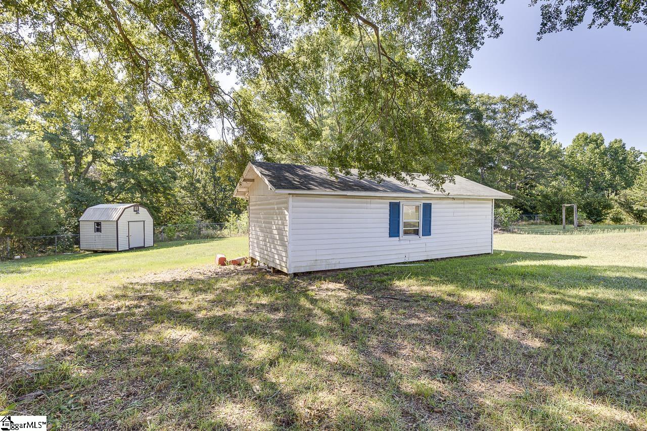 USDA ELIGIBLE. Searching for a peaceful place to plant your roots? This two-bedroom, two-bath Ranch-style home sits on three spacious acres in Gray Court, where country living and Southern charm go hand in hand. Set on a level lot with mature trees, this property has plenty of room to breathe in a setting that feels like home from the moment you arrive. As you walk up for the first time, you will step onto the inviting front porch which is perfect for your favorite outdoor furniture. When you walk through the front door, you will discover a light-filled living room that feels both comfortable and inviting, with soft natural light streamin through the windows and traditional crown molding and baseboards. Whether you're curled up with a good book or entertaining guests, this is a room that instantly makes you feel at ease. The open flow continues into a cheerful breakfast area and kitchen, where cooking and conversation go hand in hand. The kitchen features ample counter space, generous cabinet storage, a pantry closet, and a passthrough window that opens to the dining room. This layout is perfect for hosting dinner or keeping an eye on things while preparing a meal. The formal dining room is the perfect place to display your heirloom furniture and dishes, with chair rail molding and baseboards which add extra character to the space. One of the home’s most functional features is the walk-in laundry room, which includes extra cabinet storage for your cleaning supplies and a charming window that fills the room with sunlight, making laundry day a breeze. The primary suite is a restful retreat, with a large bedroom and a private en suite bathroom. The second bedroom is equally well-proportioned and shares access to a second full bath on the front of the home, making it ideal for guests or working from home. Outside, the property continues to impress. Tucked away behind the house, a finished workshop includes a convenient window unit, utility sink, and a toilet. This is the perfect place for a crafting studio, she-shed, mancave, or extra storage. A large detached two-car carport provides covered parking, while a second shed provides a spot for your lawn tools and gardening supplies. This private setting invites you to garden, relax on a porch swing and stay a while. When it’s time to head into town or commute, you’re just minutes from I-385, Highway 221, downtown Gray Court, and the historic charm of Laurens. This property truly has the best of both worlds: rural serenity with easy access to local conveniences. If you're craving country living without sacrificing access to daily essentials, this one is worth taking the tour. Schedule your showing today! Please note: sellers would prefer an as-is sale.