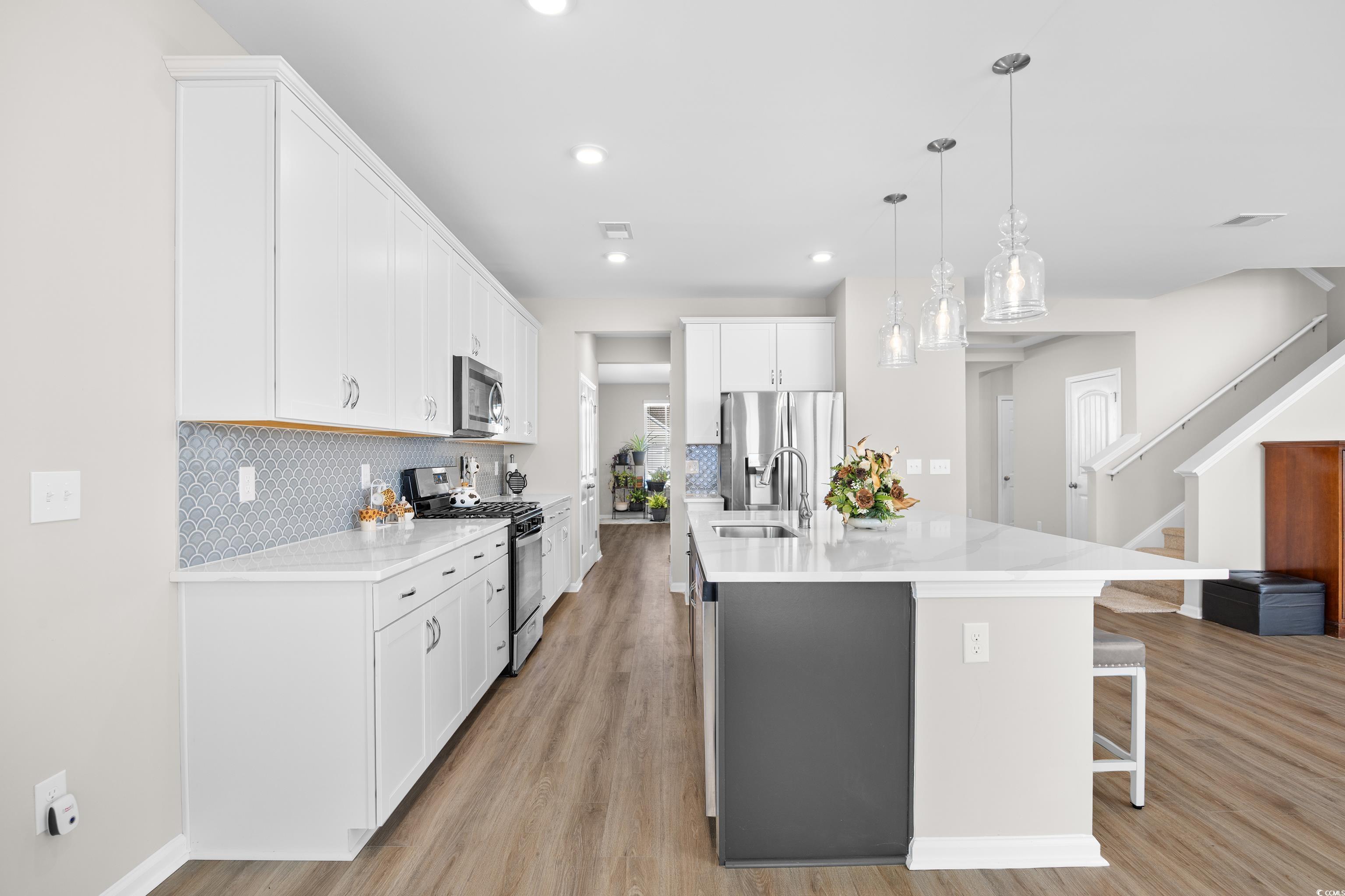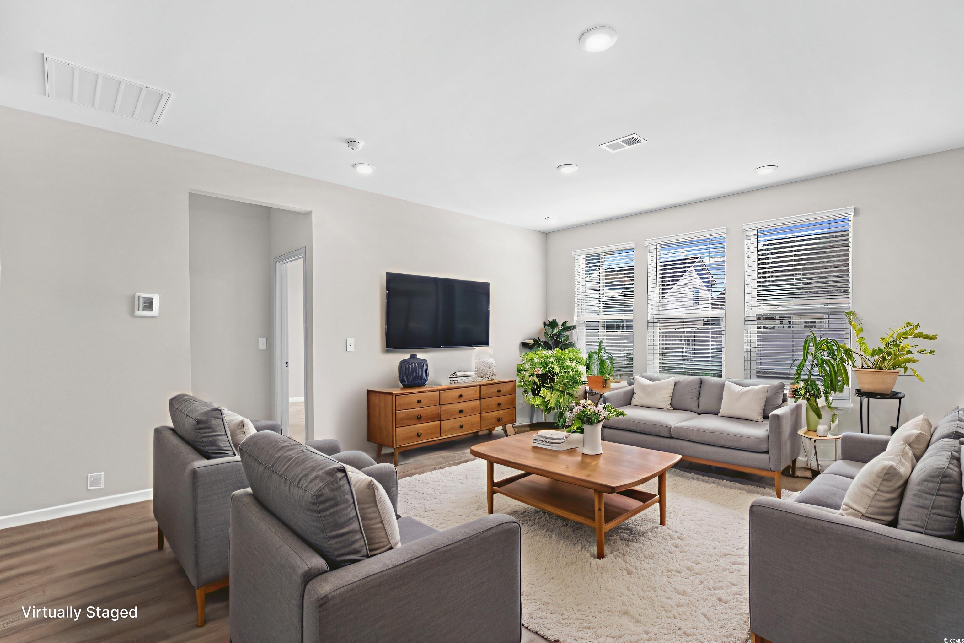 Welcome home to your new dream life at the beach! You will fall in love with this 2024 Windsor Coastal model located in Sunset Landing! This natural gas community is only a few minutes from Cherry Grove. As you arrive, you will notice sidewalks throughout the neighborhood, and this wonderful home has a Southern-style front porch where you can enjoy the ocean breeze. When you open the turquoise front door, you will see a formal dining room to your right, which can also be used as an office or even a 4th bedroom. This lovely home features an open concept with a split floor plan. The gourmet kitchen has upscale Quartz countertops, stylish white shaker cabinets, and a custom scalloped backsplash along with stainless steel appliances, two pantries, and a bar with elegant glass pendant lighting. There are lots of windows, which provide an abundance of natural light for all of your indoor plants. This remarkable home also has a breakfast nook area where you can add a dining table if you want. High-end Mohawk RevWood flooring has been installed throughout the main living area with ceramic tile in the bathrooms. The large owner's suite on the first floor has a beautiful bay window and a tray ceiling along with two closets, one of which is a walk-in. The attached bath has a stunning tile shower, dual sinks with separate vanities, and a linen closet. The laundry room and half bath are both located on the first floor for easy access. As you venture upstairs, you will find a spacious 12x20 loft that can also be used as a game room, a full-size bath, and two guest rooms, one of which has a walk-in closet. There is a ton of storage space, including another area underneath the stairs. This exceptional home has been very well maintained by the original owners and it does come with a transferable builder's warranty. The state-of-the-art ERV HVAC system brings in extra fresh air from outside. This Energy-Star certified home has architectural shingles, a tankless hot water heater, and a long driveway. Plus, there is a drop-zone right beside the garage where you can keep all of your everyday essentials. You will discover a covered porch when you go outside along with a big backyard for all of your furry friends to play! This vibrant community has a zero-entry pool where you can do laps or just sit back and relax. There is a picnic area and a clubhouse that can be rented out for special events. This is a great place to meet your neighbors. Come enjoy the laid-back lifestyle in Little River! There are several delicious waterfront restaurants with live music, top-notch golf courses, and boutique shops close by. You can explore the islands by boat or go fishing off the pier! The Intracoastal Waterway and Highway 31 both provide convenient ways to enjoy the entire coastline. You don't want to miss out on this one! Schedule your showing today and don't forget to check out the virtual tour! Square footage is approximate and not guaranteed. Buyer is responsible for verification.