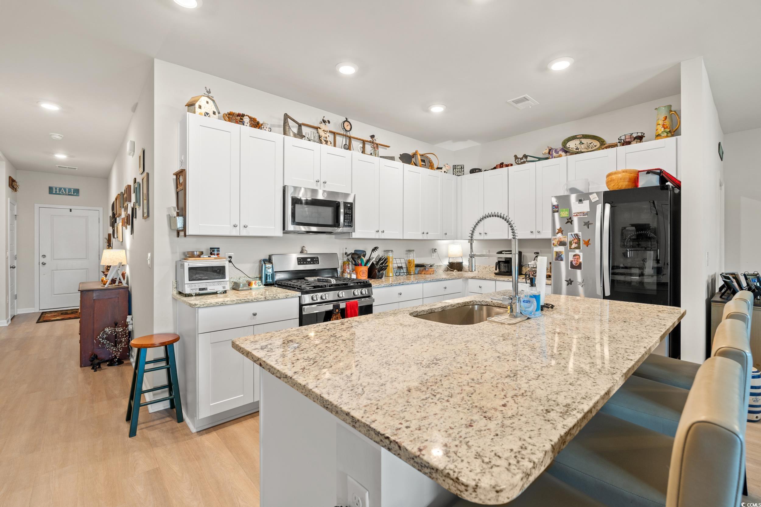 If you are looking for a beautiful well-kept home with a peaceful pond view, then look no more. This Dover Style Home has many upgrades. This home features: a Whole House Generator, extended patio and driveway, added sidewalk, remodeled primary bathroom, a metal gazebo and much more. This 3-bedroom 2 bath home has a manicured yard, stainless steel appliances, granite countertops, a gas stove and tankless water heater. The subdivision also offers a community garden to grow fresh produce, Community swimming pool and playground. Minutes away from Myrtle Beach and a short distance to Downtown Historical Conway. This home won't last long on the market. Please schedule a showing soon.