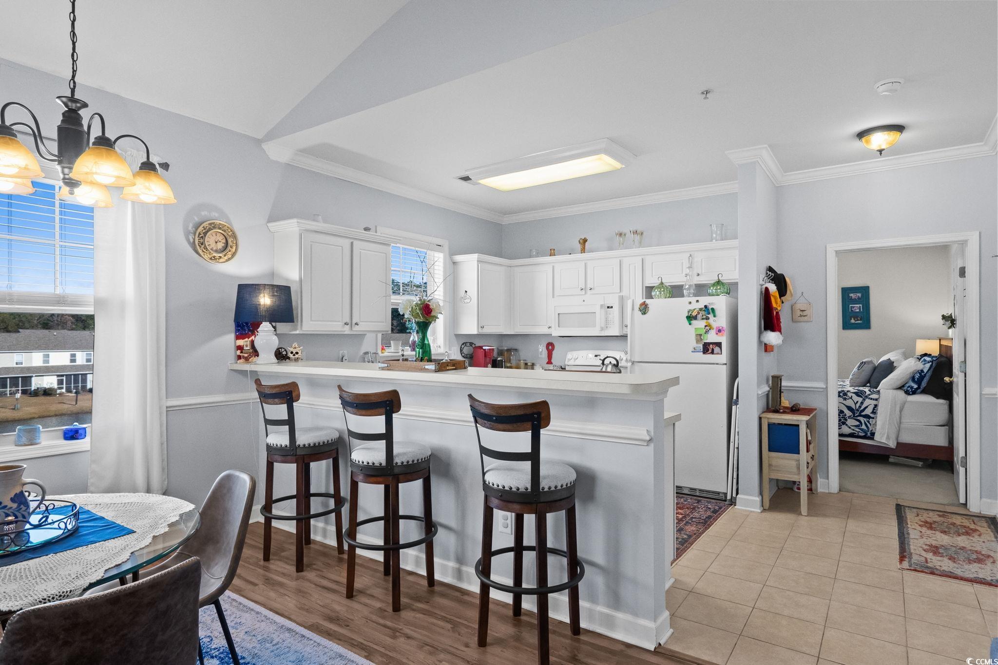 Welcome to this inviting 3-bedroom, 2-bathroom condo in the desirable lakeside community of Kiskadee Parke at Wild Wing. This end-unit residence offers a bright, open-concept layout with vaulted ceilings that enhance the spacious feel throughout the living and dining areas, and is being sold partially furnished. The kitchen is designed for both everyday living and entertaining, featuring abundant cabinet space, ample countertops, and a comfortable breakfast bar that opens nicely into the main living space. The split-bedroom floor plan ensures privacy for both owners and guests. A guest bedroom is thoughtfully positioned off the foyer, while the master suite and additional bedroom are located separately, creating an ideal layout for families, visitors, or a home office setup. The primary suite features a tray ceiling, a generous walk-in closet, and peaceful views of the community lake and fountain. A screened-in rear porch extends your living space outdoors, offering a relaxing place to unwind while overlooking the water. It’s the perfect spot for morning coffee or quiet evenings taking in the scenery. The community provides exceptional amenities, including a clubhouse, swimming pool, tennis and basketball facilities, and easy access to nearby golf courses. Located just minutes from both Conway and Myrtle Beach, this property offers convenient access to Highway 501, shopping, dining, Coastal Carolina University, and everything the Grand Strand has to offer. Whether you're seeking a full-time home, a coastal retreat, or an attractive investment opportunity, this condo delivers comfort, low-maintenance living, and a setting that truly captures the beauty of lakeside life.