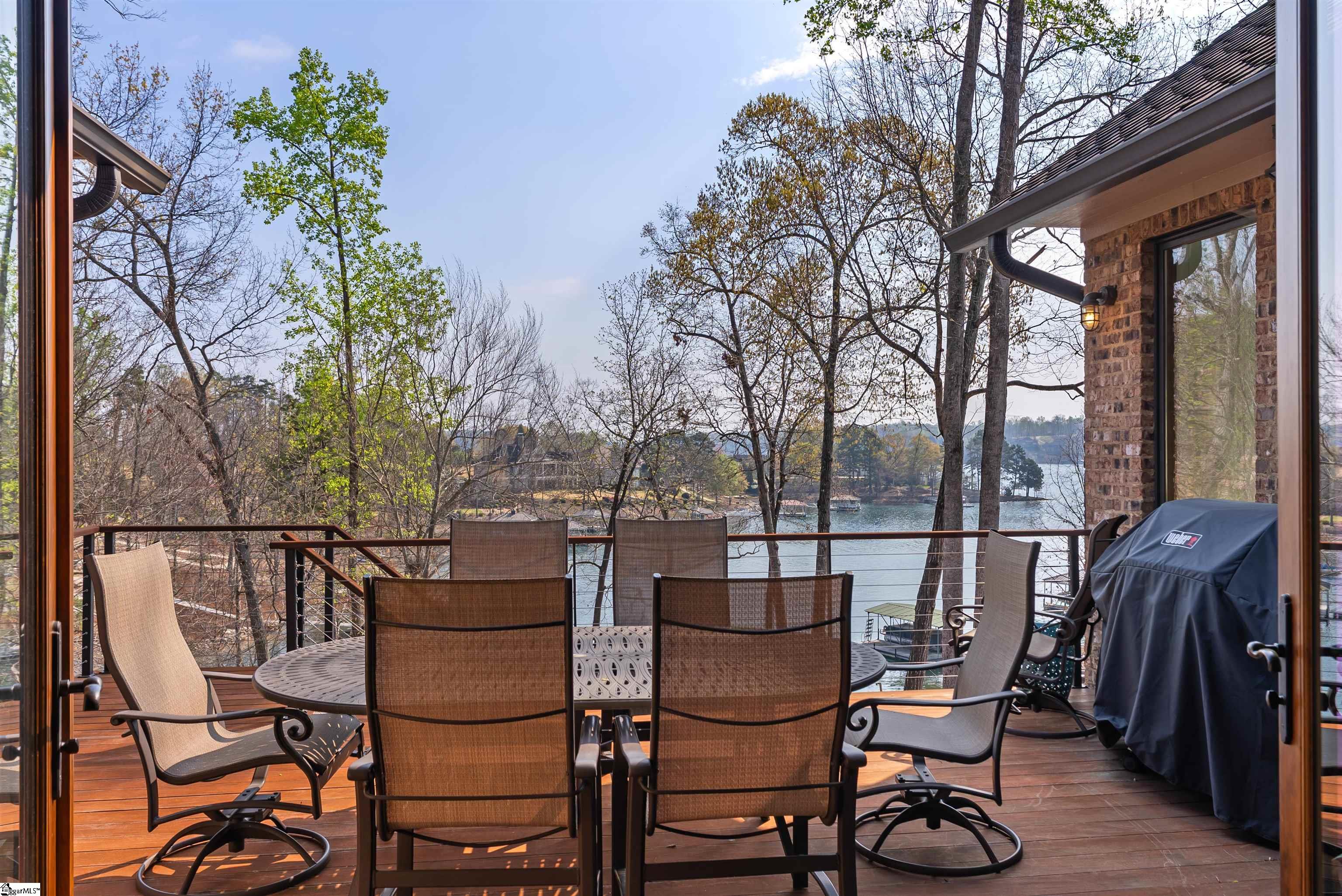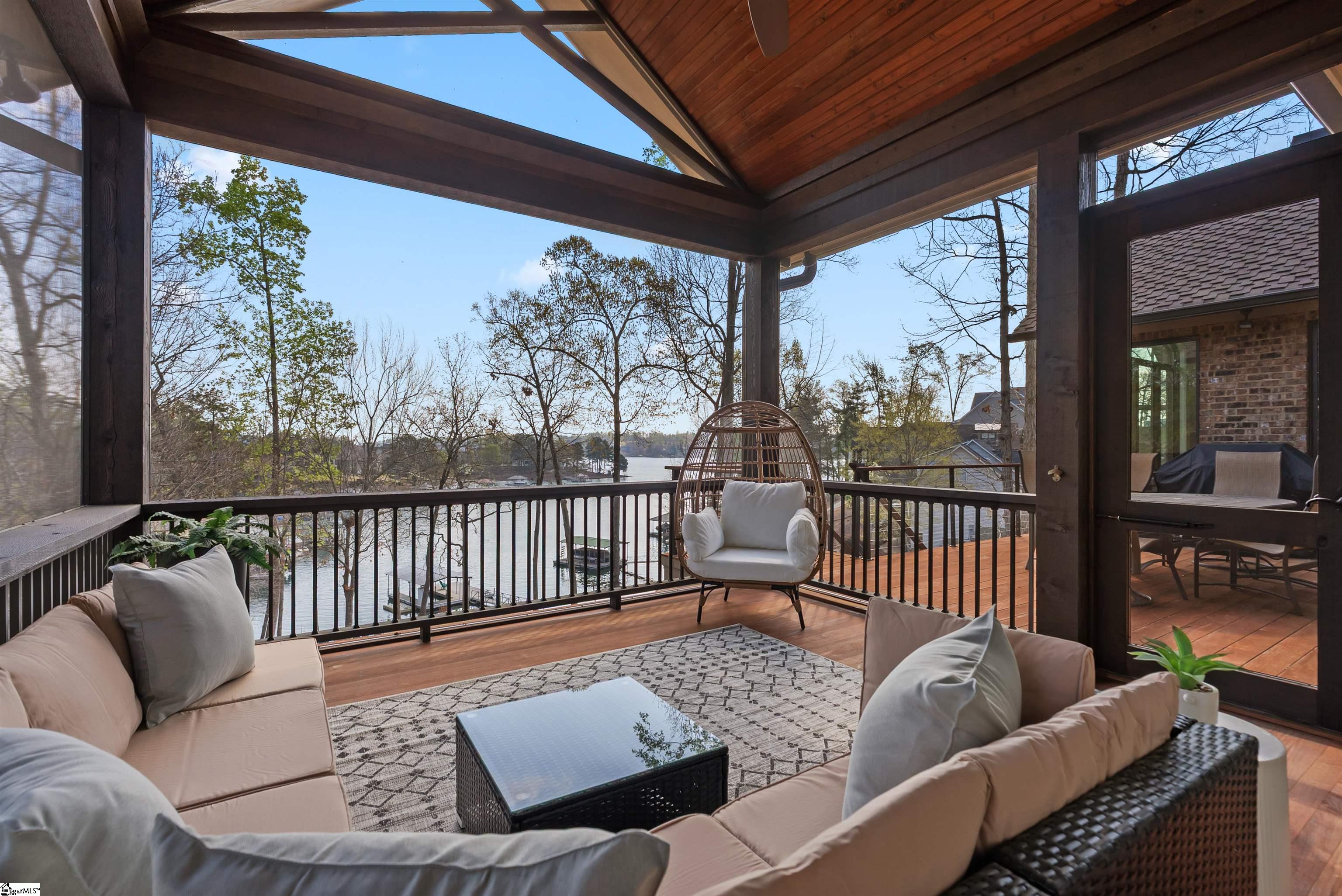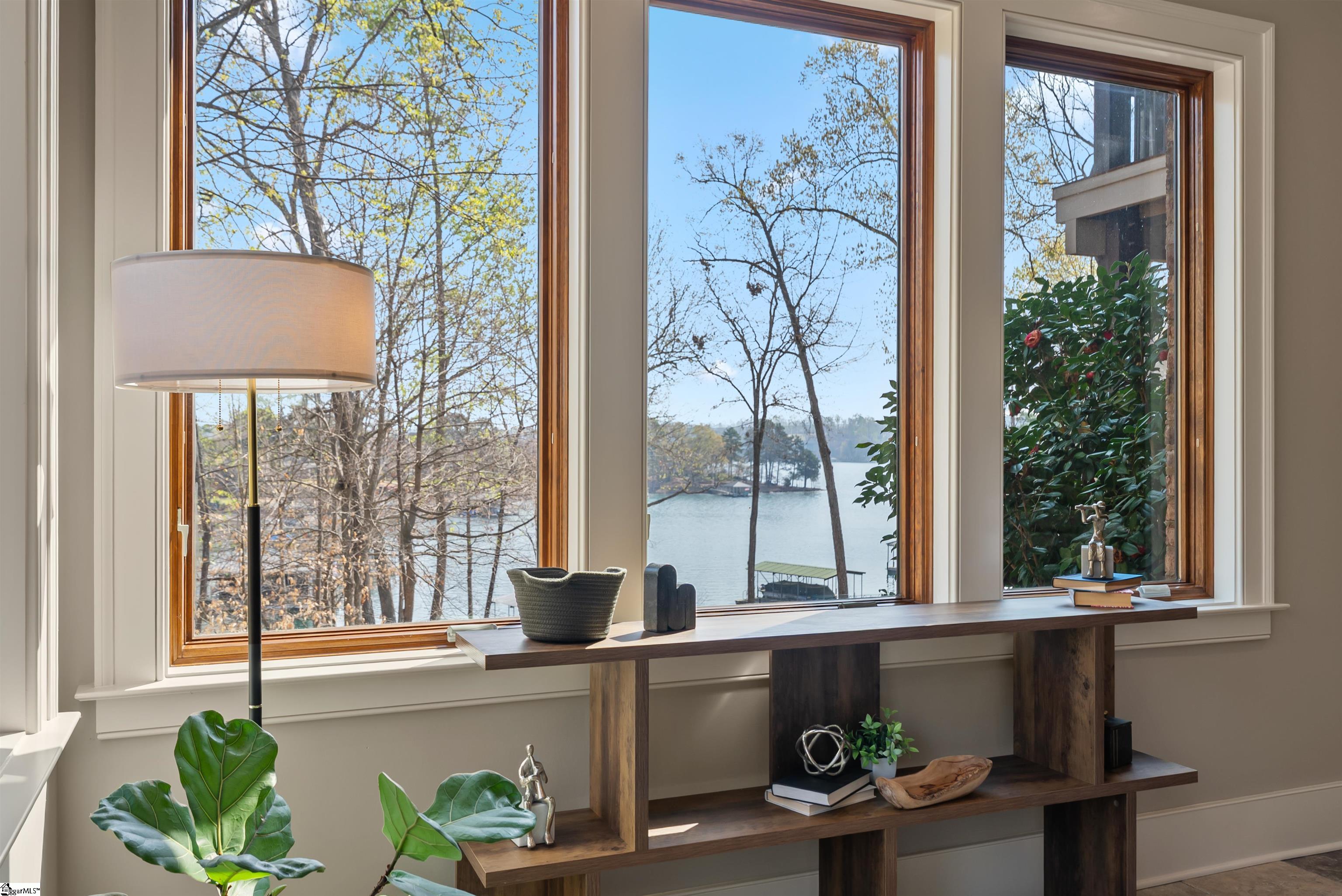 Experience refined lakeside living in this exceptional custom-built retreat, where luxury and family-friendly effortlessly comfort come together. The light-filled main level welcomes you with soaring vaulted ceilings, expansive casement windows, and seamless indoor-outdoor flow. At the heart of the home, the inviting living area frames a stunning hand-laid river rock fireplace, perfectly positioned to be admired from the elegant eat-in kitchen. Designed for both everyday living and entertaining, the chef’s kitchen showcases rich black walnut cabinetry, an artisan craftsman vent hood, and premium finishes throughout. Enjoy natural gas cooking, abundant counter space with convenient roll-out drawers, a built-in buffet, and an oversized walk-in pantry—ideal for busy families and hosting alike. Just beyond, a private home office sits behind striking double glass historic doors, offering a quiet and sophisticated workspace. The main-level primary suite is a true sanctuary, featuring a dramatic cathedral ceiling and three walls of windows that invite serene views inside. The spa-inspired bath elevates daily routines with heated tile floors, ambient lighting, an oversized tile shower, and beautifully crafted mahogany cabinetry. The expansive custom closet offers exceptional organization and storage. The terrace level extends the home’s versatility with a spacious recreation area complete with a living space, recreation area, and kitchenette—all overlooking it's tranquil lakeside setting. Three generously sized guest rooms, two upscale full baths, and thoughtful extras like a beverage refrigerator and ice maker on this level offers a special retreat for family and guests. Outdoors, enjoy low-maintenance luxury with ipe decking, stone-accented porches, sleek cable railing, and a screened-in porch designed for effortless entertaining—all set against the backdrop of Lake Keowee. The nearly one-acre property includes a private covered slip dock with a 6,000-pound boat lift, offering immediate access to life on the water. Built with intricate detail and long lasting quality, the home features 2x6 construction, spray foam insulation, and a 50-year architectural roof, along with a timeless primarily brick exterior. With no annual HOA fees and rental-friendly potential, this property is as practical as it is luxurious. Ideally located just minutes from everyday conveniences, a short boat ride to lakeside dining, and within easy reach of Clemson University, this is a rare opportunity to enjoy upscale lake living tailored for both waterfront Lake Keowee relaxation and lifetime family memories. New terrace level full bath added 2026. Frameless shower door and polished nickel etched mirrors to be installed shortly.