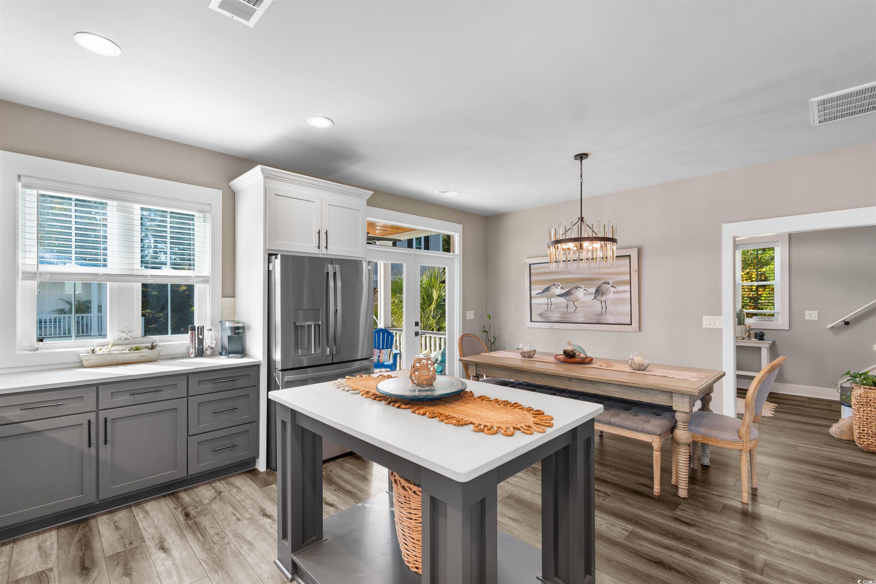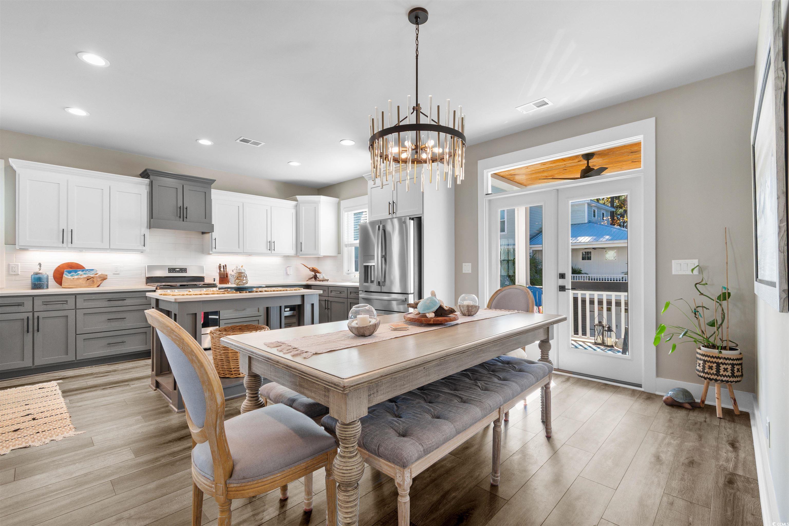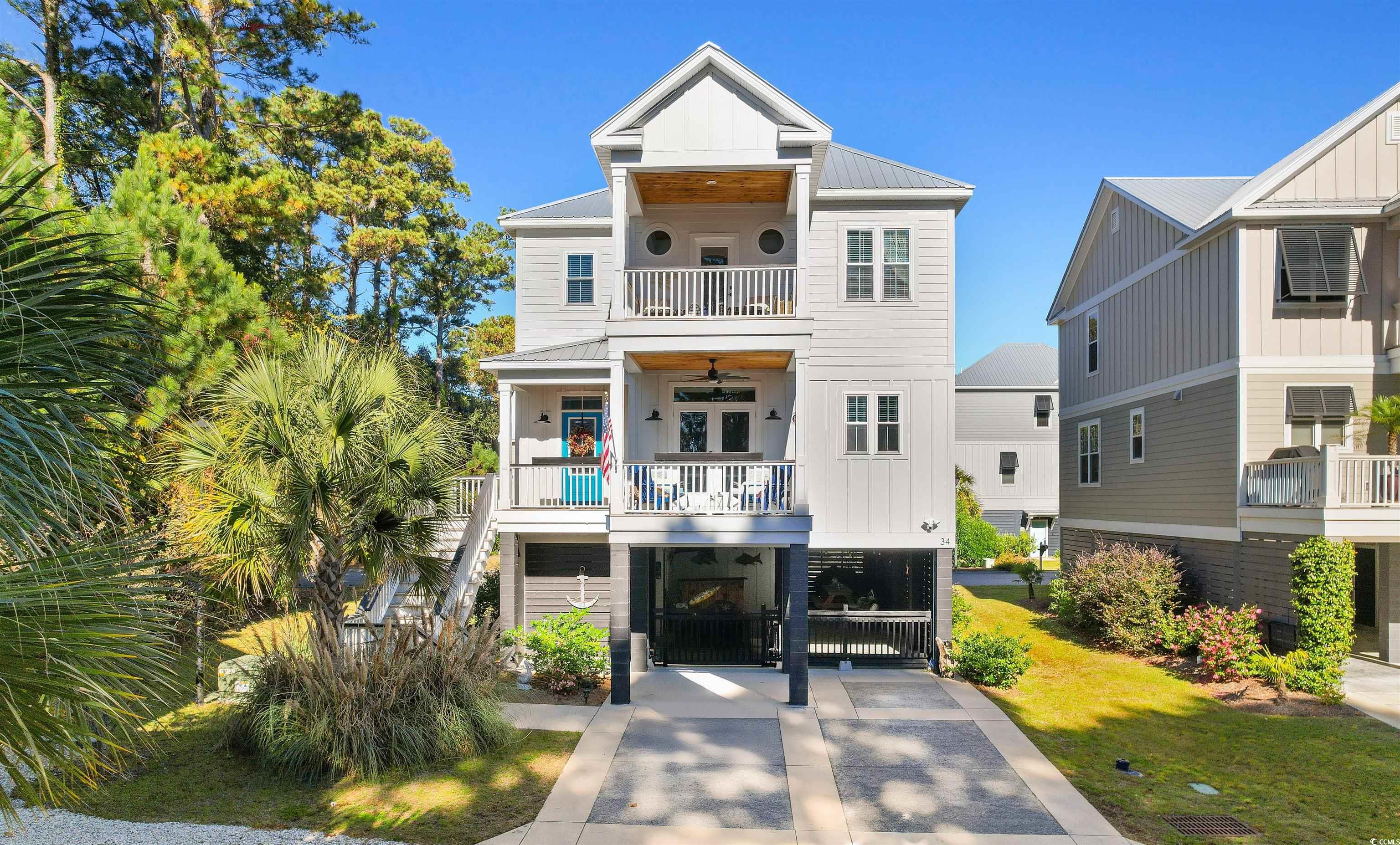 Welcome to this exquisite 3-bedroom, 2.5-bath raised beach home, located in the highly sought-after community of Marshland Park in Pawleys Island. With gorgeous details throughout, this home offers a perfect blend of comfort, style, and functionality—ideal for both everyday living and entertaining. Best of all, this beautiful home is being sold furnished, allowing you to move right in and start enjoying coastal living from day one! The open-concept main living space features a spacious and inviting floor plan that seamlessly connects the kitchen, dining, and living areas. The chef-inspired kitchen is a dream, complete with stainless steel appliances, a large center island, breakfast bar, and beautifully contrasting cabinetry. It opens into the cozy living room, where you’ll find a charming fireplace framed by custom built-ins, offering both warmth and extra storage. The living room flows out onto a private balcony—the perfect spot for sipping morning coffee or enjoying evening sunsets. The dedicated dining space offers plenty of room for hosting family and friends, making it ideal for gatherings. Upstairs, the primary suite is a true retreat, featuring a private balcony, a spacious bedroom, and an ensuite bath with an extended shower showcasing custom tilework and his-and-hers vanities. The two additional bedrooms share a beautifully appointed full bath with a dual-sink vanity and tub/shower combo. This home is thoughtfully designed for convenience, featuring built-in cabinetry in the laundry room for additional storage and organization. Every room showcases high-end finishes and thoughtful details that elevate the space and create a warm, welcoming atmosphere. Outside, the under-home area provides an incredible space for outdoor living—perfect for relaxing, entertaining, or storing beach gear. The additional storage area beneath the home keeps seasonal items neatly tucked away. Situated in a prime Pawleys Island location, you’ll be just moments from boutique shops, local restaurants, and, of course, the beach. This furnished, meticulously maintained home offers the perfect combination of luxury, comfort, and coastal charm—truly a slice of paradise in Marshland Park!